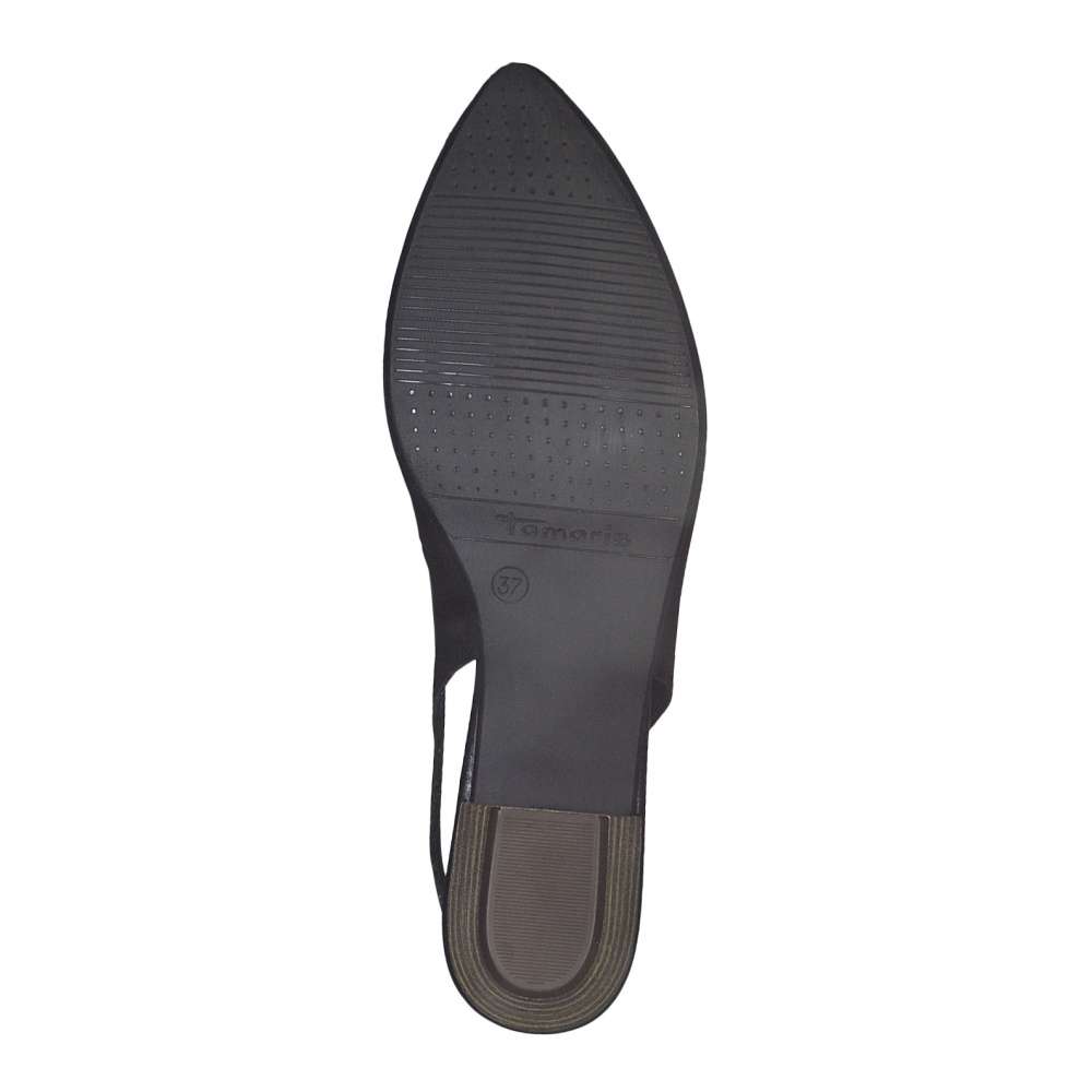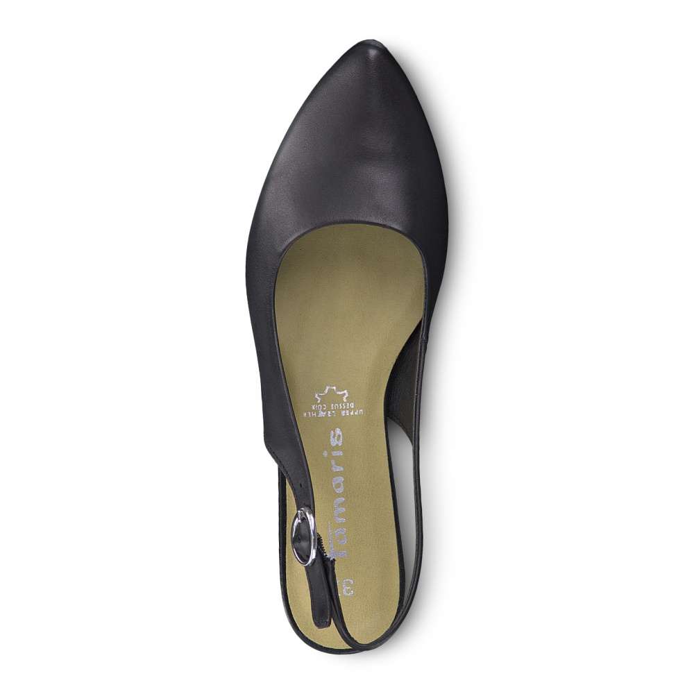 Ležérní dámské lodičky Tamaris mají široký podpatek a svrchní materiál vyrobený z hladké přírodní usně.