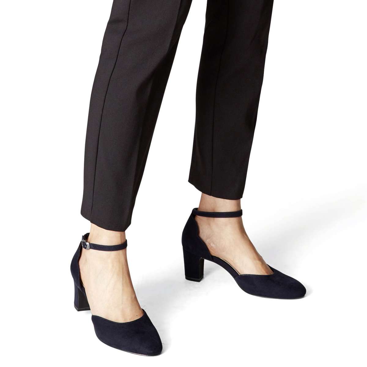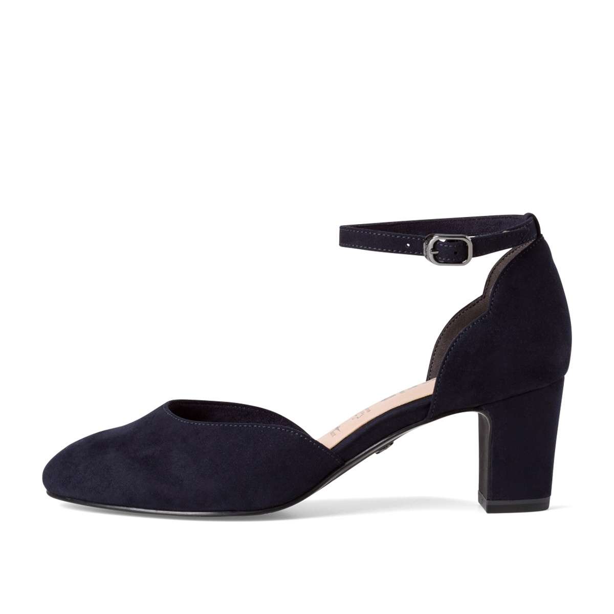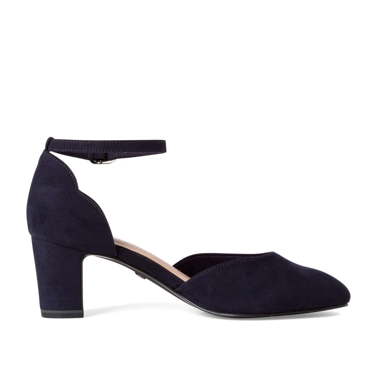 Lodičky ve více barvách s uzavřenou patou, ozdobenou dvěma výkroji a páskem kolem kotníku.