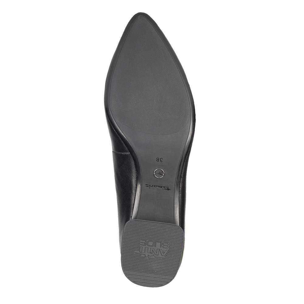 Krásné elegantní lodičky se špičatou špičkou a výrazným vyšším podpadkem značky TAMARIS Vám nesmí chybět ve vašem šatníku. Svršek je jemný a působí elegantně a bude se Vám hodit jak do kanceláře, tak i na setkaní s kamarádkou na kávu. Technologie: Stélka TOUCH-IT – je vyrobena z paměťové pěny, jež se dokonale přizpůsobí Vaší noze. ANTISLIDE – obuv s patentovaným protiskluzovým prvkem v podpatku, který výrazným způsobem snižuje riziko uklouznutí na kluzkém povrchu. ANTISHOKK – speciální odpružující prvek v podpatku, který tlumí nárazy a otřesy způsobené chůzí o cca 50% a tím šetří páteř, meziobratlové ploténky a klouby. Dlouhodobě tedy ulevuje celé partii zad. - Díky tomu můžete nosit své oblíbené boty na vysokých podpatcích po celý den i v kanceláři, aniž by Vás bolely nohy.