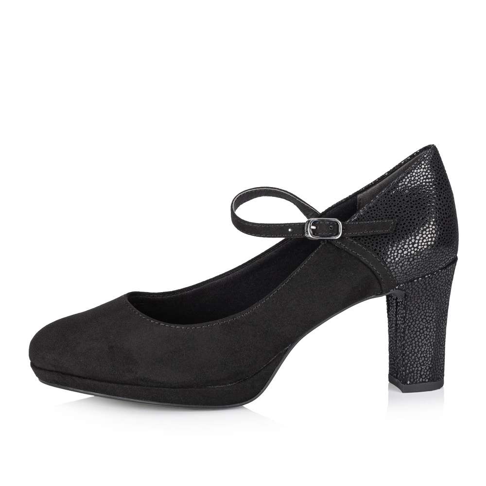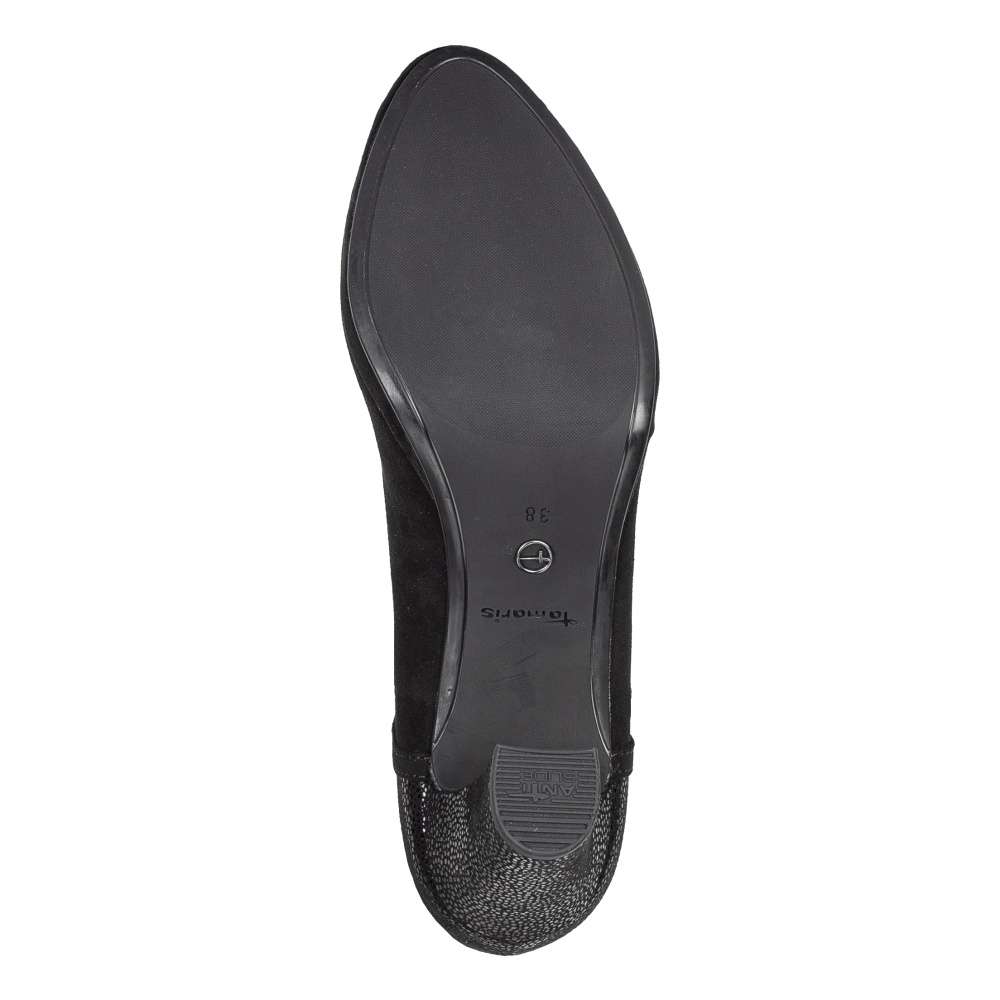 Tyto krásné nadčasové lodičky TAMARIS klasického střihu nesmí chybět v botníku žádné elegantní ženy. Díky vykrojení na nártu vypadají boty na noze velmi ladně a potažený podpatek působí luxusně. Kombinace hladkého a jemně strukturovaného materiálu dodává botám šmrnc a z praktického hlediska jistě oceníte pásek kolem kotníku, díky kterému lodičky lépe sedí na noze. Navíc patentovaný protiskluzový prvek ANTISLIDE se stará o Vaši bezpečnost. Jak se Vám líbí?