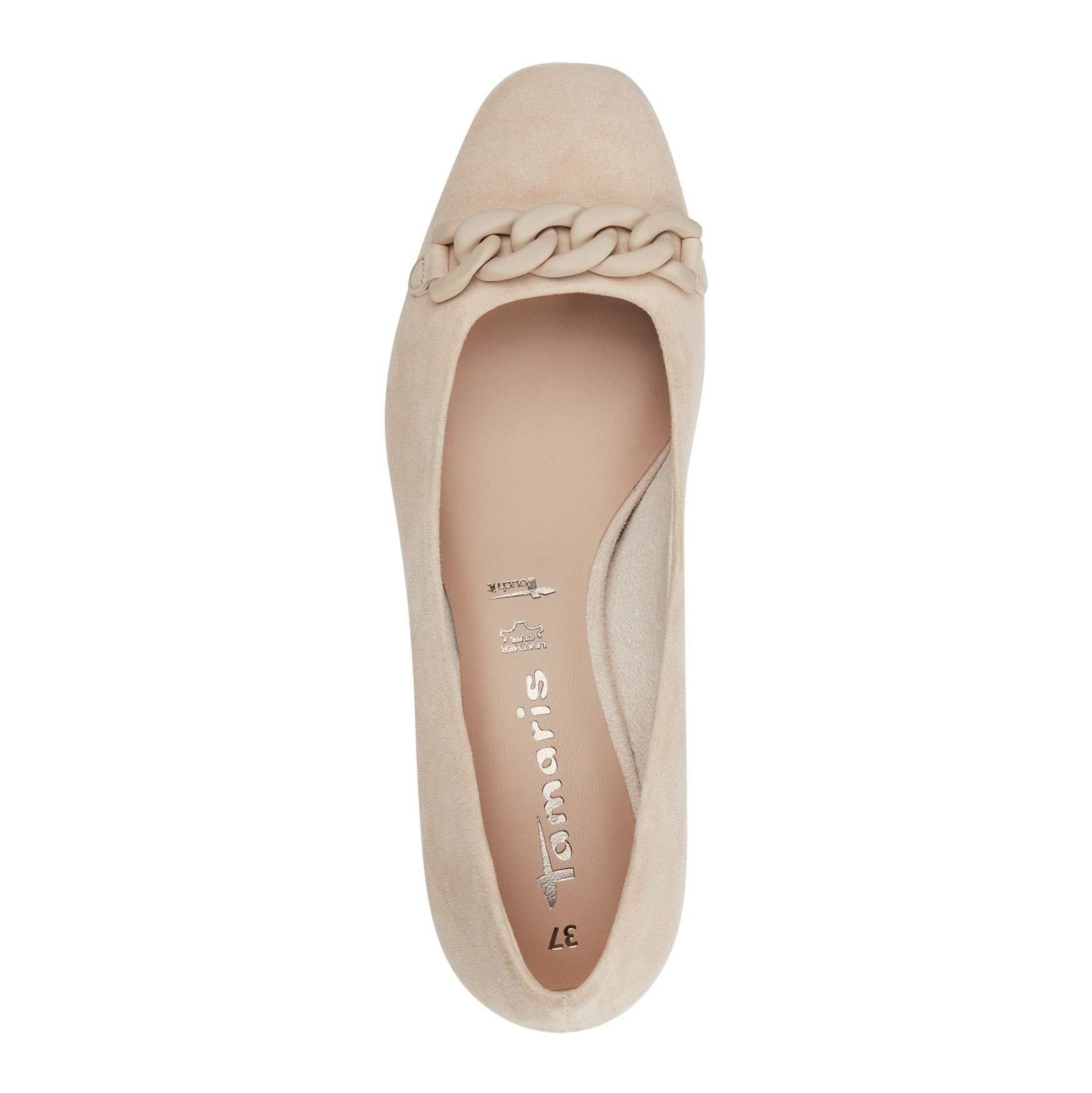 Tyto dámské lodičky s širokým podpatkem od značky TAMARIS jsou vyrobené z broušené přírodní usně. Na první pohled si zamilujete jejich elegantnost a jednoduchost. Zdobný prvek této obuvi je pásek v podobě řetízku na špičce. Měkká stélka Vám dodá pocit pohodlí při každém kroku. Tento model dokonale doplní Vaše outfity.