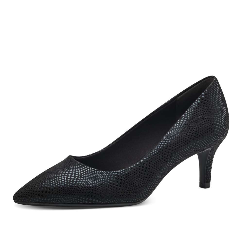 Tyto dámské lodičky značky TAMARIS zaujmou na první pohled díky lesklému svršku, který je zdoben nevšedním vzorem. Úzký podpatek a úzká špička vytváří vysoce elegantní vzhled. Pohodlí na každém kroku zajistí měkoučká stélka. Lodičky můžete doplnit kabelkou z naší nabídky a Váš outfit bude dokonalý. Technologie: Touch-it – měkká stélka, která se dokonale přizpůsobí tvaru nohy, a díky tomu při nošení zajišťuje optimální pohodlí.