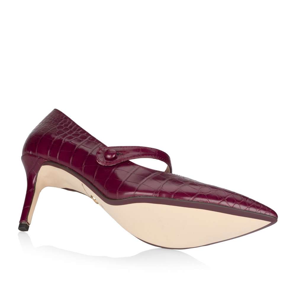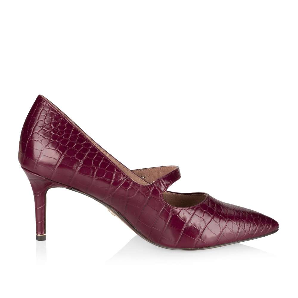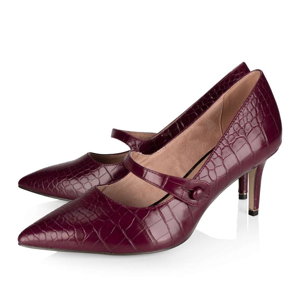 Dámská lodička Vás na první pohled zaujme svým vínovým svrškem v imitaci hadí kůže, který je použit i na vysokém úzkém podpatku. Pro maximální pohodlí je kožená stélka vyrobena z paměťové pěny a díky odepínatelnému pásku přes nárt Váš krok bude jistý. Tato dámská lodička do špičky zajisté doplní spoustu Vašich outfitů jak do práce, tak třeba na večírek. Technologie: Stélka TOUCH IT – je vyrobena z paměťové pěny, jež se dokonale přizpůsobí vaší noze.