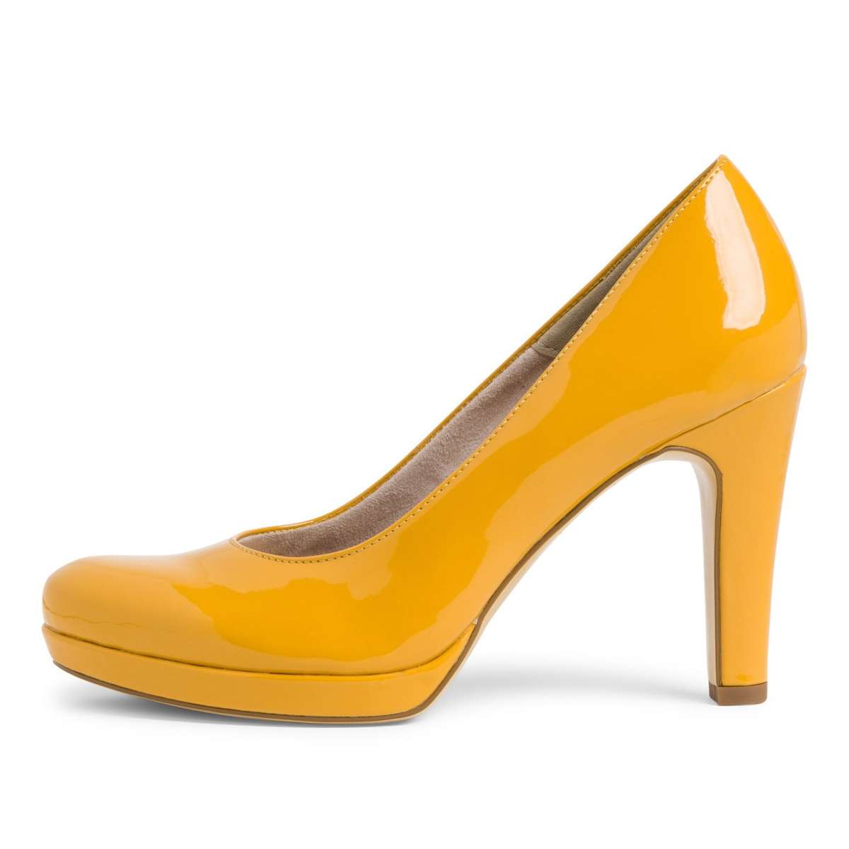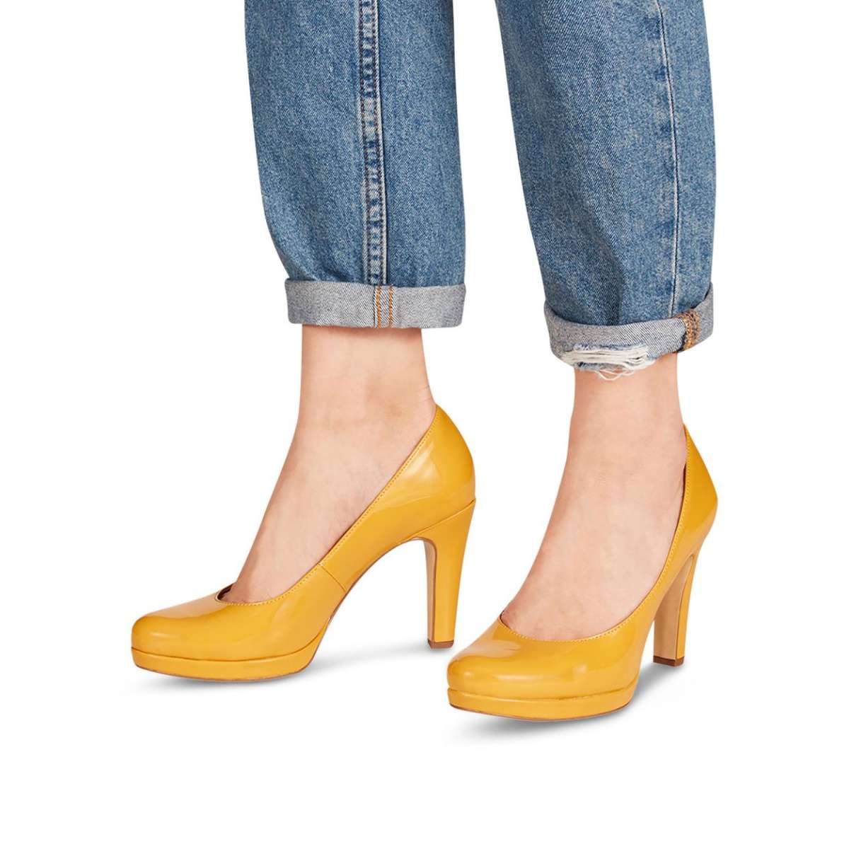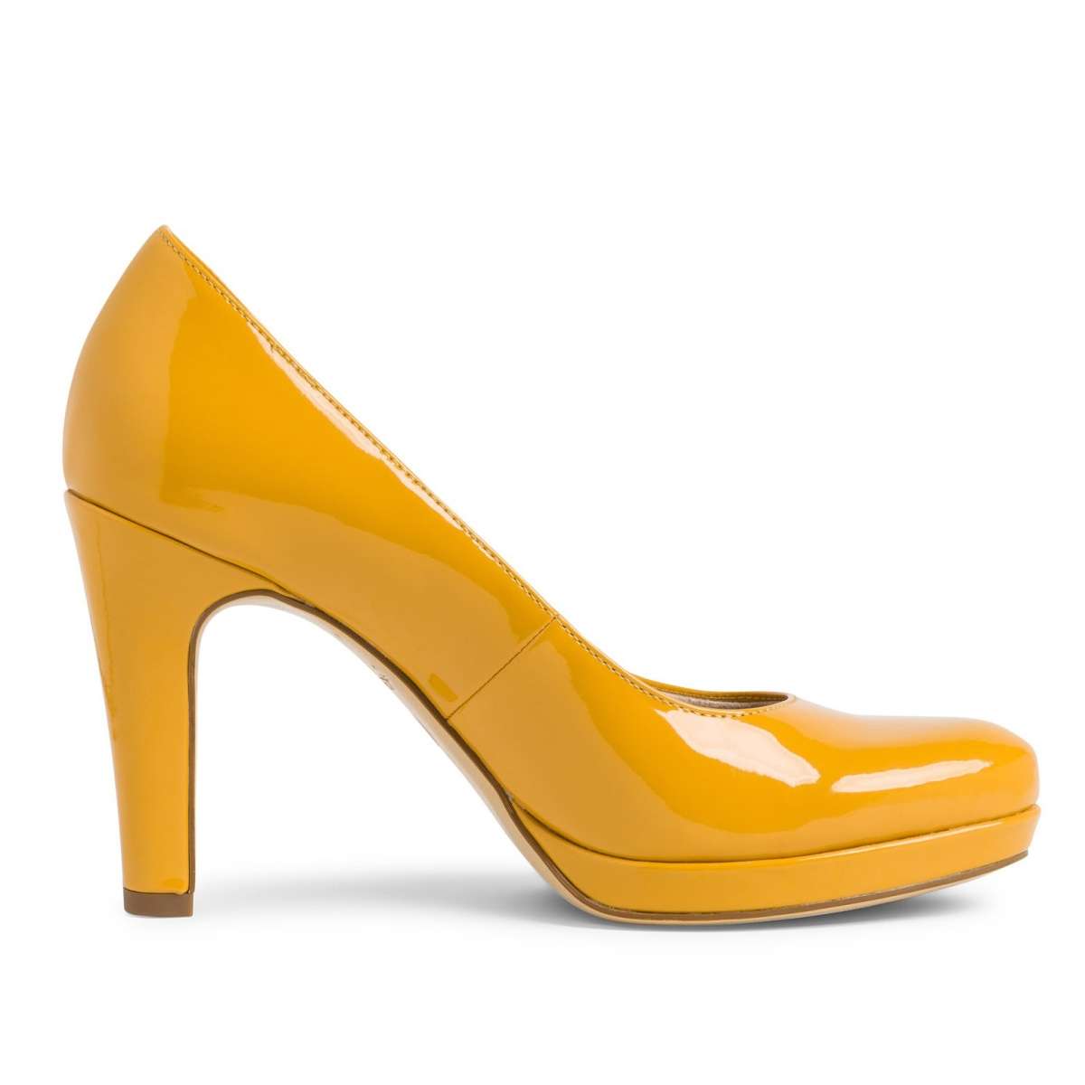 Mají jednoduchý hladký lakovaný svršek s užší kulatou špičkou v oblíbeném žlutém odstínu, který oživí každý Váš outfit, ať už vyrazíte do práce či za zábavou. Hodí se jak k šatům a sukni, tak k úzkým kalhotám.