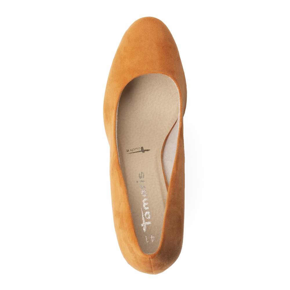 Mají hladký semišový svršek s kulatou špičkou. Oranžová barva oživí každý Váš outfit. Hodí se jak k úzkým kalhotám, tak k šatům.