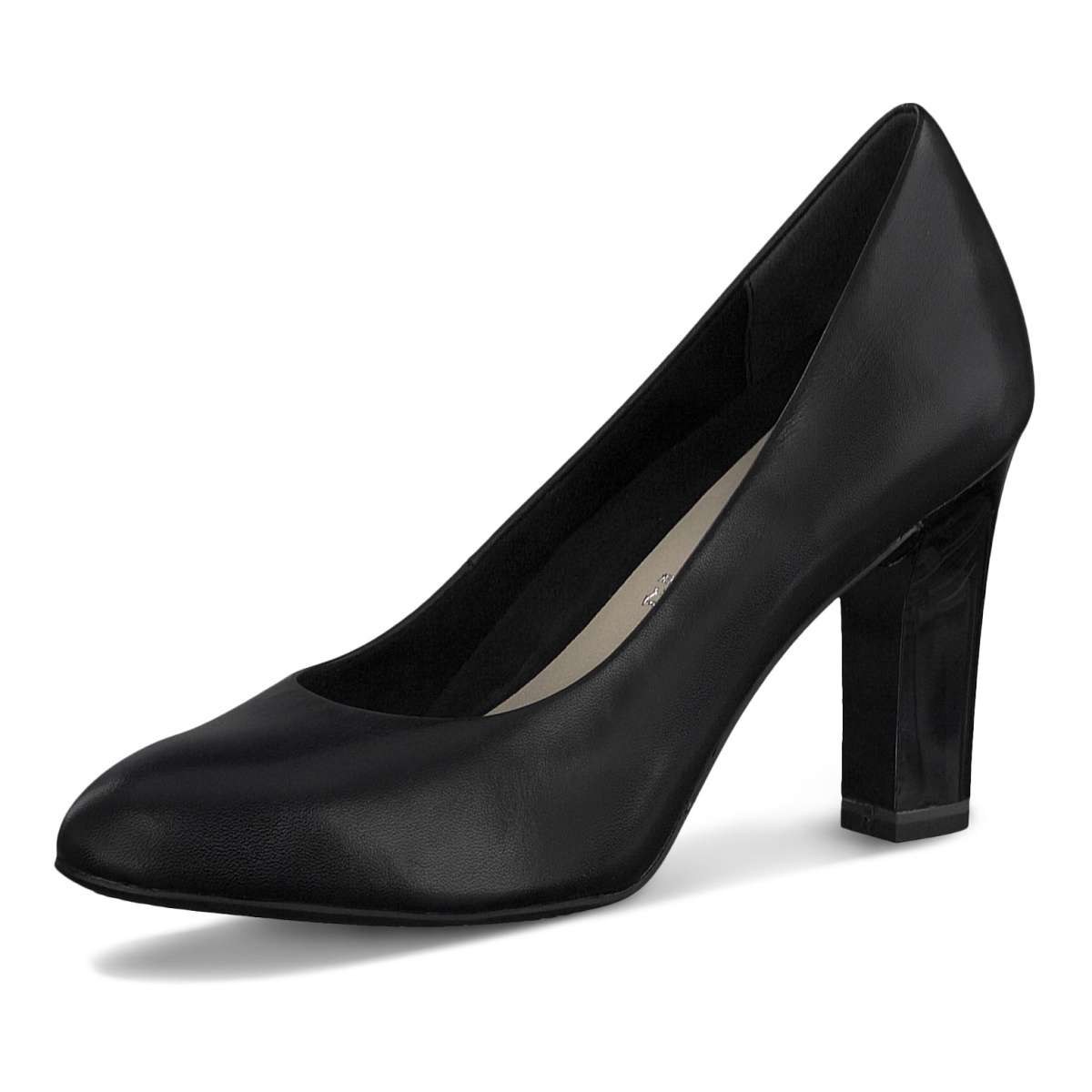 Dámská kožená lodička v černé barvě, značky TAMARIS. Podešev Podešev s jemným vzorkem je vyrobena z velmi kvalitního syntetického materiálu. Podpatek je vysoký cca 9 cm navíc je obohacen o technologii Antishokk má tedy speciální odpružující prvek, který tlumí nárazy a otřesy způsobené chůzí o cca 50% a tím velmi zvyšuje Váš komfort. A technologii ANTISLIDE je s patentovaným protiskluzovým prvkem, který výrazným způsobem snižuje riziko uklouznutí na kluzkém povrchu. Svršek Dámské kožené lodičky ve dvou barvách Vás upoutají svou jednoduchostí a elegantností. Mají užší špičku a hladký povrch. Tento model díky jeho pohodlnosti můžete nosit celý den ke všem outfitům. Stélka Měkká kožená stélka se postará o Vaše pohodlí na každém kroku. Technologie: Antishokk, Antislide