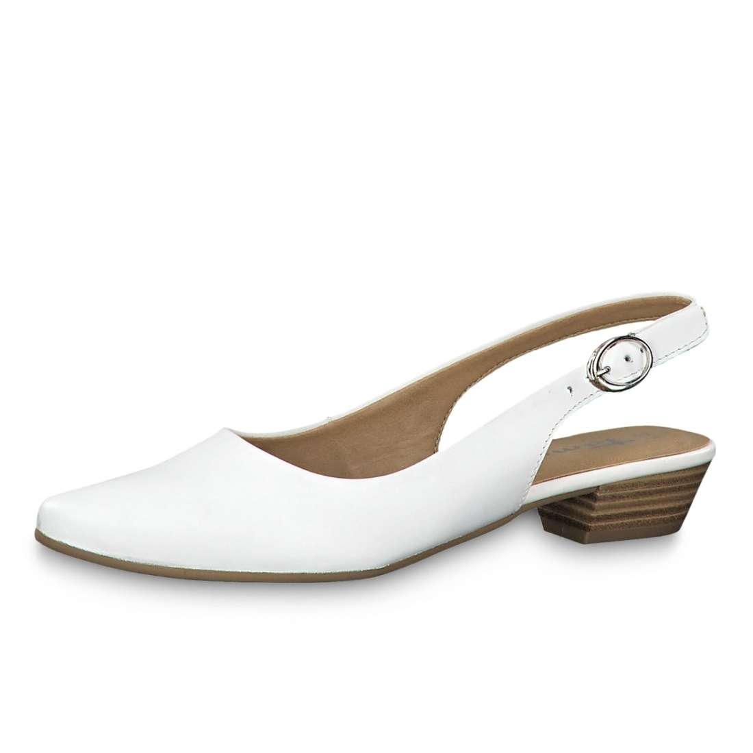 Dámské lodičky s volnou patou a úzkou špičkou vypadají velice elegantně a díky barveným variantám máte možnost výběru. Mají hladký povrch a na vnější straně pásku kolem kotníku zapínání přezkou se zabudovanou pružnou gumičkou pro lepší přizpůsobení Vaší noze. Tento model je vhodný do práce k sukni či kostýmku nebo k běžným pochůzkám po městě.