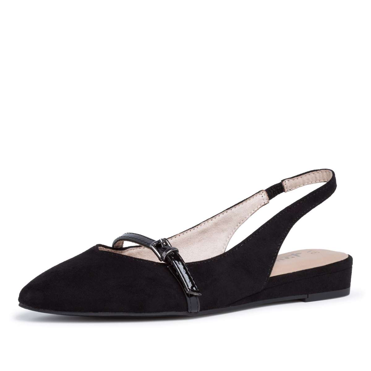 TAMARIS elegantní nízké lodičky jednoduchého vzhledu s otevřenou patou. Svršek a podšívka jsou vyrobeny z materiálu, který se přizpůsobí Vaší noze. Na patě je vsazená gumička, díky které jdou lodičky snadno a pohodlně obout. Přední část svršku je do špičky s páskem přes nárt a se středně velkým vykrojením. Podešev je pevná a skvělá pro dny plné chůze, kdy chcete vypadat elegantně nebo i jen pro běžné nošení do práce nebo do města.