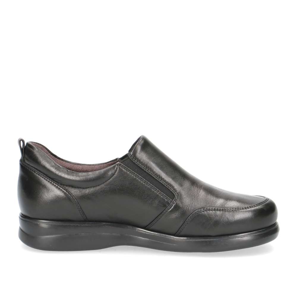 Hladký kožený svršek je ozdoben jemným prošíváním, které vytváří na obuvi zajímavé linie. Pro snadné nazouvání slouží všité pružné gumičky, které nalezneme po stranách nártu.