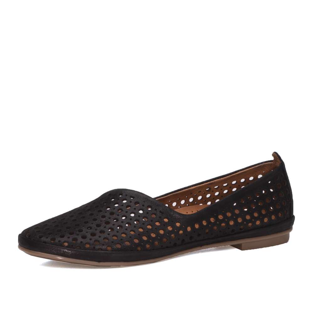 Dámské klasické kožené balerínky značky IBERIUS, jsou zdobené perforací po celém svém svršku.