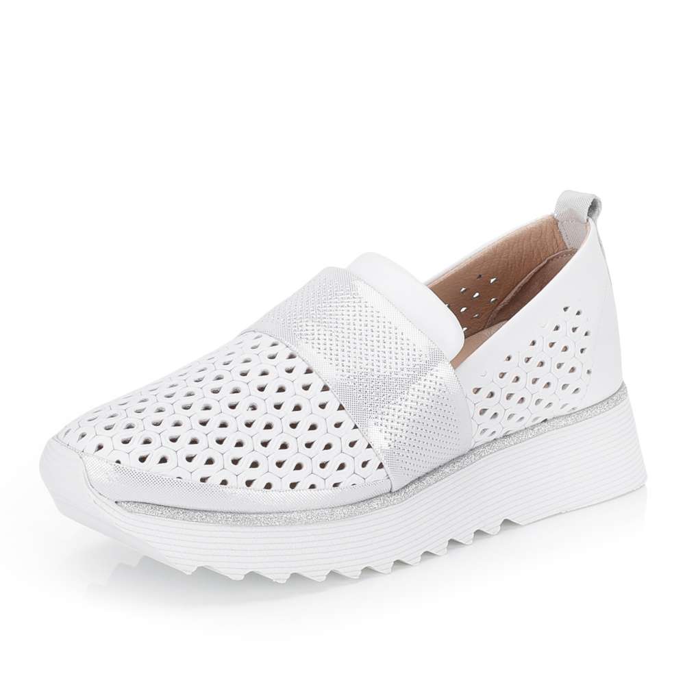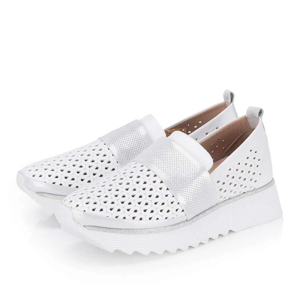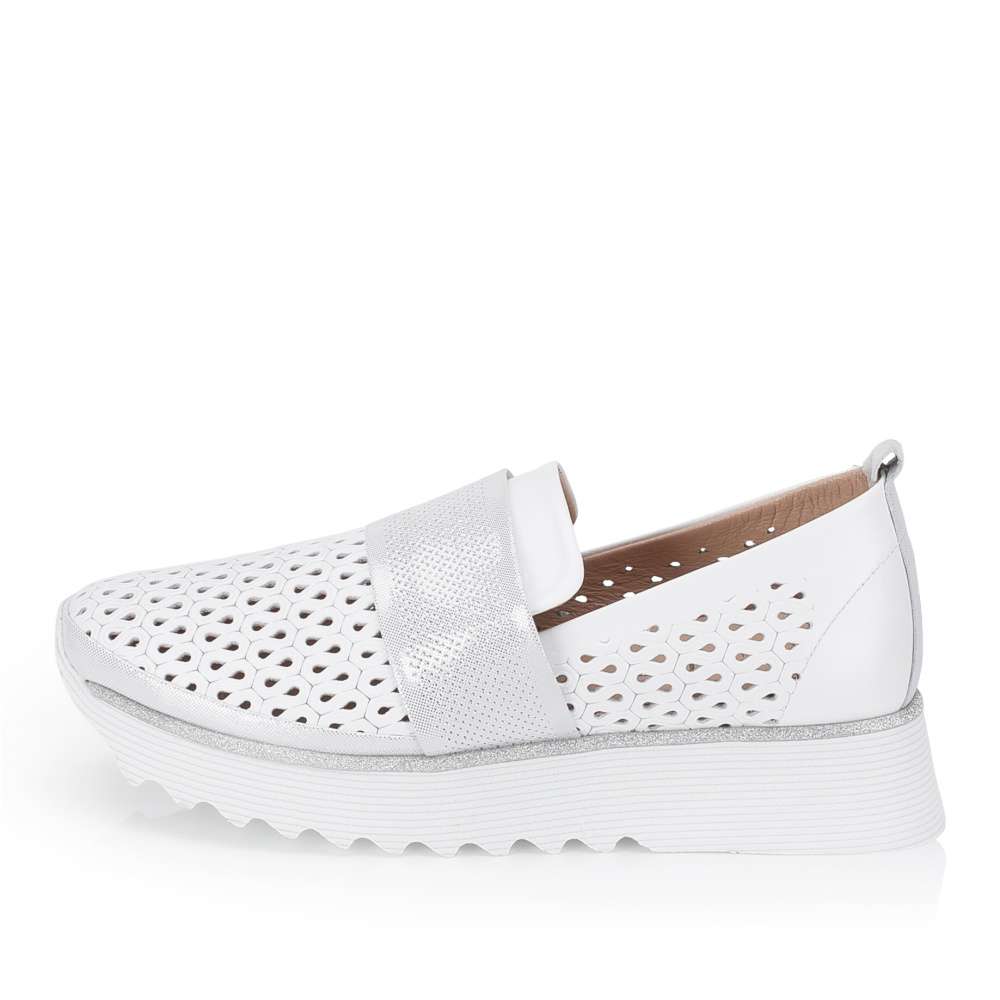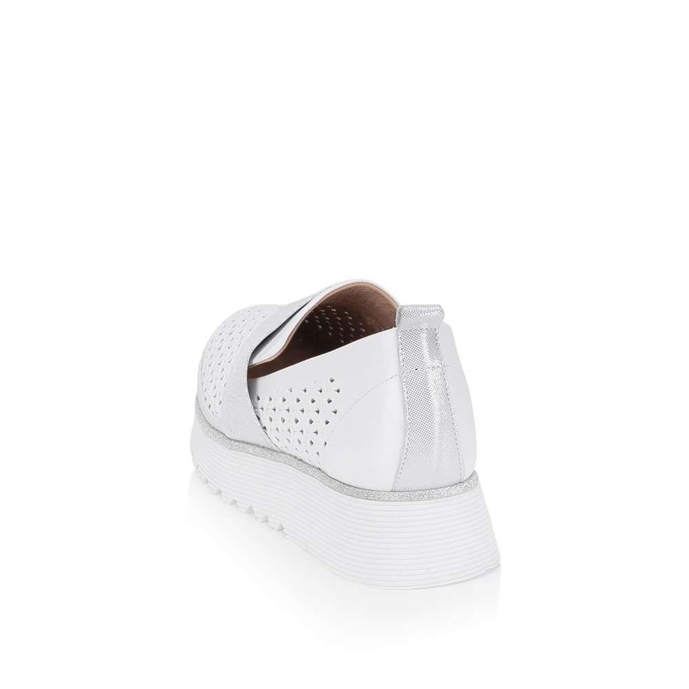 Kožené mokasíny IBERIUS okouzlí na první pohled svým designem, který působí jako malý šperk a rozzáří každý váš krok. Efektní perforace spolu s páskem přes nárt s působivými odlesky dodávají botám originální vzhled, který podtrhne vaši ženskost. Měkká kožená stélka hýčká chodidlo a zajišťuje pocit komfortu i při delším nošení, zatímco vyšší podešev lemovaná třpytivými detaily dodává stabilitu. Tyto mokasíny IBERIUS jsou ideální volba pro ženy, které chtějí být vidět, cítit se výjimečně a dopřát si pohodlí bez kompromisů.