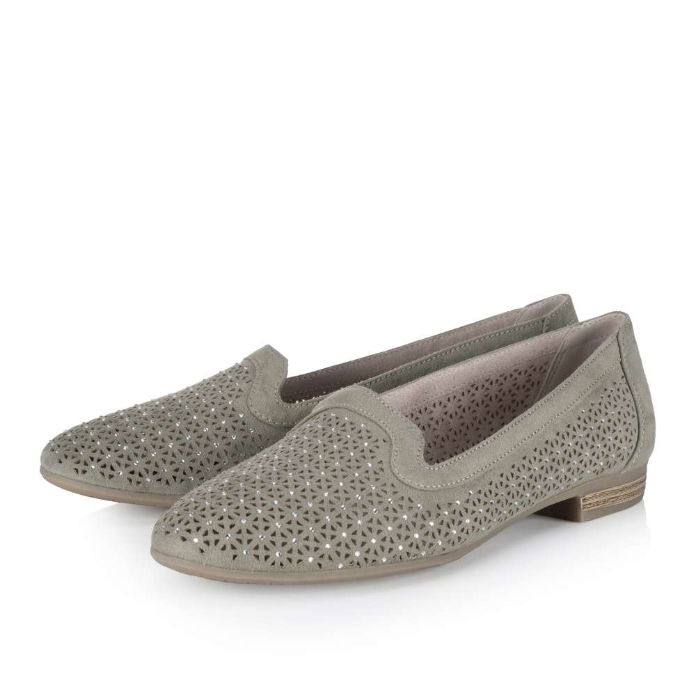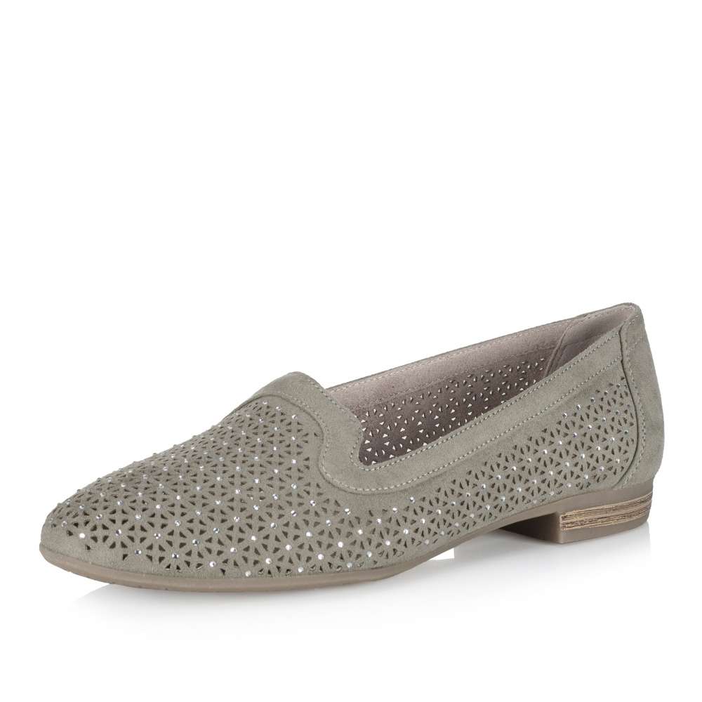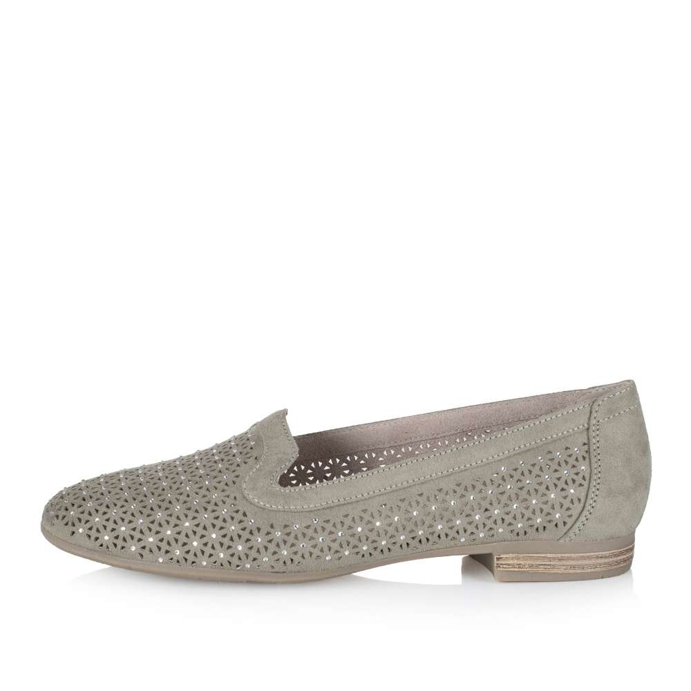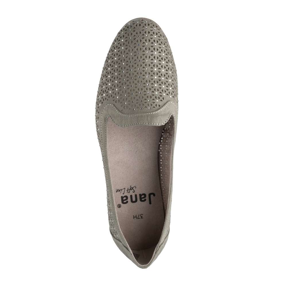 Dámské mokasíny značky JANA Vás okouzlí. Svršek je zdoben jemnými kamínky a designovou perforací, která zajistí prodyšnost obuvi. Měkká stélka a pohodlná podešev na nízkém podpatku zajistí maximální komfort při chůzi. S tímto jedinečným kouskem doladíte každý outfit.