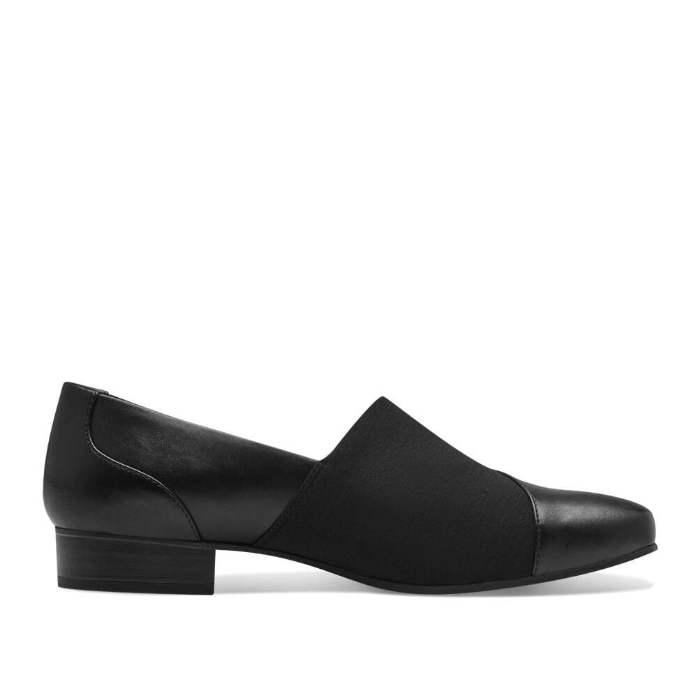 Černé mokasíny JANA jsou elegantním obutím s kombinací materiálů svršku, kulatou špičkou a pružným materiálem. Tyto mokasíny spojují sofistikovaný design s pohodlným prvkem díky elastickému materiálu, který umožňuje snadnější obouvání a pohyb. Kulatá špička dodává obuvi moderní a stylový vzhled. Ideální volba pro ženy, které chtějí kombinovat eleganci s komfortem v každodenním nošení. Technologie: SoftLine – boty s touto technologií mají lehké, měkké a současně mimořádně flexibilní podešve, použitím speciálních materiálu a jedinečného složení podešve byl vyvinut nový druh flexibility.