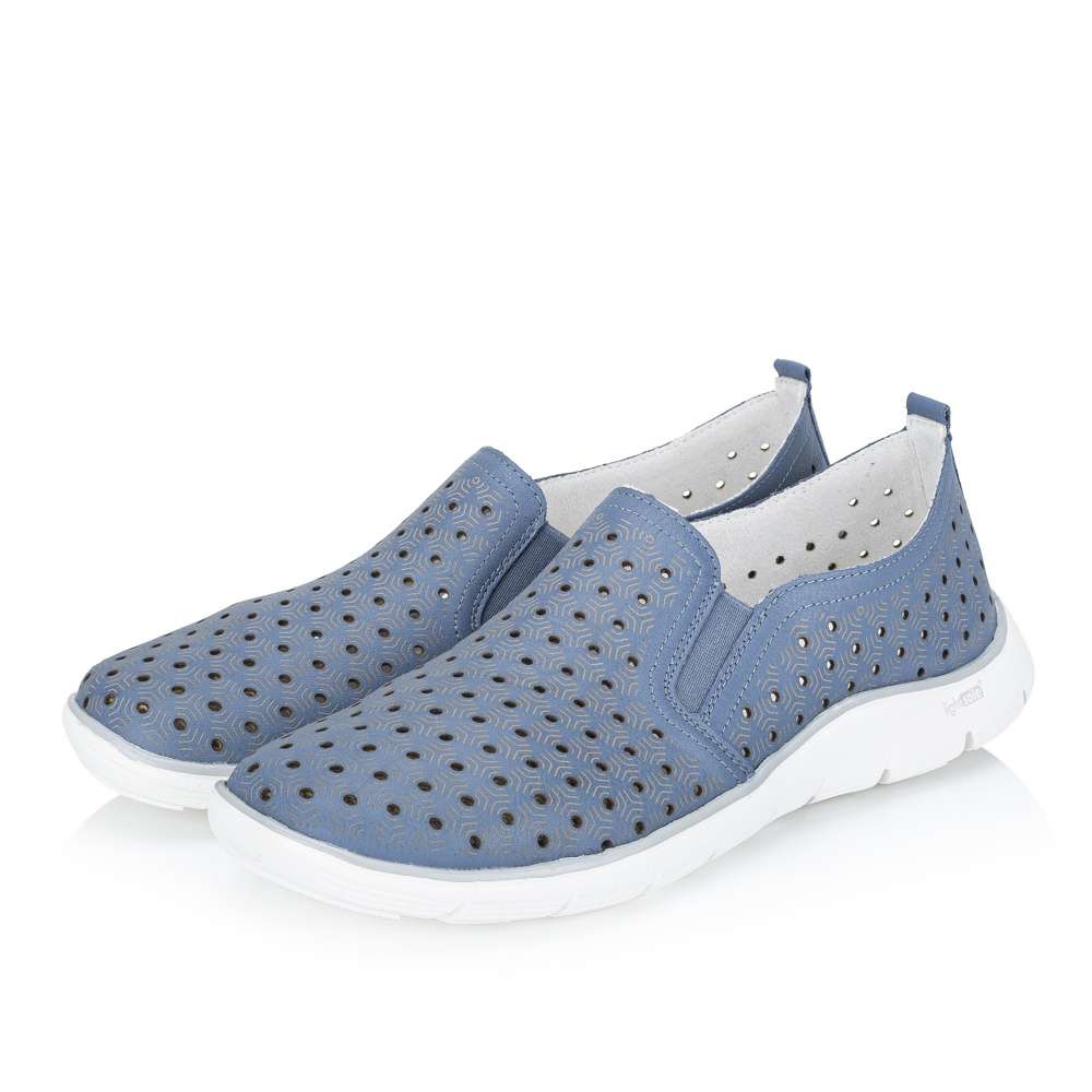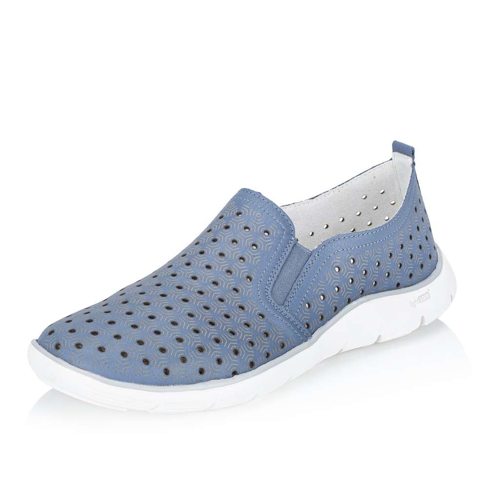 Obuv REMONTE představuje prémiovou řadu značky RIEKER, která se vyznačuje vysokou kvalitou použitých materiálů a precizním zpracováním. Tyto mokasíny jsou ztělesněním moderního městského stylu a komfortu. Kožený svršek působí mladistvě, přičemž minimalistické perforace zvyšují prodyšnost a vizuální atraktivitu půvabný vzor. Pružné gumičky na nártu zajišťují pohodlné nazutí a umožňují dokonalé přizpůsobení boty tvaru chodidla a v kombinaci s vyjímatelnou prodyšnou stélkou poskytují boty pocit měkkosti a opory při každém kroku. Stélku je navíc možné vyjmout, vyčistit nebo vyměnit za vlastní ortopedickou vložku. Flexibilní, lehká podešev je navržena tak, aby podporovala přirozený pohyb chodidla a svým bílým kontrastem zároveň doplňuje moderní vzhled. Díky modernímu designu jsou tyto boty ideální volbou pro každodenní nošení - do práce, do města, na procházky nebo volnočasové aktivity.