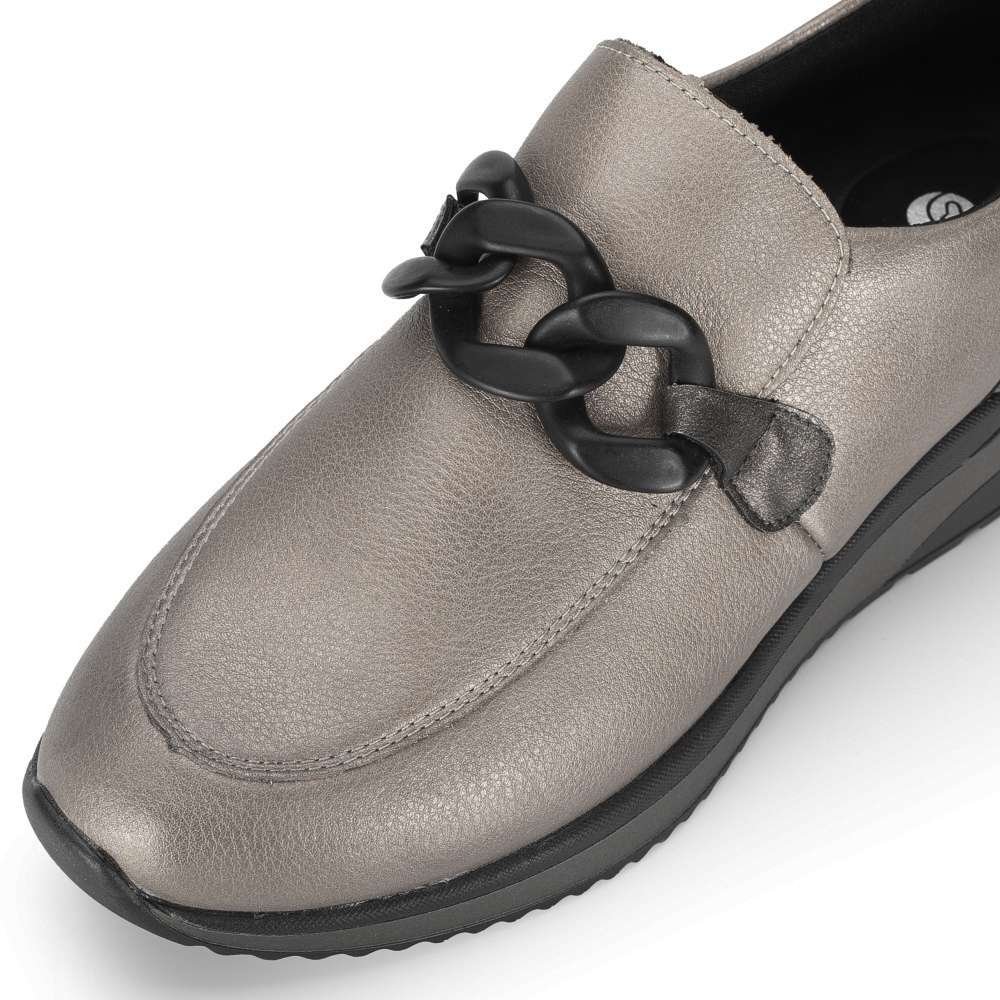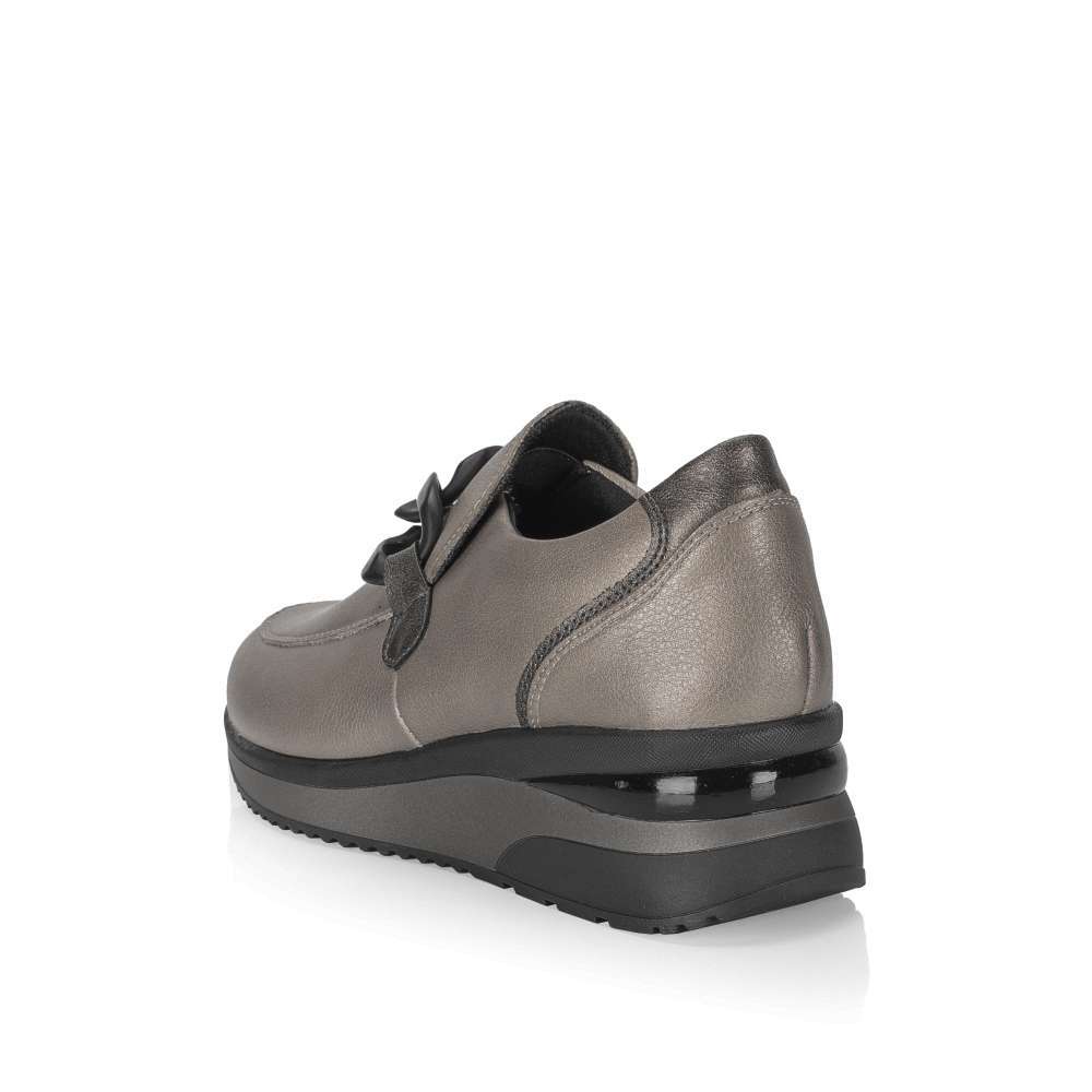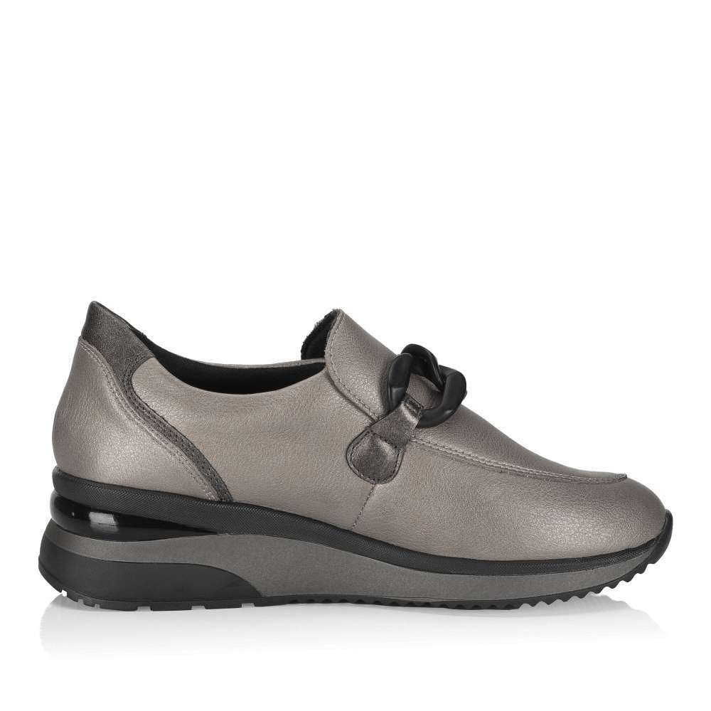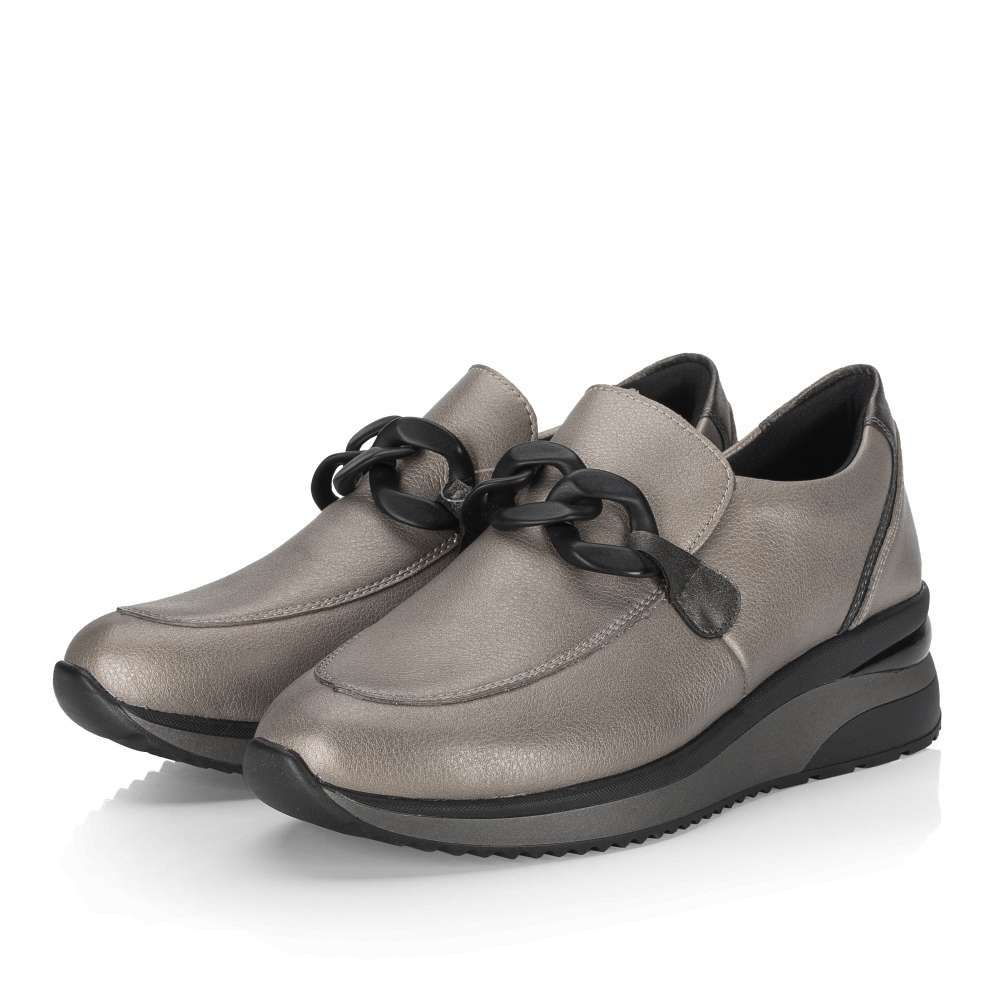 Obuv REMONTE je vyšší řada značky RIEKER, obuv se vyznačuje kvalitou použitých materiálů. Nepřehlédnutelné dámské mokasíny Vás uchvátí nevšední designovou aplikací na nártové části, jemným prošitím a kontrastní podešví. Kožený svršek dodá na eleganci celkového vzhledu. Měkká stélka se dokonale přizpůsobí tvaru Vaší nohy a Vám zajistí maximální komfort na každém kroku. S tímto jedinečným kouskem oživíte nejeden outfit.