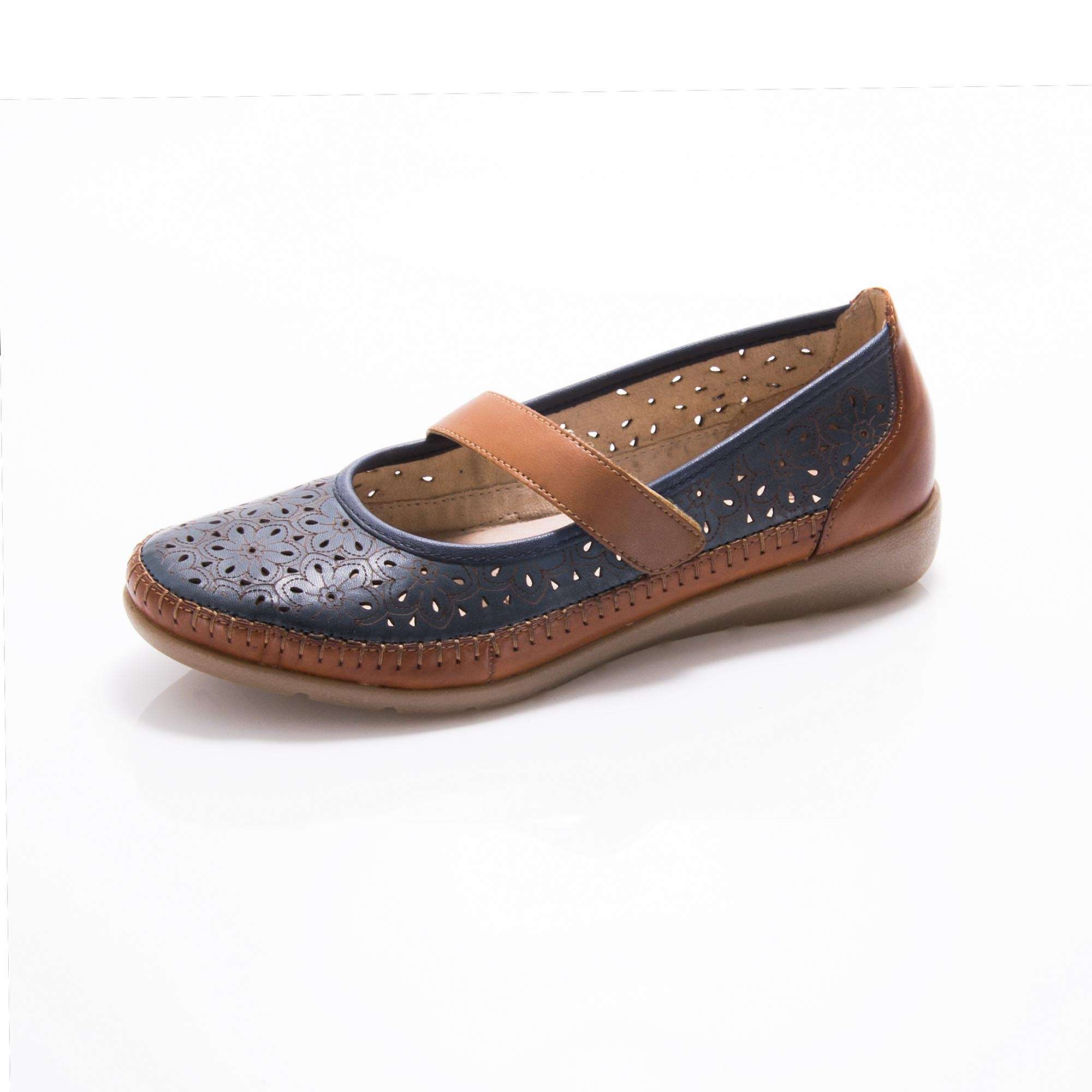 Pohodlí a elegance jsou ideální spojení zapracované v této kožené botě pro každou ženu, která ocení komfort i při dlouhodobé chůzi. Nazouvání Vám ulehčí pásek přes nárt na suchý zip a s gumičkou, díky tomu budou boty držet na Vaší noze pro maximální pohodlí při chůzi. Zdobný prvek je prošití a perforace podél celé polobotky s květinovým motivem, krásně doplní outfit do práce nebo na procházku.