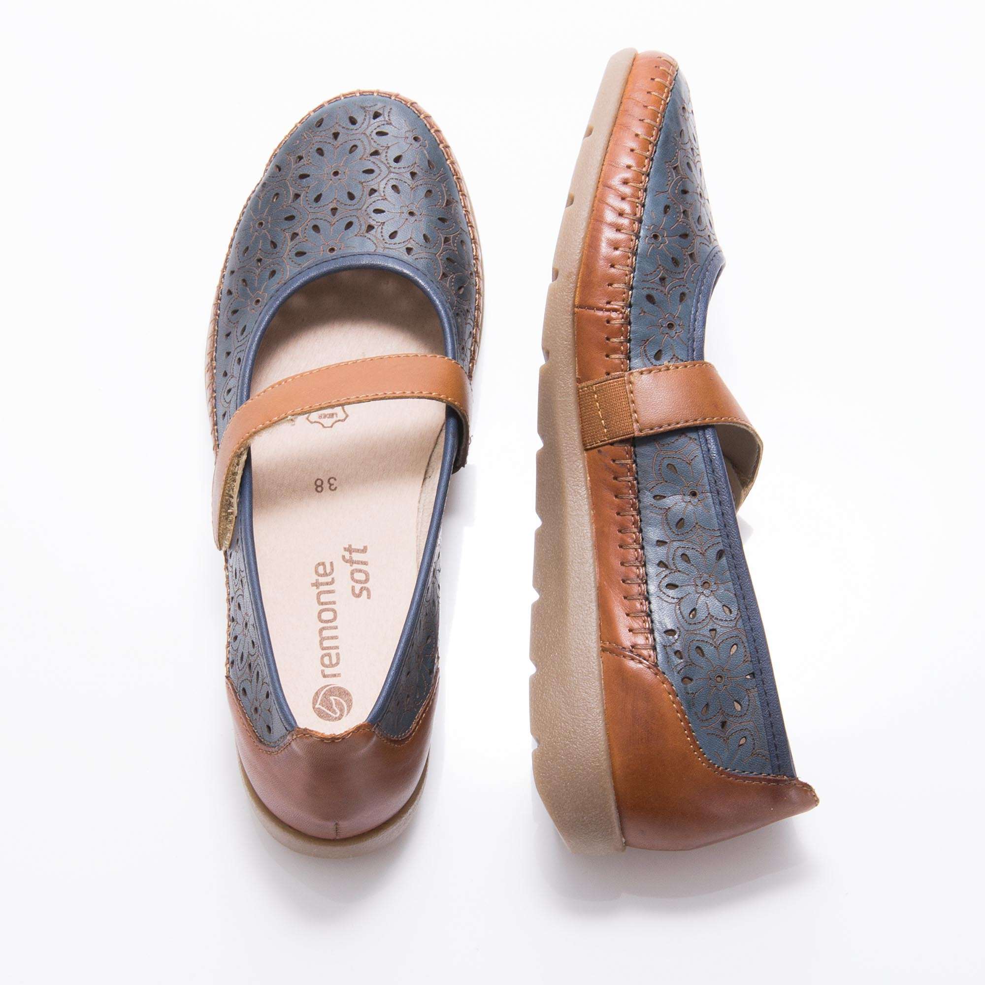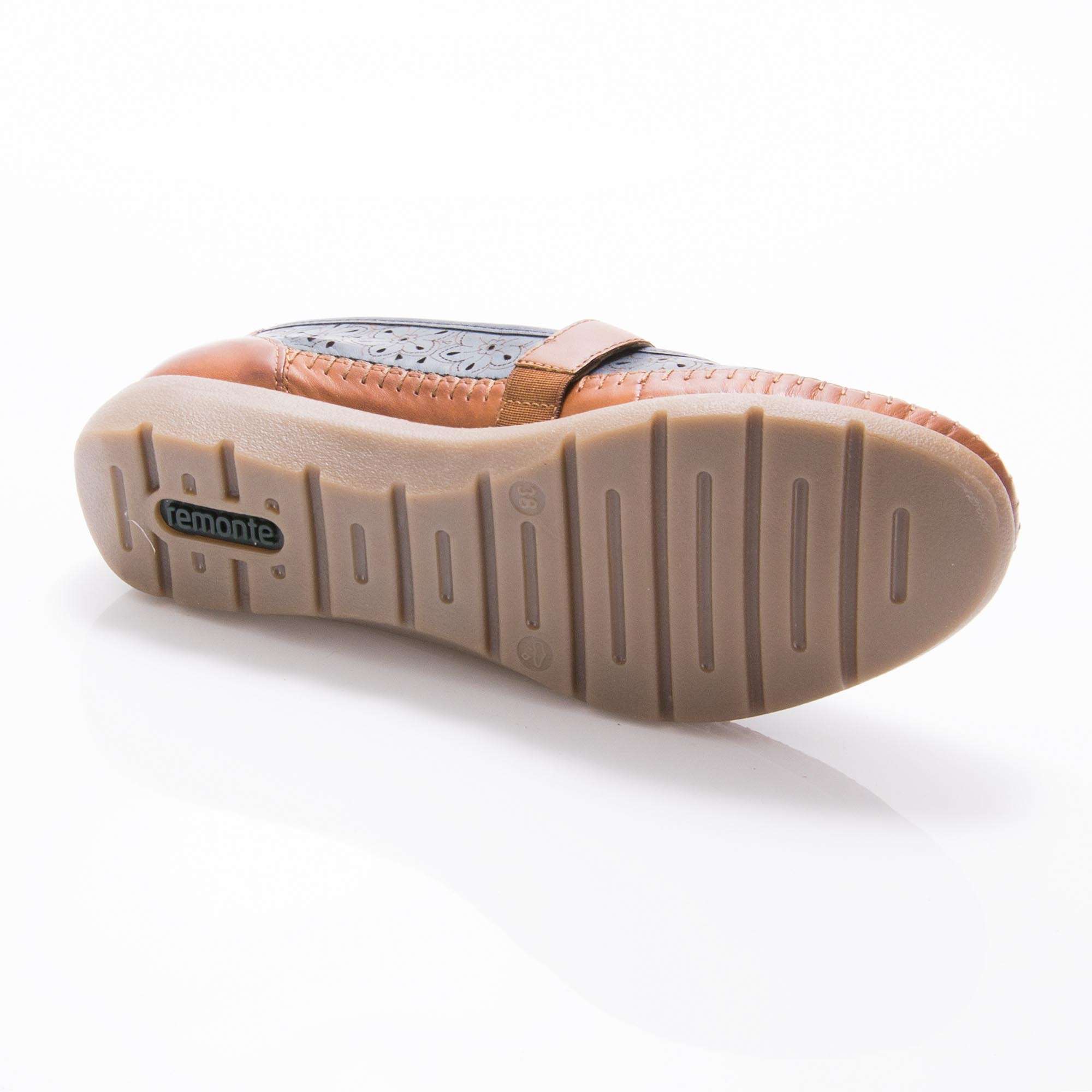 Dámská kožená polobotka s decentním květinovým vzorem, značky REMONTE (jedná se o vyšší řadu značky RIEKER).