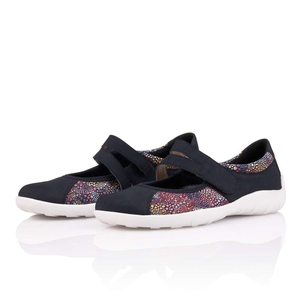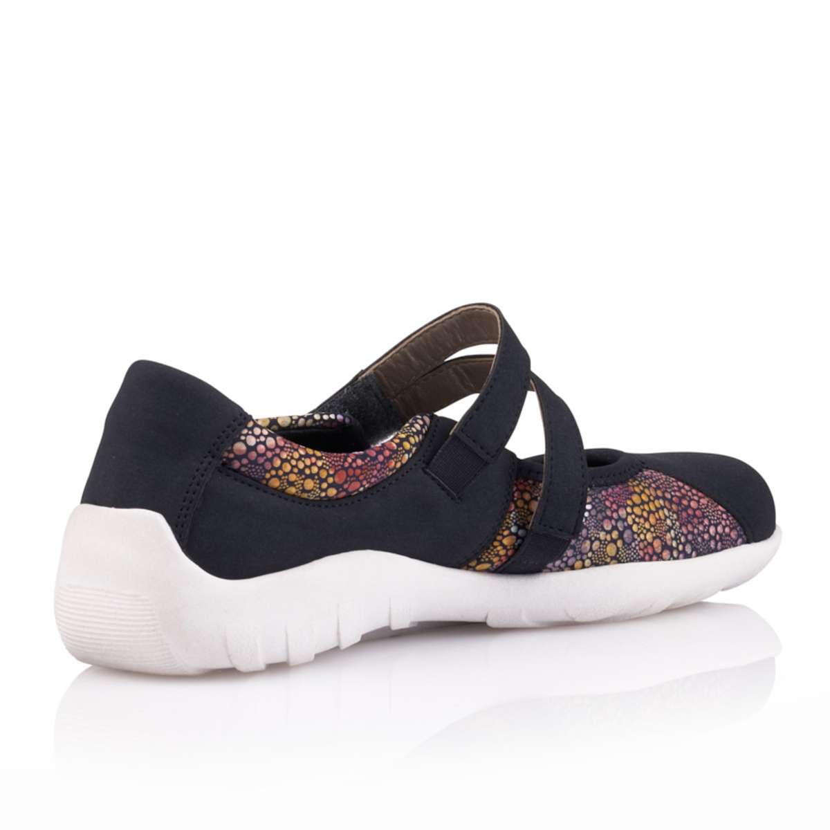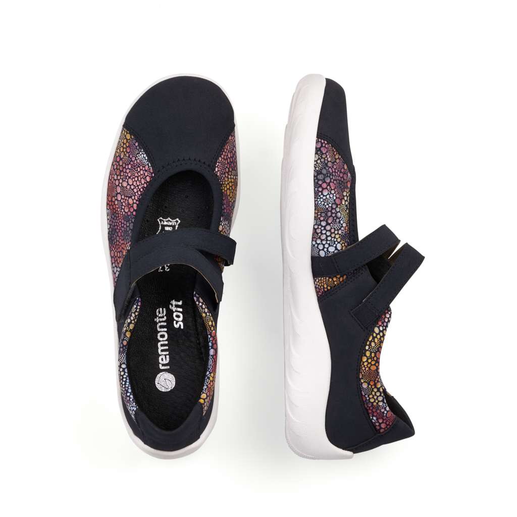 Dámská polobotka tmavě modré barvy s puntíkovým potiskem, značky REMONTE (jedná se o vyšší řadu značky RIEKER).