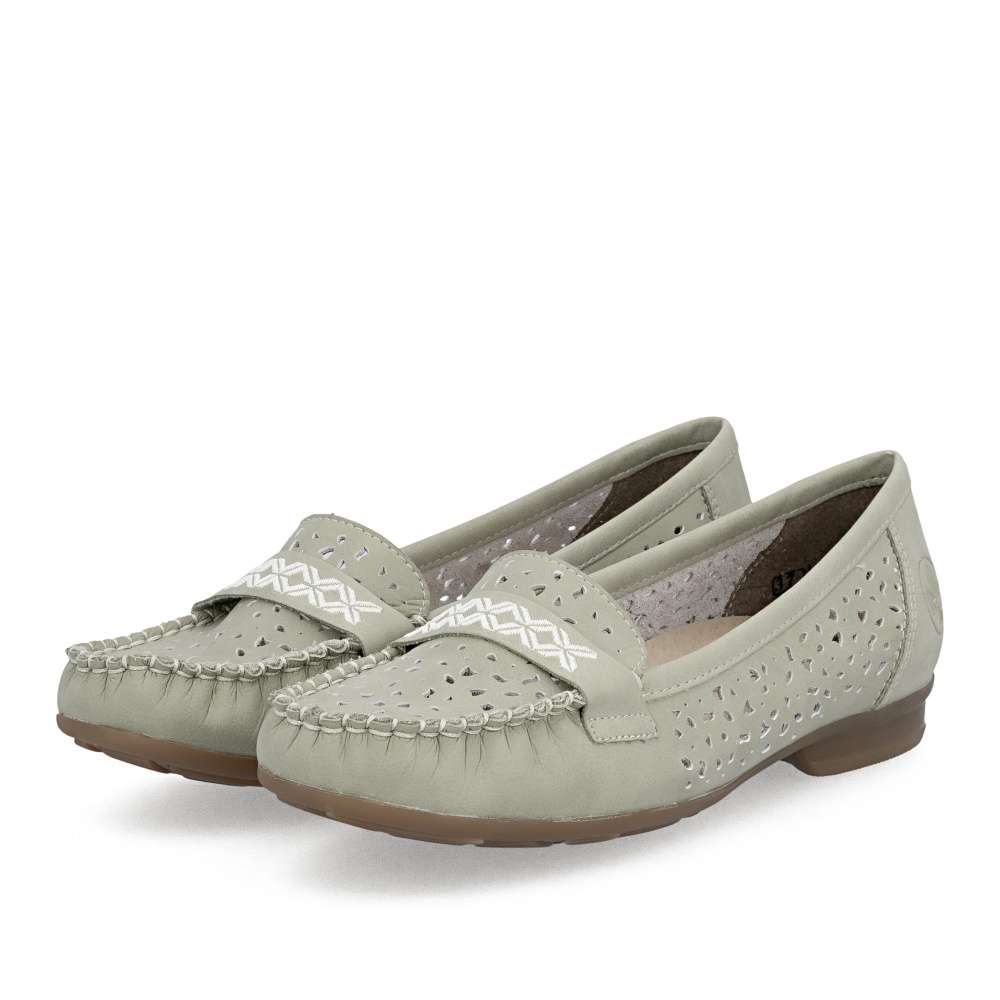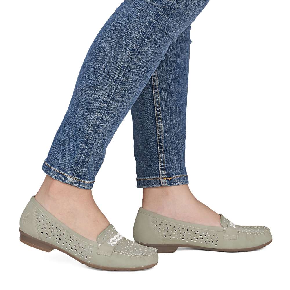 Už máte boty pro sezónu jaro/léto? Neváhejte a vložte do košíku tyto boty RIEKER, které budou láskou na první pohled. Svou jemně zelenou barvou s povrchovou perforací je doladíte snadno ke svému oblečení. Pro pohodlnou chůzi Vám boty nabízí koženou stélku a spolu s flexibilní podešví Vás nezklamou ani během delšího nošení. Nejen do práce, ale klidně i do kina či na koncert si je můžete obout a vyjít s grácií do ulic.