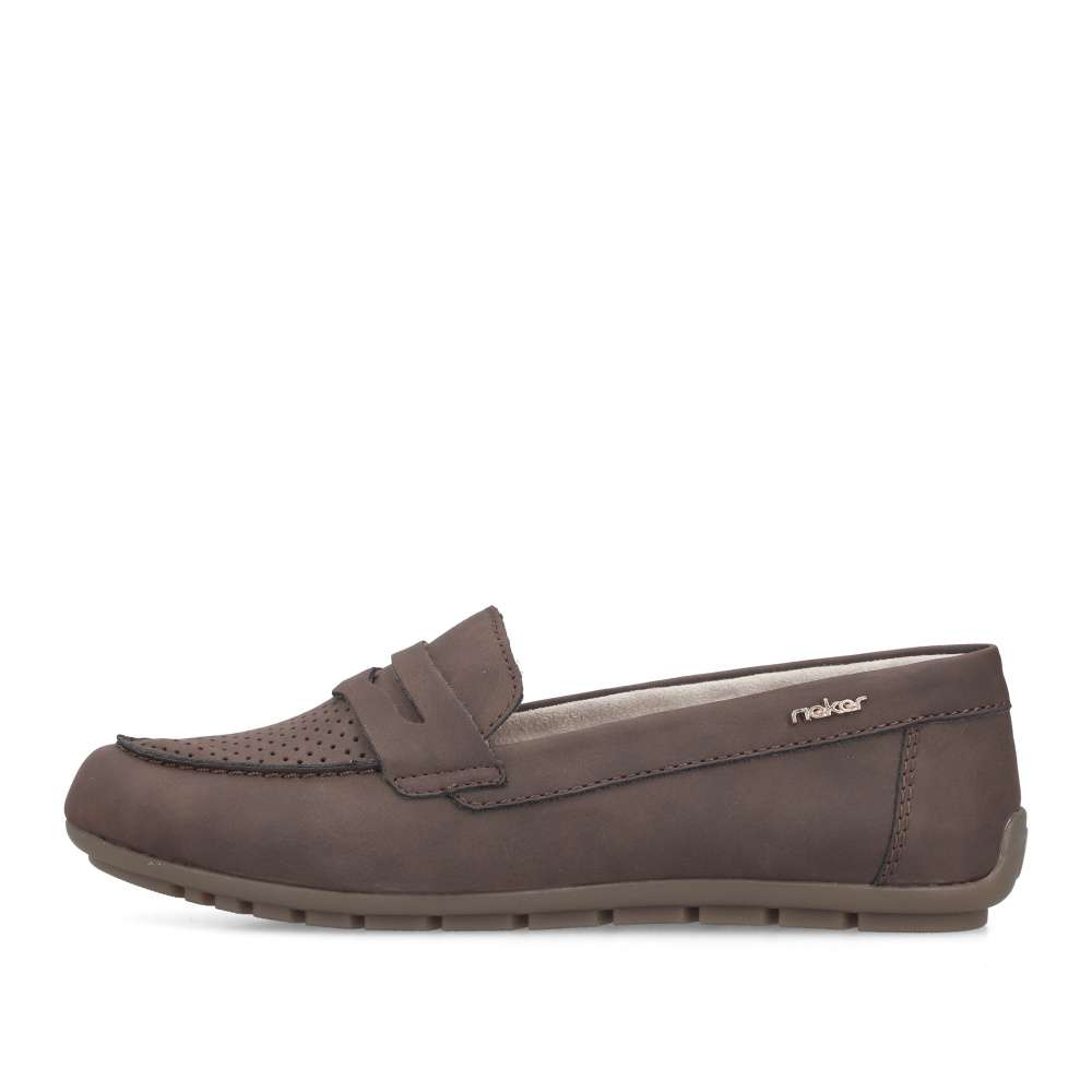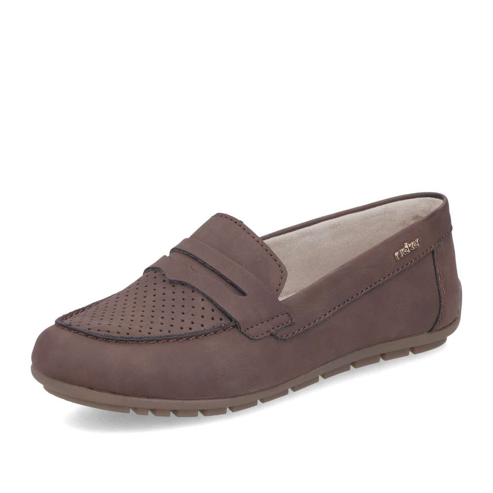 Mokasíny budou hitem této sezóny a mohou to být právě tyto od značky Rieker. Určitě oceníte nejen moderní vzhled, ale také maximální pohodlí. Svršek je zdoben ozdobným páskem přes nárt a decentní perforace už jen podtrhne celkový moderní vzhled. Boty mají měkkou vyjímatelnou stélku a flexibilní podešev pro dokonalý požitek z chůze. Už jen do nich vklouznout a vyjít do práce nebo na nákupy s kamarádkou.