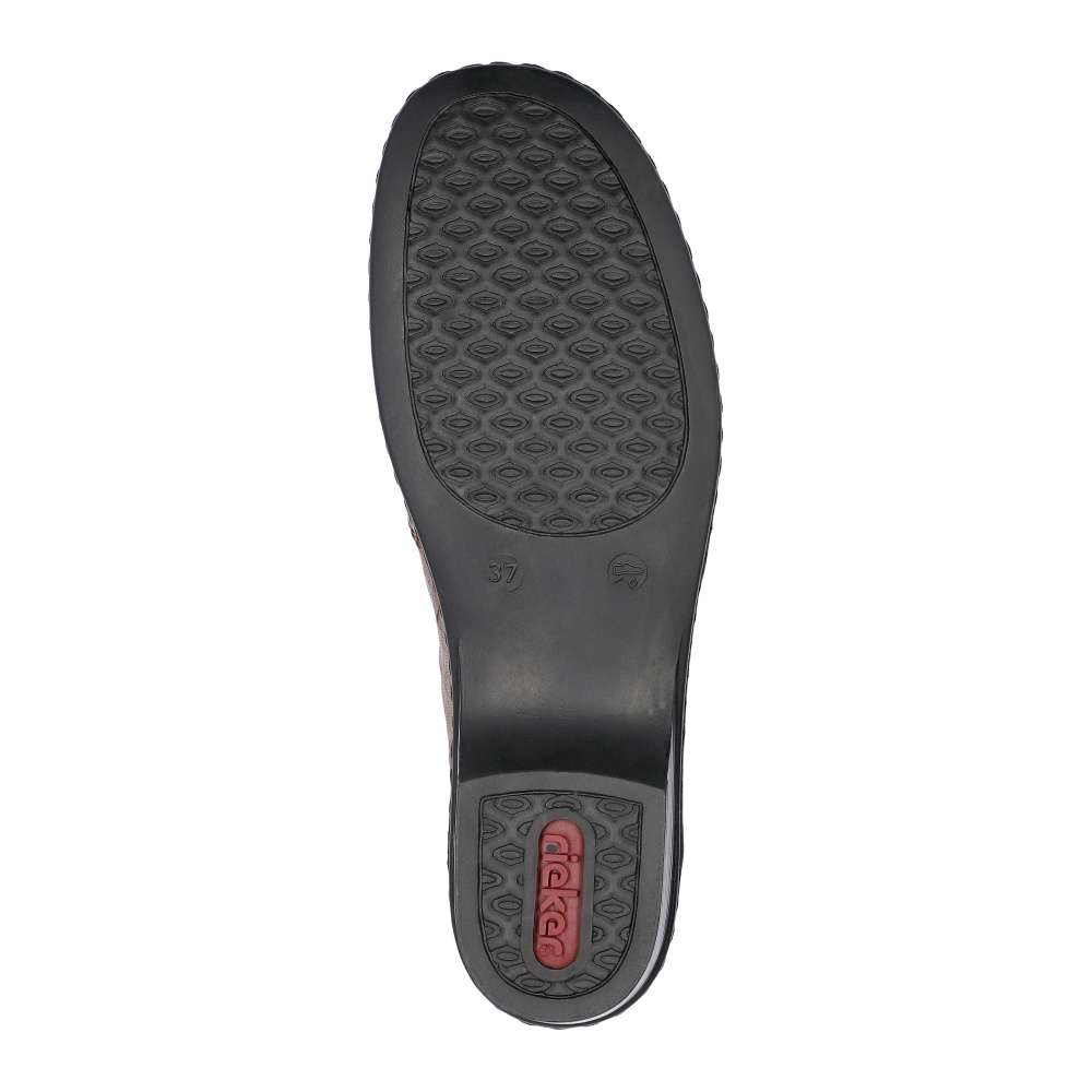 Dámské polobotky značky Rieker budou dokonalým obutím pro každodenní nošení. Svršek i stélka jsou z kvalitní kůže a jsou jistotou komfortního nošení, které zajistí pouze tento materiál. Hnědý svršek má zajímavý potisk, prošití a vytištěné logo v zadní části, tato kombinace vytváří dokonalý celek. Na nártu jsou vsazeny gumičky pro usnadnění obouvání a po nazutí oceníte měkkou stélku, její šířka je vhodná i pro širší chodidla. Maximální pohodlí a moderní vzhled ocení každá žena ve svém šatníku, proto vám tento model nemůže chybět ve sbírce bot. Technologie: Antistress – podešev je díky této technologii lehká, flexibilní, absorbuje nárazy při došlapu a snadno se přizpůsobí každé noze. Extra Weit - širší střih boty přizpůsobený chodidlu pro vytvoření dostatečného prostoru v oblasti přední části chodidla.