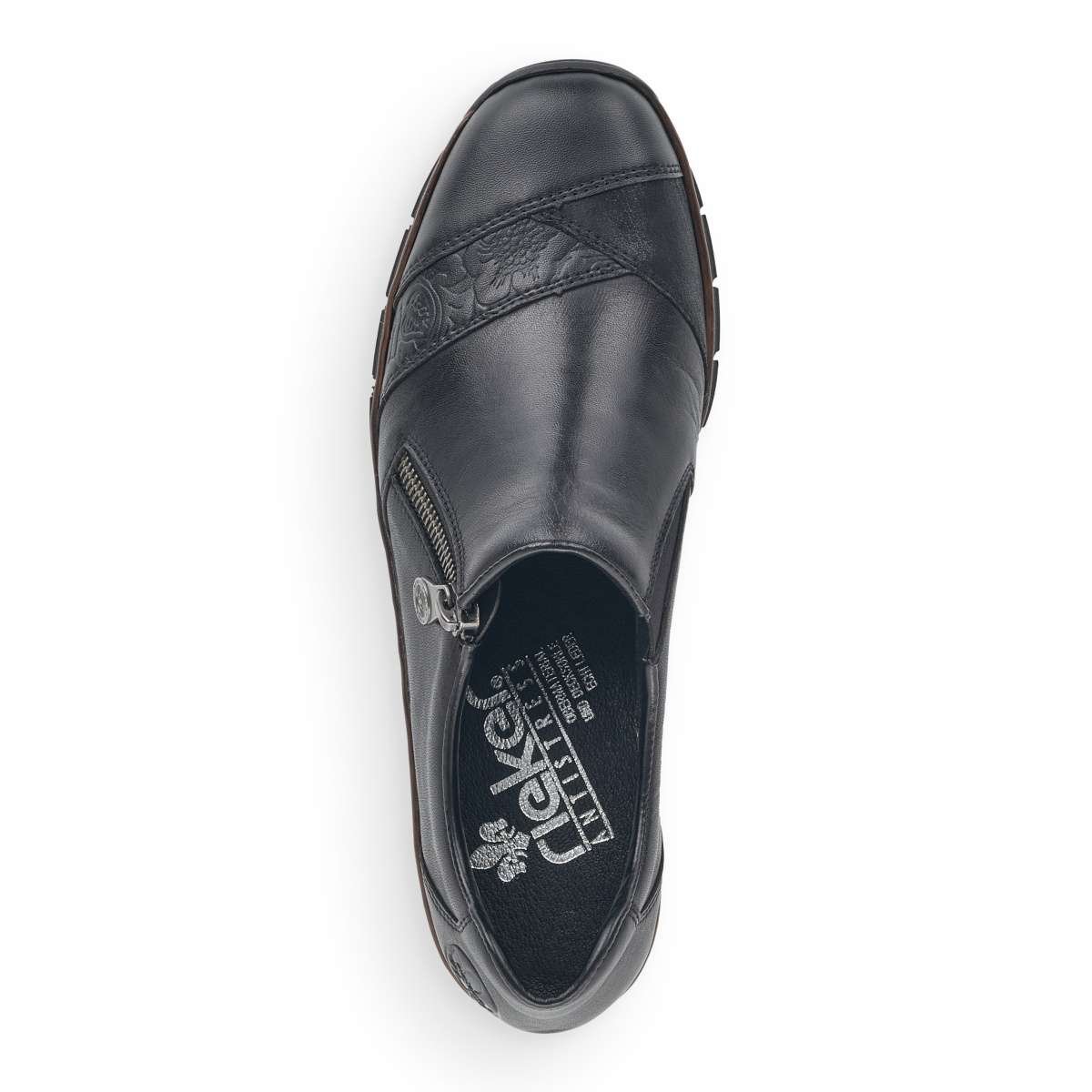 S touto obuví od značky Rieker dovedete každý outfit k dokonalosti. Kožený svršek oceníte díky lehké údržbě. Svršek je decentně ozdoben pásky na nártu a logem značky Rieker v oblasti paty. Uzavírání na zip je navíc doplněno o elastický prvek, díky kterému Vám obuv skvěle padne. S měkkou stélkou se budete cítit pohodlně po celý den, ať už vyrazíte do práce či do města. Technologie: Antistress – podešev je díky této technologii lehká, flexibilní, absorbuje nárazy při došlapu a snadno se přizpůsobí každé noze.