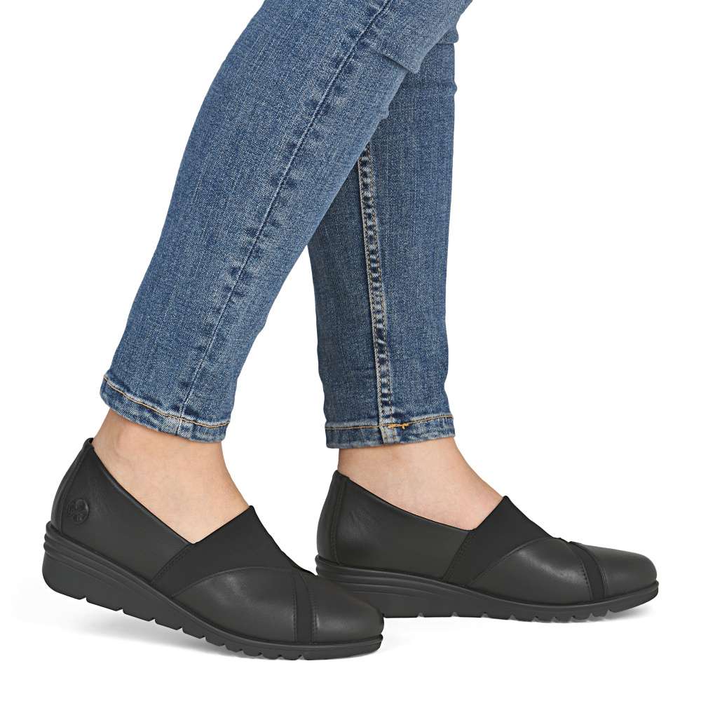 Tento prémiový model obuvi značky RIEKER představuje dokonalé spojení módního vzhledu a vyjímečného pohodlí. Černý svršek je vytvořen z precizně zvolených materiálů, jejichž harmonická kombinace dodává botám sofistikovaný a nadčasový charakter. Kožená stélka s jemnou strukturou poskytuje příjemný masážní efekt a podešev s tlumícími vlastnostmi účinně absorbuje nárazy při chůzi. Ať už se jedná o pracovní den, víkendový výlet nebo večerní setkání, tyto boty RIEKER zaručí pohodlí a působivý vzhled.
