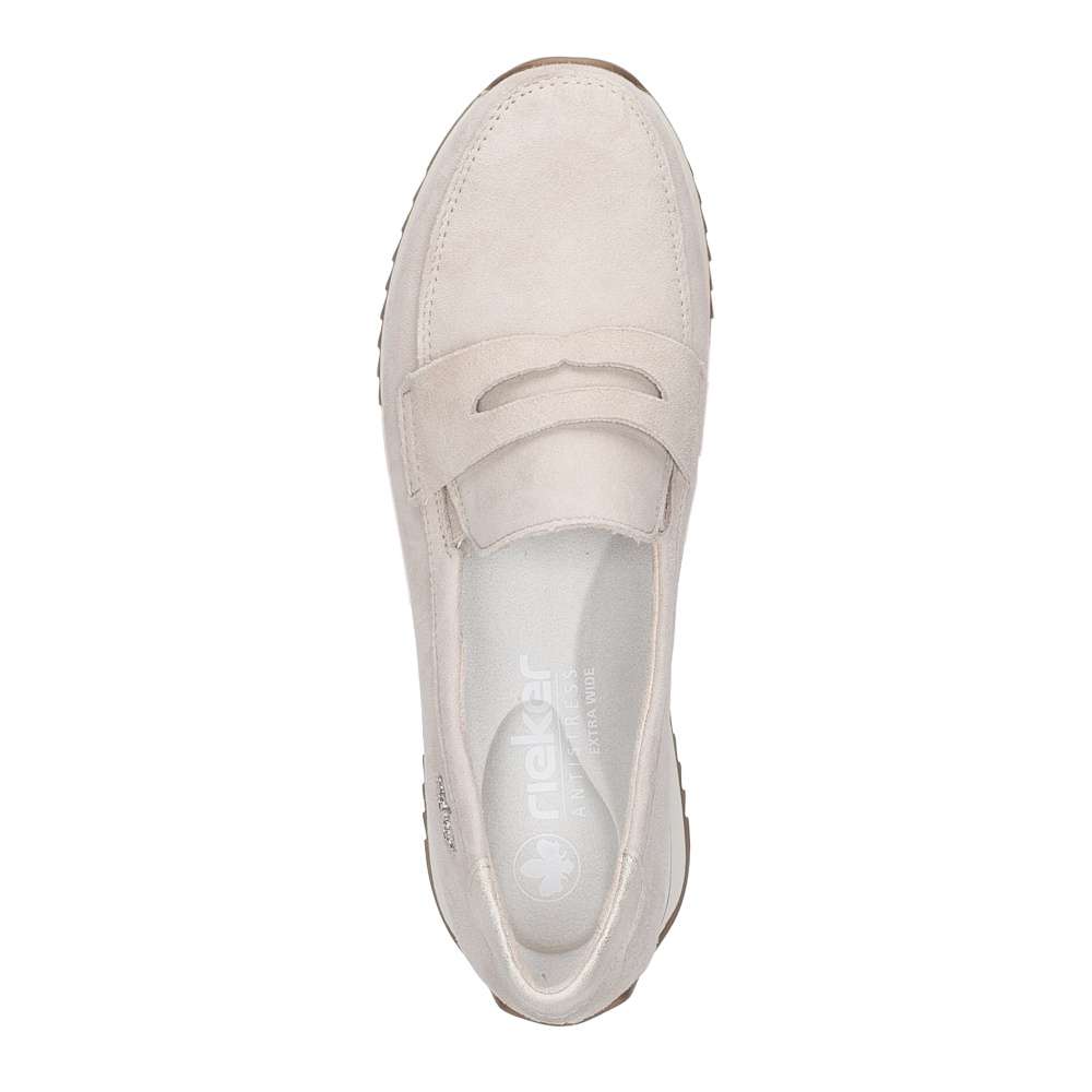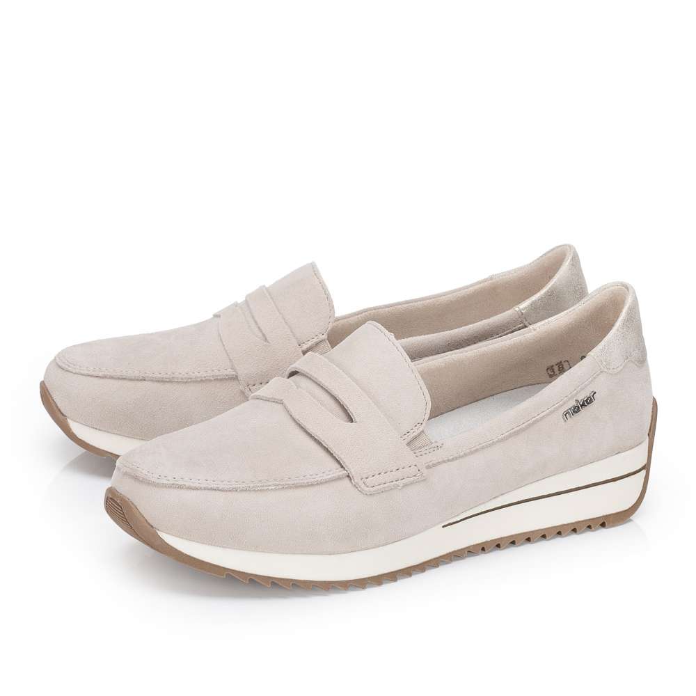 Mokasíny budou hitem této sezóny a mohou to být právě tyto od značky Rieker. Určitě oceníte nejen moderní vzhled, ale také maximální pohodlí, které nabízejí. Béžový svršek je zdoben ozdobným páskem přes nárt a decentní šití už jen podtrhne unikátní vzhled. Boty mají měkkou vyjímatelnou stélku a flexibilní podešev pro dokonalý požitek z chůze. Už jen do nich vklouznout a vyjít do práce nebo na nákupy s kamarádkou.