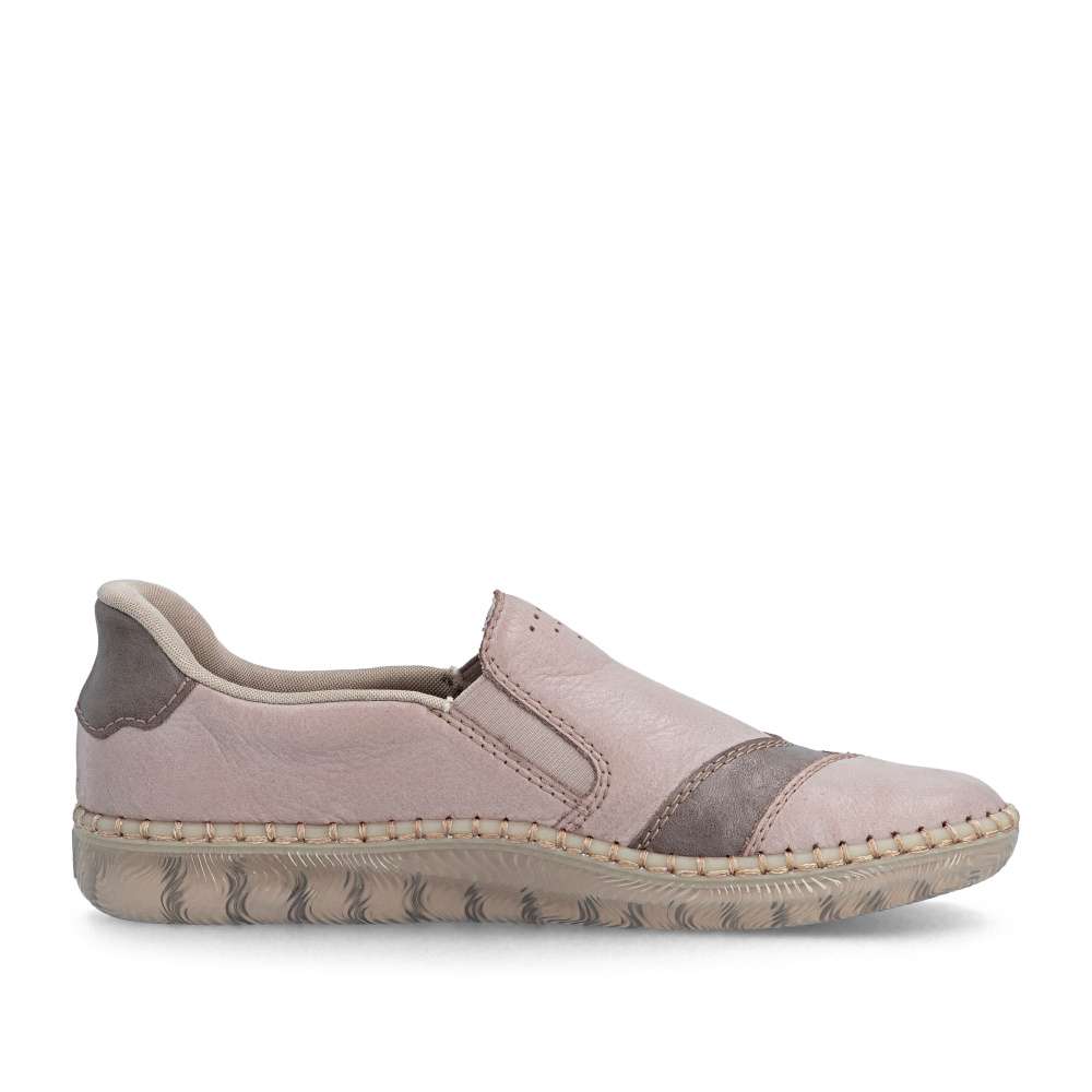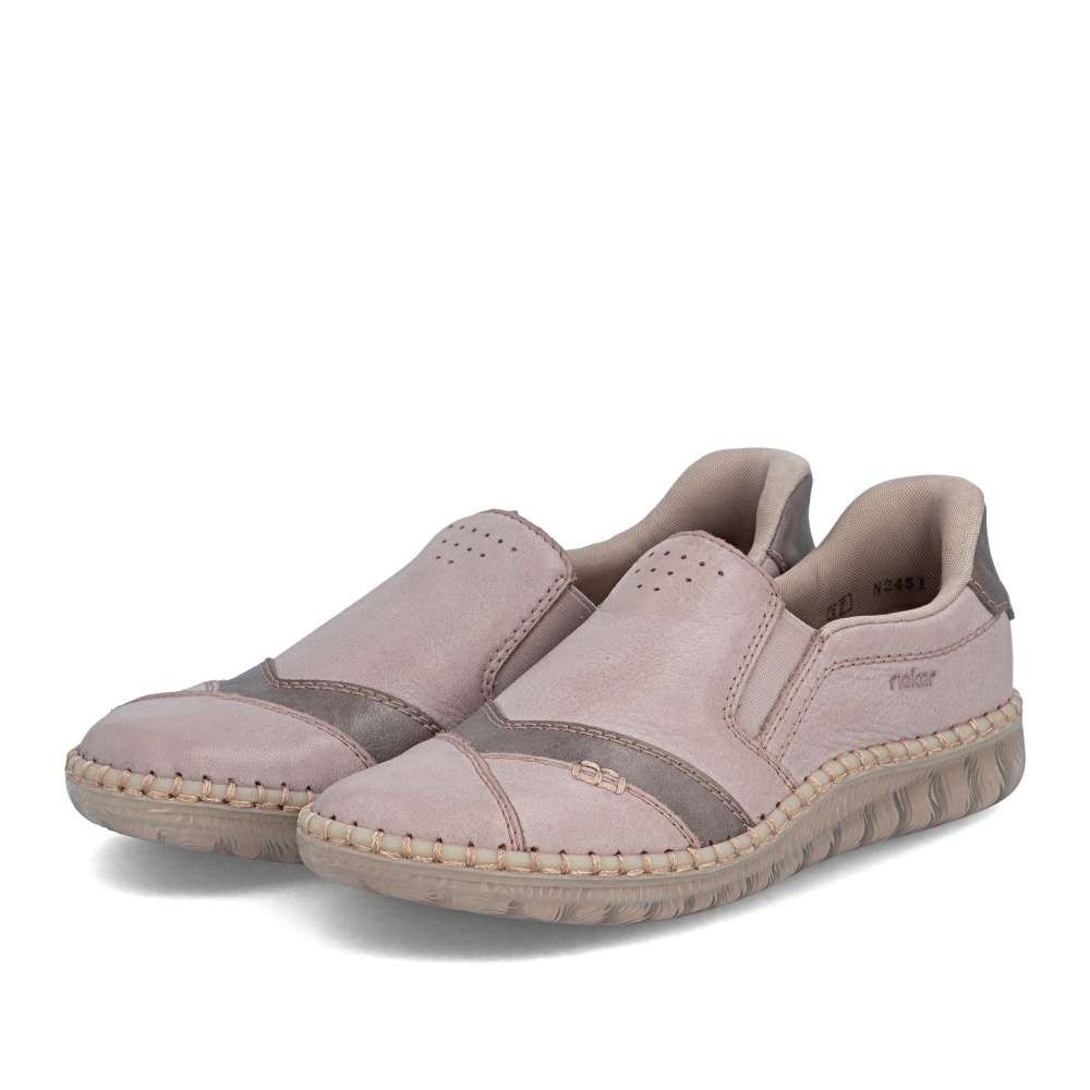 Tyto dámské mokasíny RIEKER kombinují působivé barevné linie, jemné prošití a decentní perforovaný vzorek, což jim dodává stylový vzhled. Pružné gumičky po stranách nártu se pohodlně přizpůsobí tvaru chodidla, což umožňuje snadné obouvání. Svršek je spojen s podešví kvalitním šitím, které zvyšuje odolnost a flexibilitu obuvi. Vyjímatelná stélka zaručuje maximální komfort, je vhodná i pro širší chodidla a umožňuje její jednoduchou výměnu dle vlastních potřeb. Tyto mokasíny jsou stylovou a praktickou volbou pro každý den a stanou se spolehlivým společníkem ve vašem šatníku.