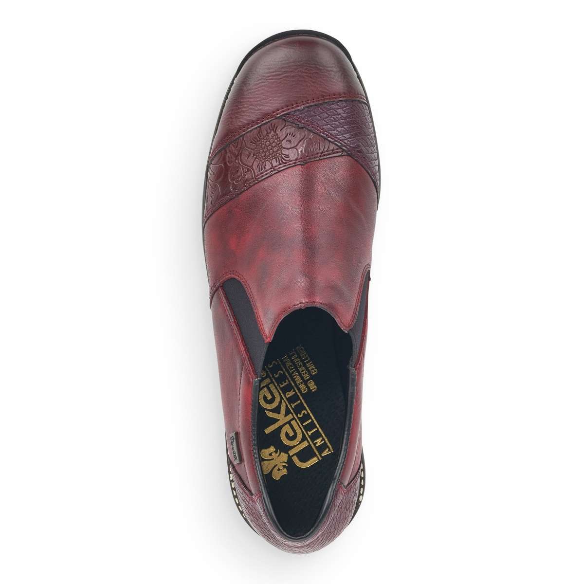 Dámská polobotka červené barvy s designovým provedením svršku, značky RIEKER.