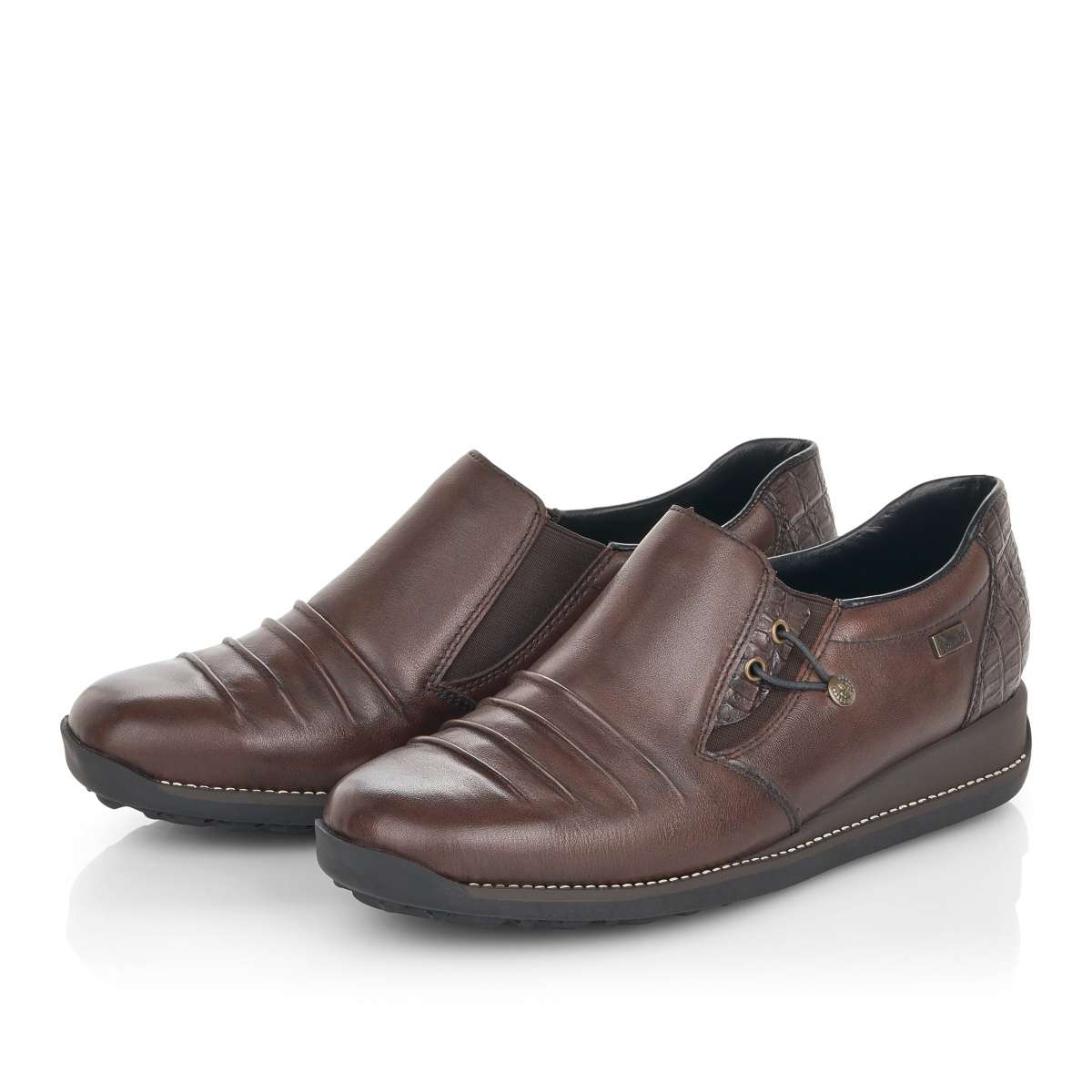 Dámská stylová obuv v hnědé barvě s vrásněním na přední straně, značky RIEKER.