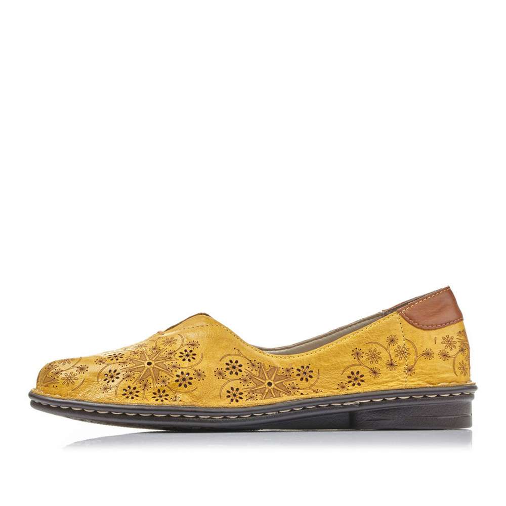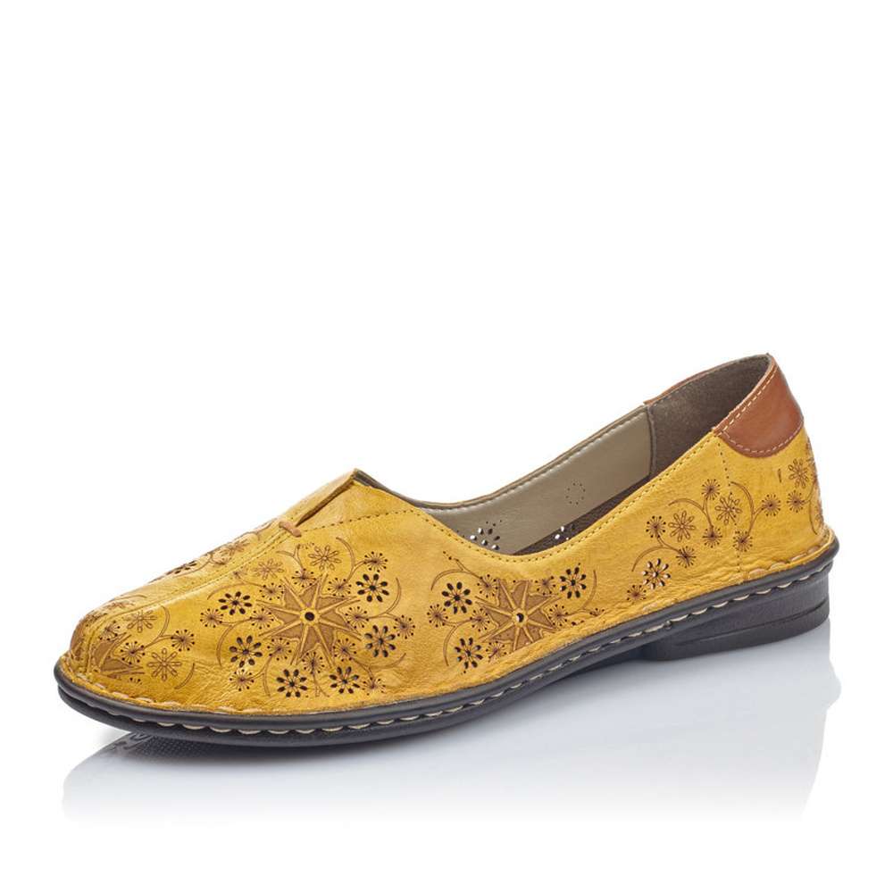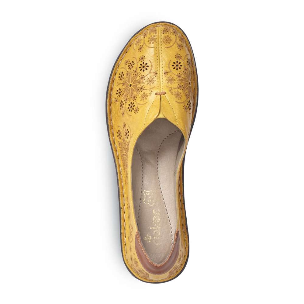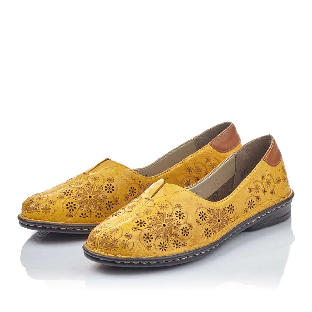 Krásná jarní botička značky RIEKER ve žluté barvičce.