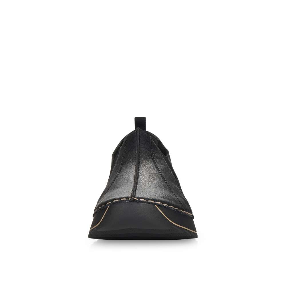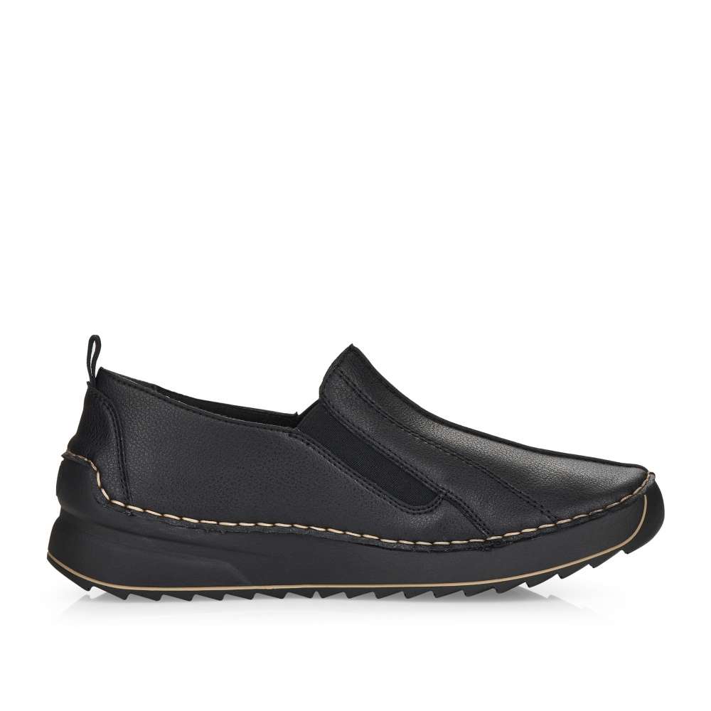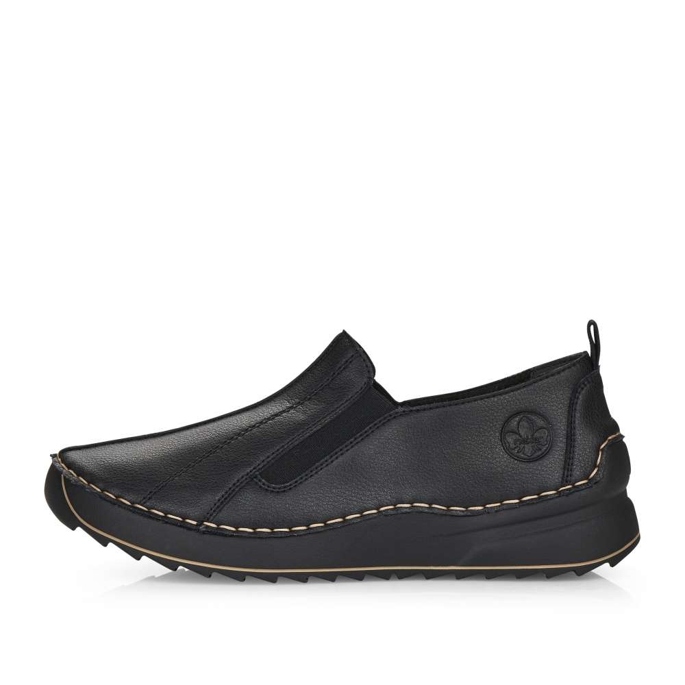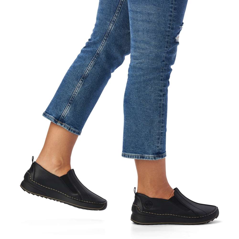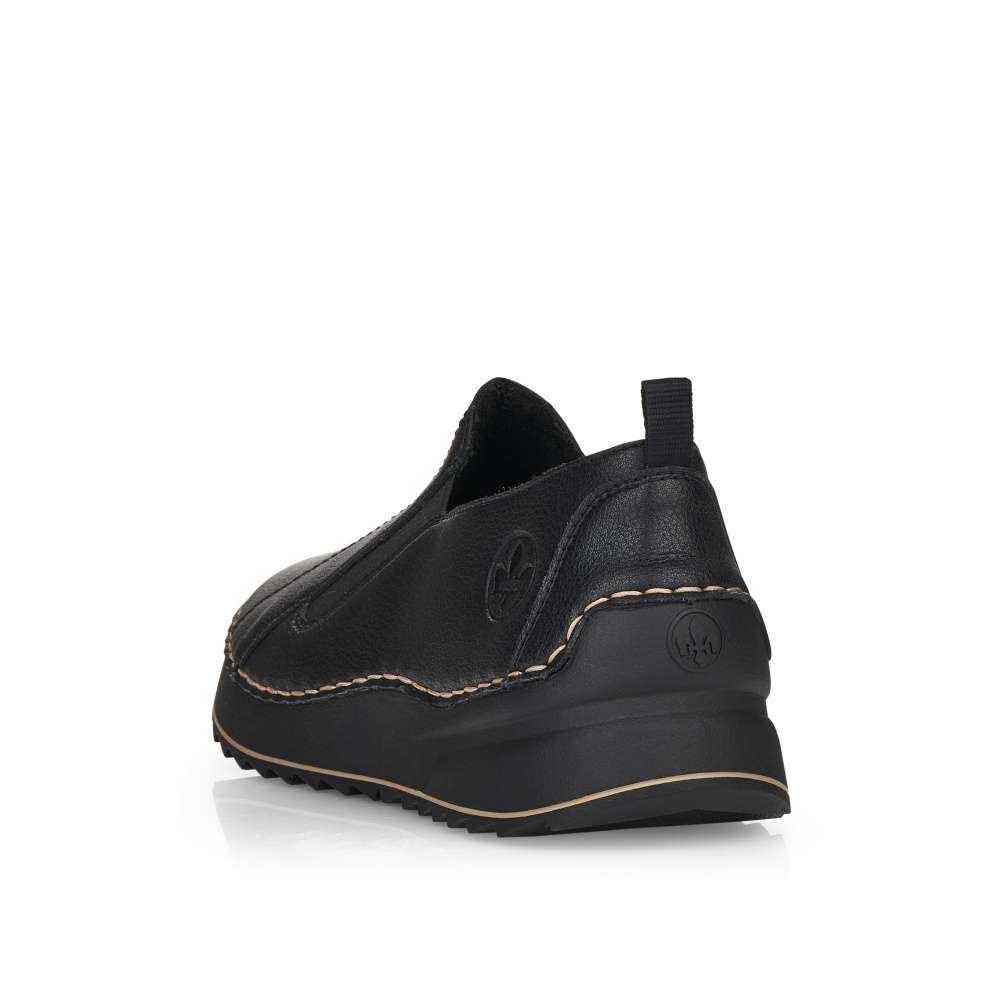 Touto dámskou botou značky RIEKER nemůžete nic pokazit. Svršek je tažený hladkou kůží. V oblasti nártu je do boty všitá pružná guma, díky které se do boty snadněji dostanete. Z boční strany je vyraženo logo společnosti. Po obvodu boty prochází jemné prošívání. K těmto botám si můžete vzít nějaké příjemné kalhoty nebo šaty a vyrazit do společnosti.