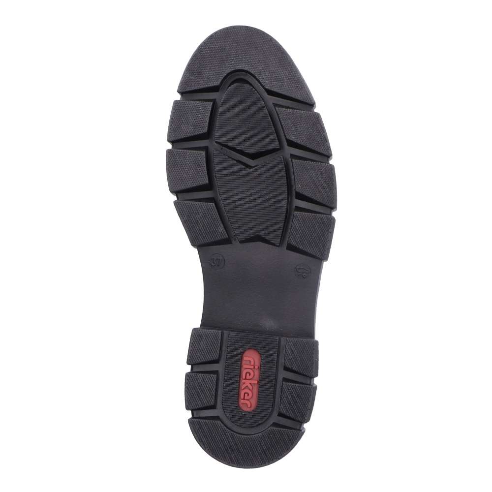 Tyto dámské boty značky RIEKER Vám dodají ten správný šmrnc. Přes svršek boty vede ozdobný prvek zlaté barvy. Logo značky je vidět na boční straně. Dominantou je vyšší podešev a měkká stélka, díky které se v botě budete cítit velice pohodlně. Dejte na první pohled a udělejte si radost zakoupením této obuvi, určitě neuděláte chybu. Technologie: Antistress – podešev je díky této technologii lehká, flexibilní, absorbuje nárazy při došlapu a snadno se přizpůsobí každé noze.