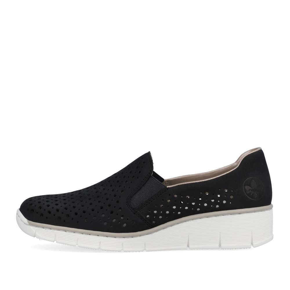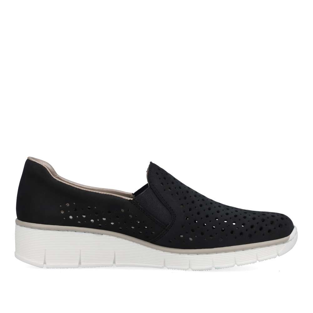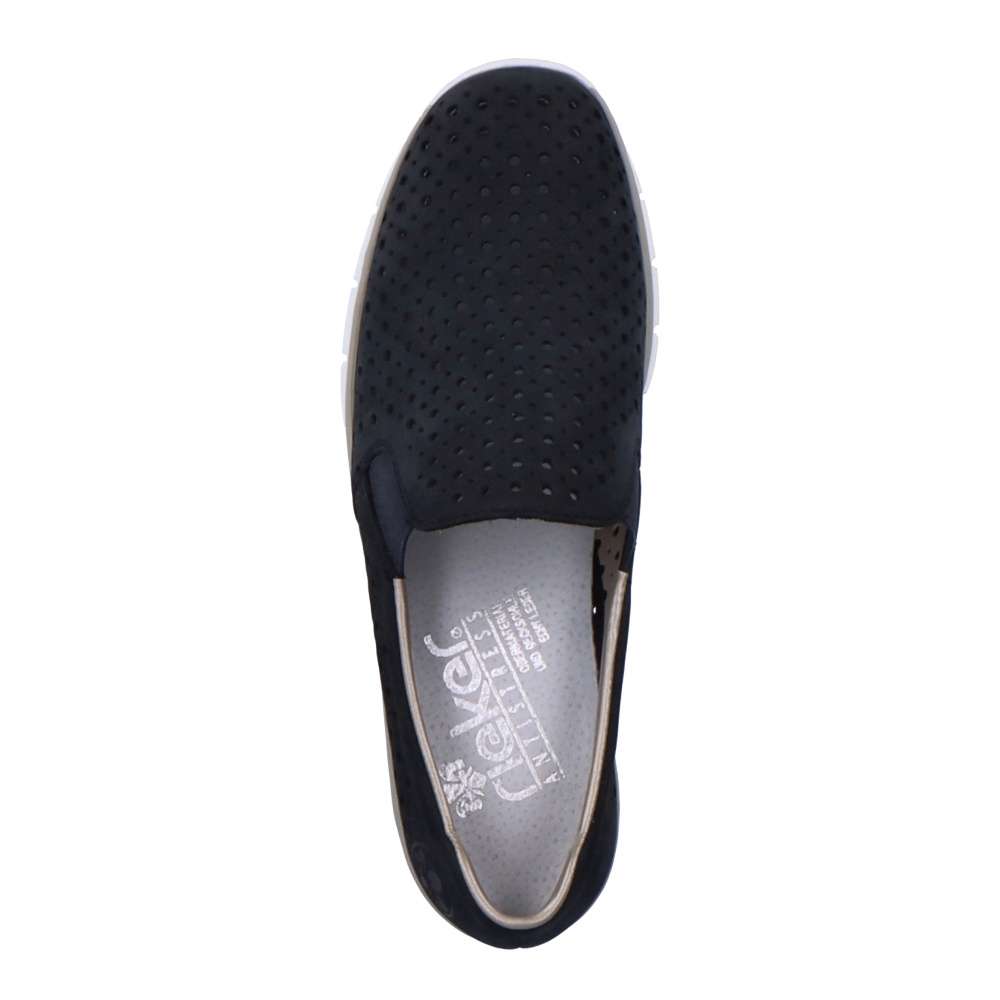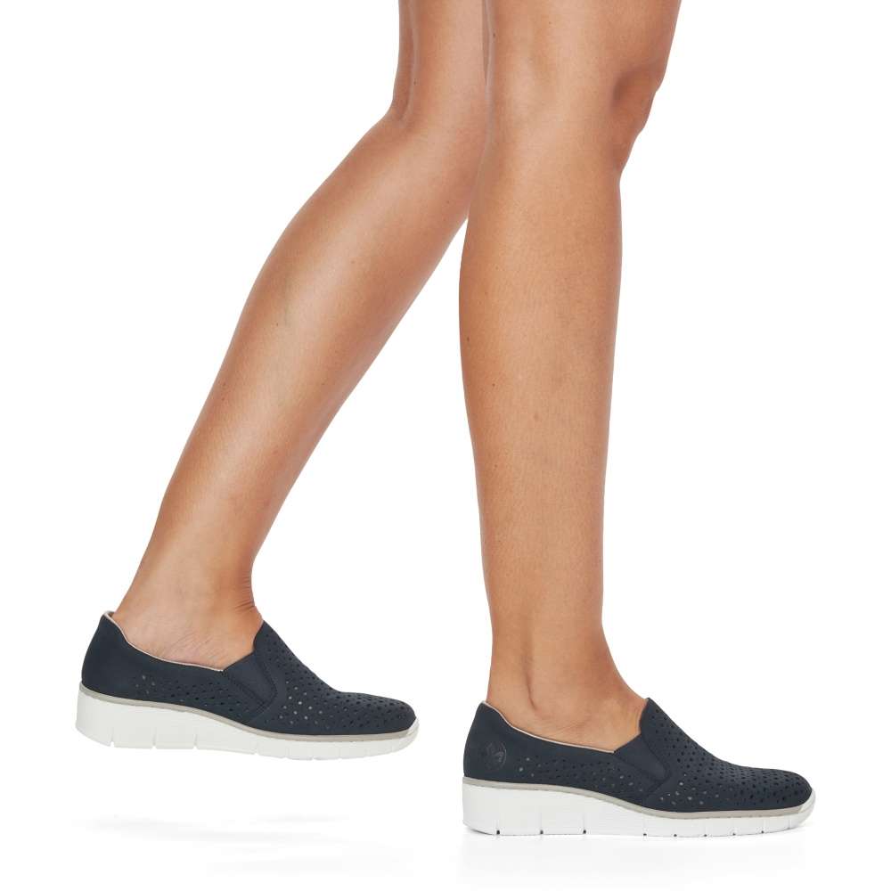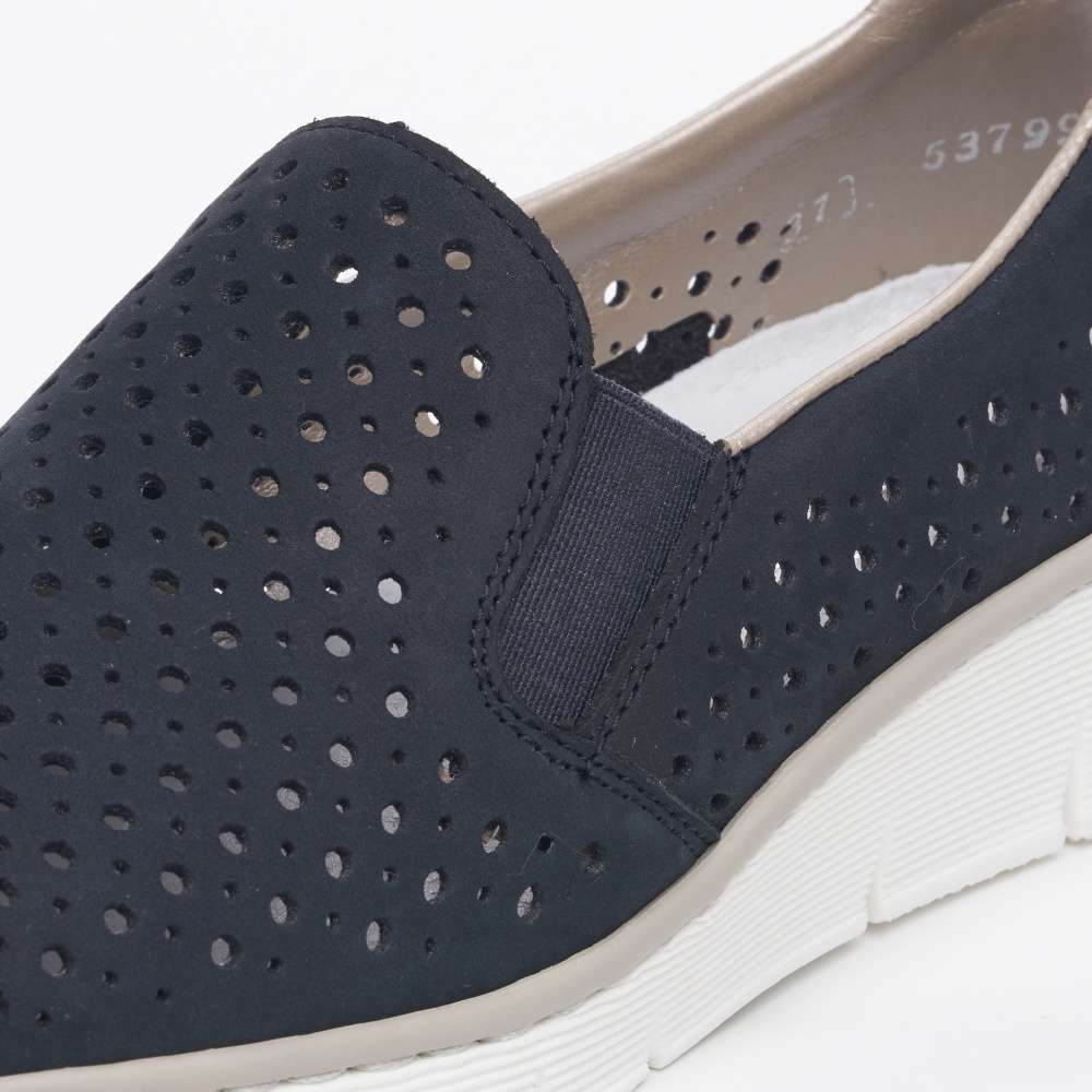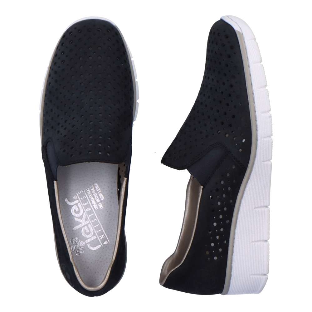 Tato dámská bota značky Rieker dodá Vašemu outfitu tu správnou jiskru. Svršek je kožený a bohatě perforovaný, takže Vám v botách nebude příliš horko. Pružná gumka všitá na bočních stranách usnadňuje nazouvání. Vytlačené logo zdobí oblast paty. Maximální pohodlí Vám zajistí měkká stélka. K těmto botám se Vám budou hodit šaty nebo sukně. Vzít si je s sebou můžete klidně do práce nebo na výlet.