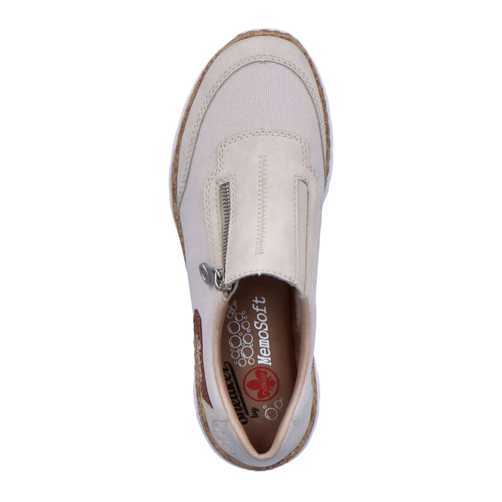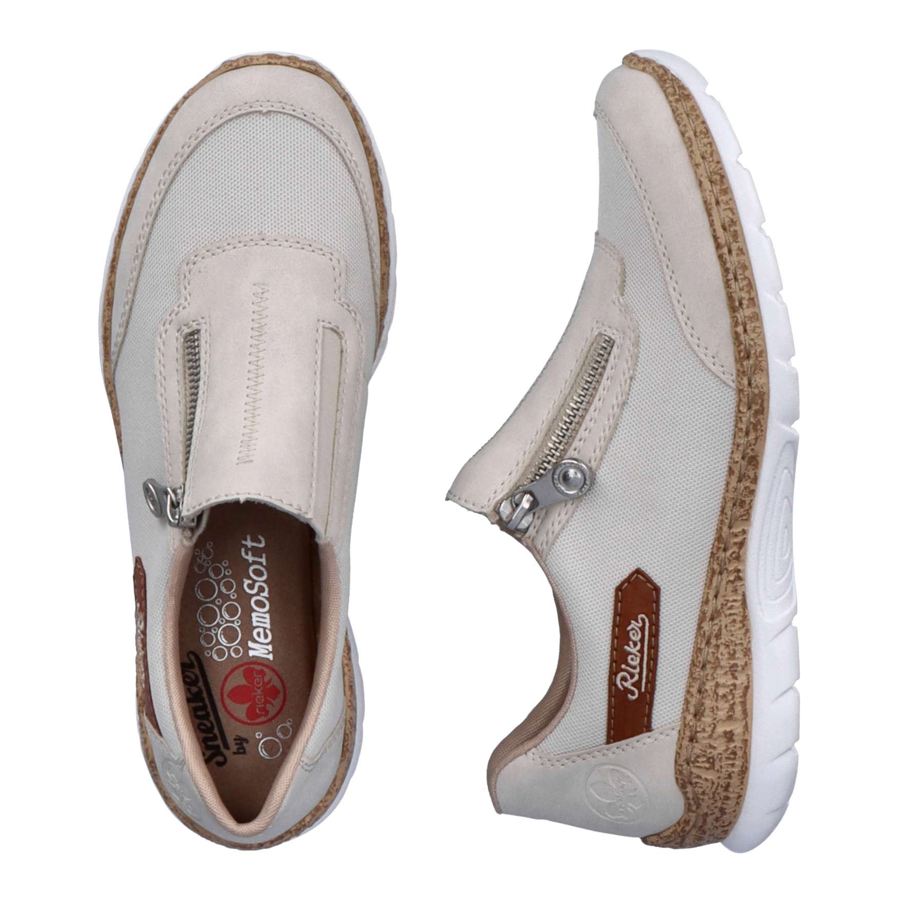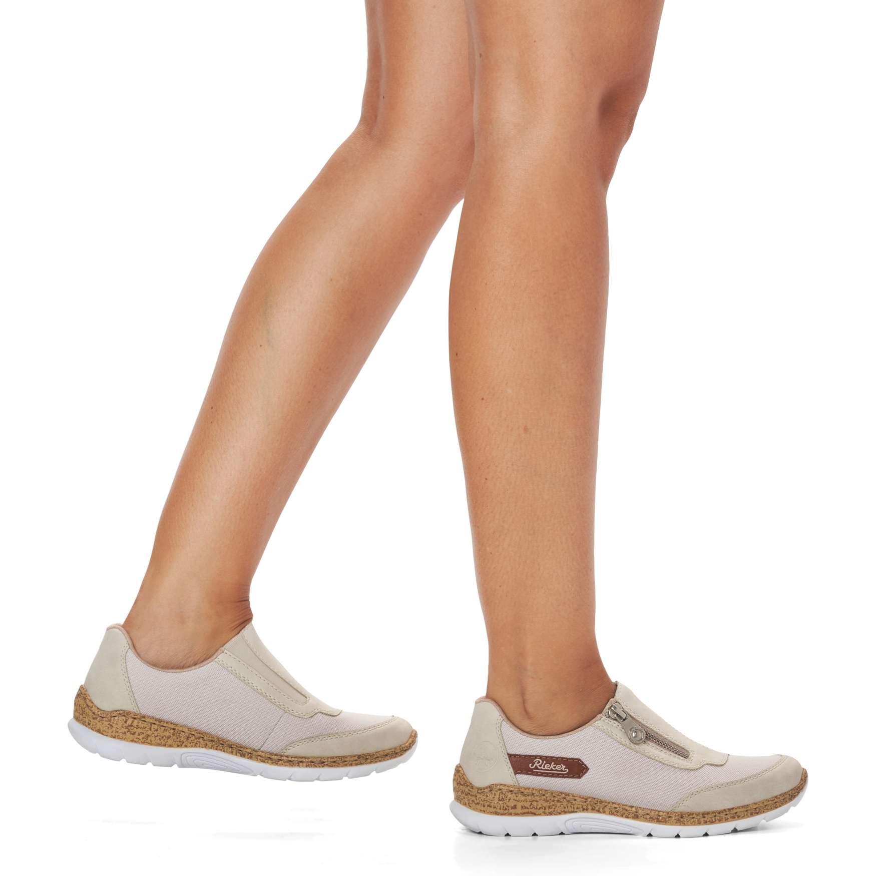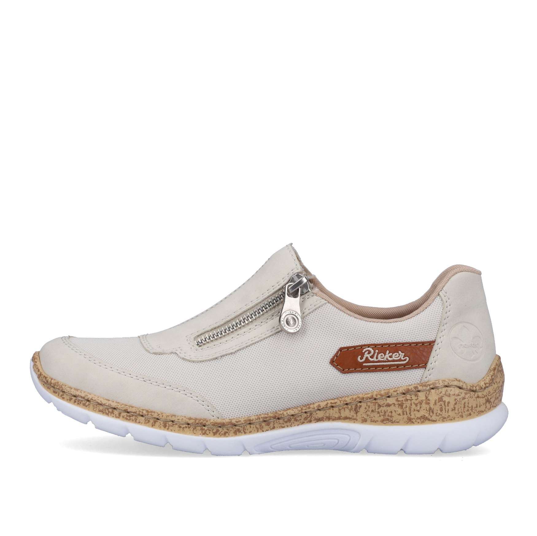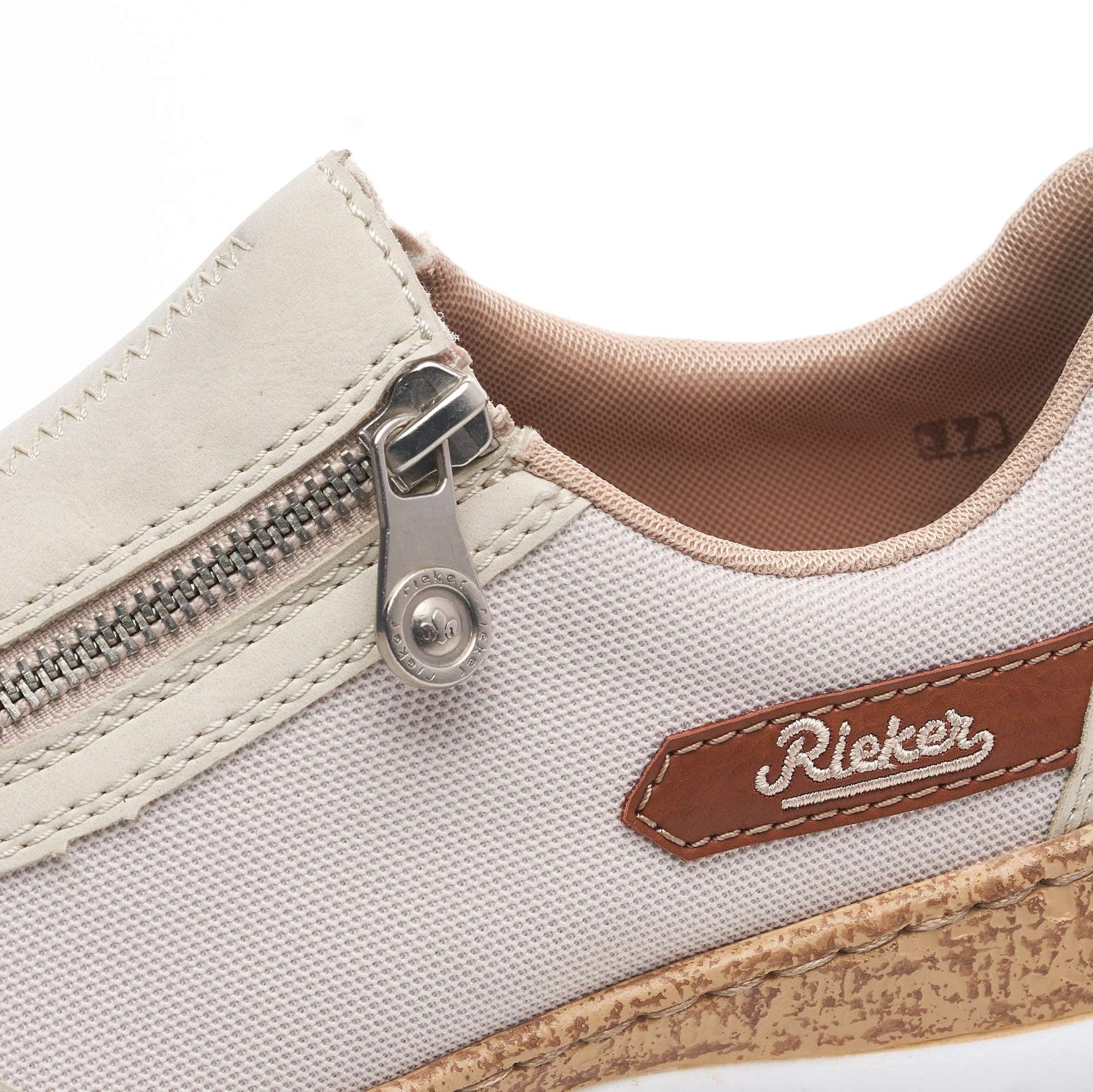 Hledáte-li obuv jednoduchého vzhledu pak je tento model značky RIEKER tou správnou volbou. Béžový svršek doplněný hnědou nášivkou s názvem značky je decentně ozdoben prošíváním. Snadné nazouvání zajistí funkční zip na vnější straně a všitá pružná gumička na straně vnitřní. Unikátní textilní stélka z paměťové pěny změkčí došlap a přizpůsobí se tvaru Vašeho chodidla. Podešev vyrobená s technologií Antistress je díky ní lehká a flexibilní. Obuv bude tím pravým ať už se vydáte do práce nebo jen tak na procházku.