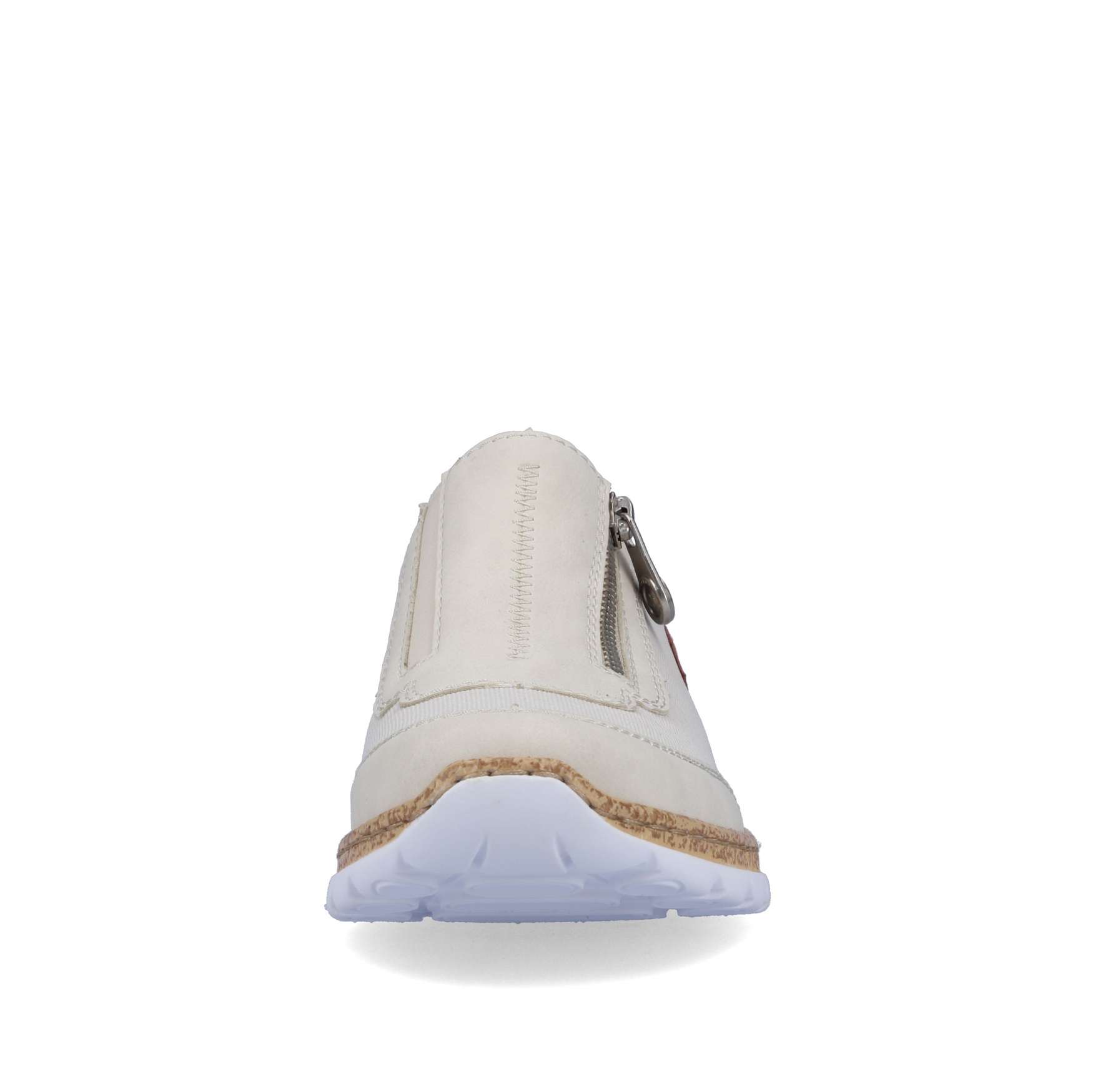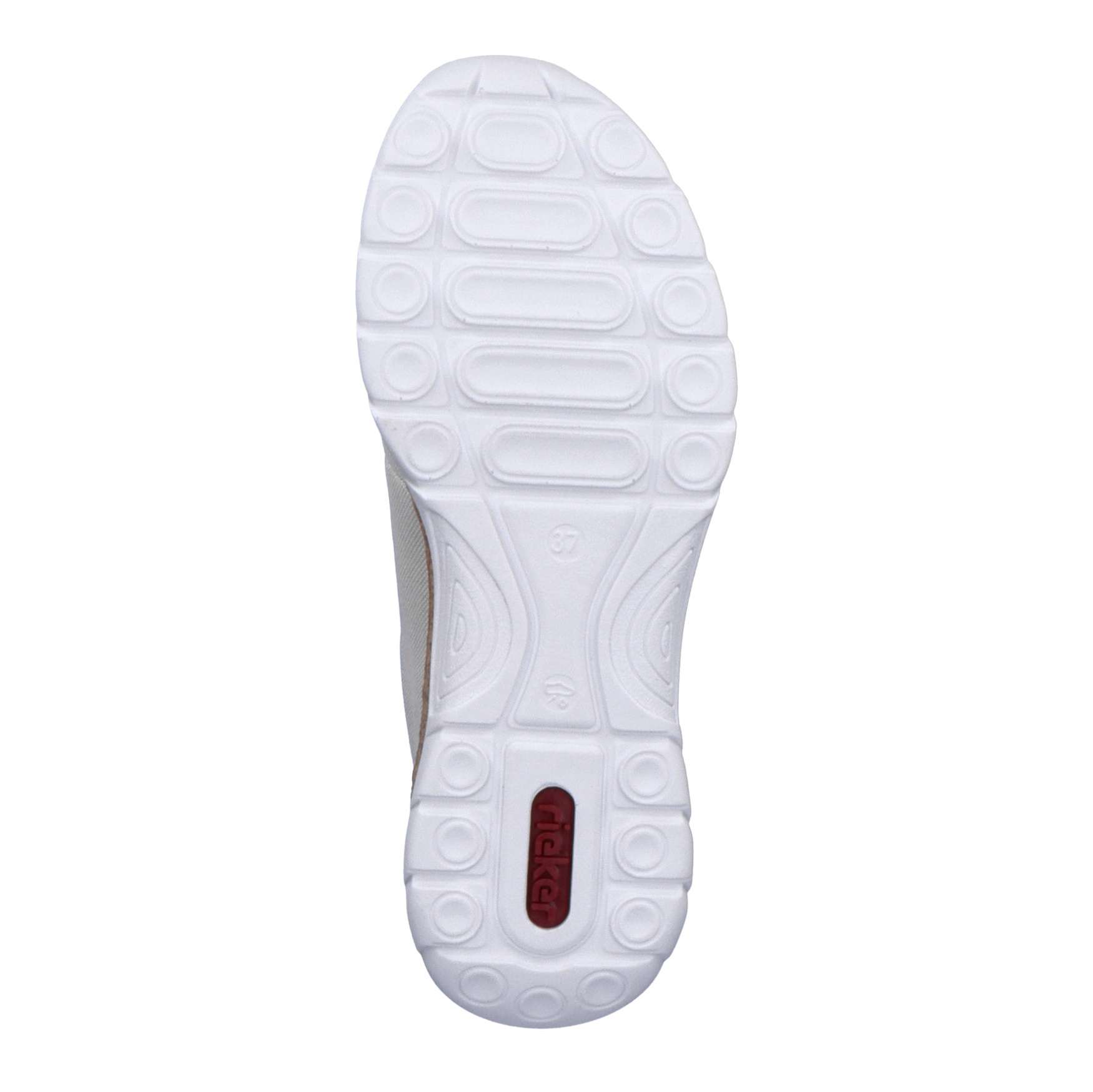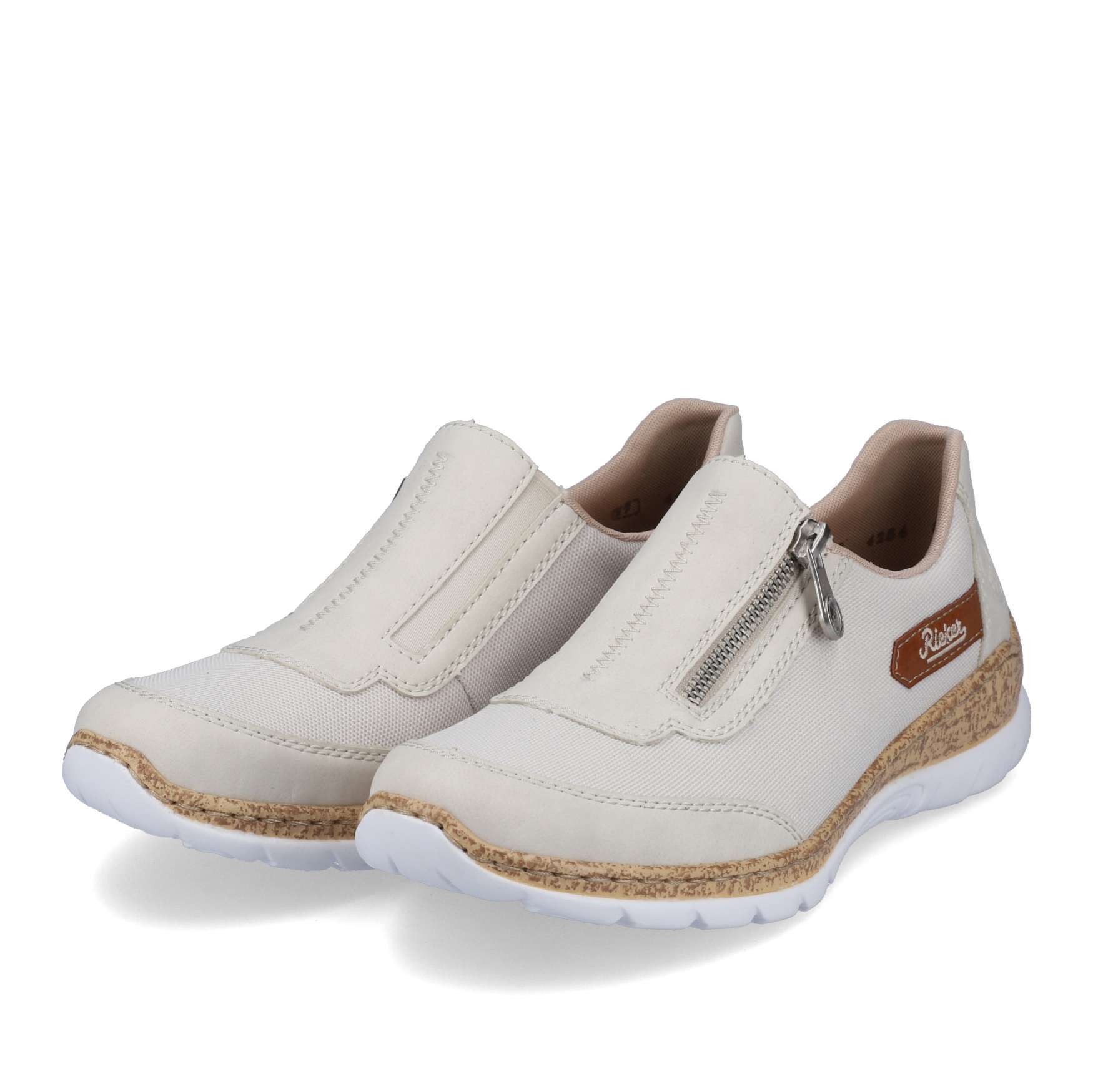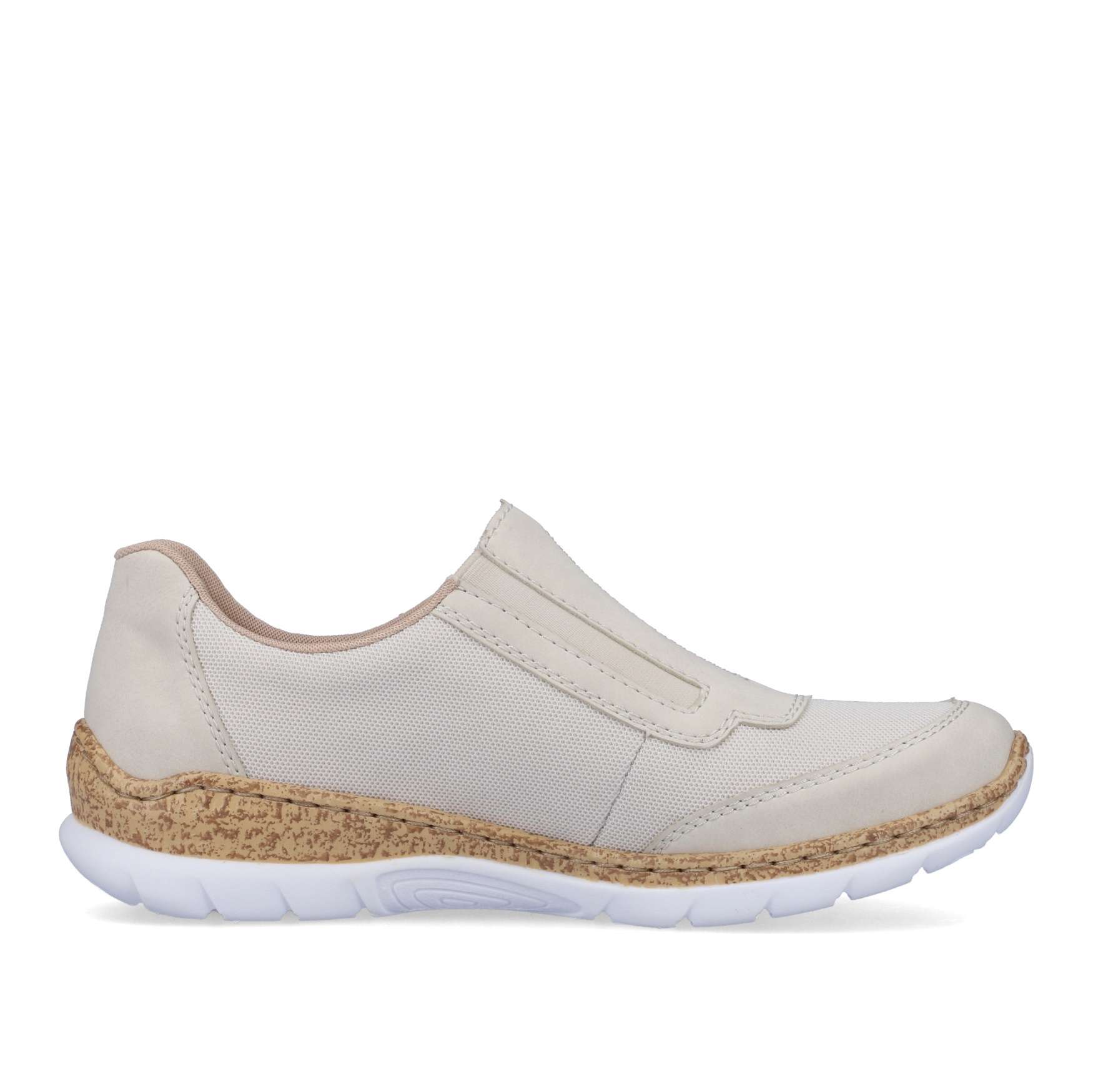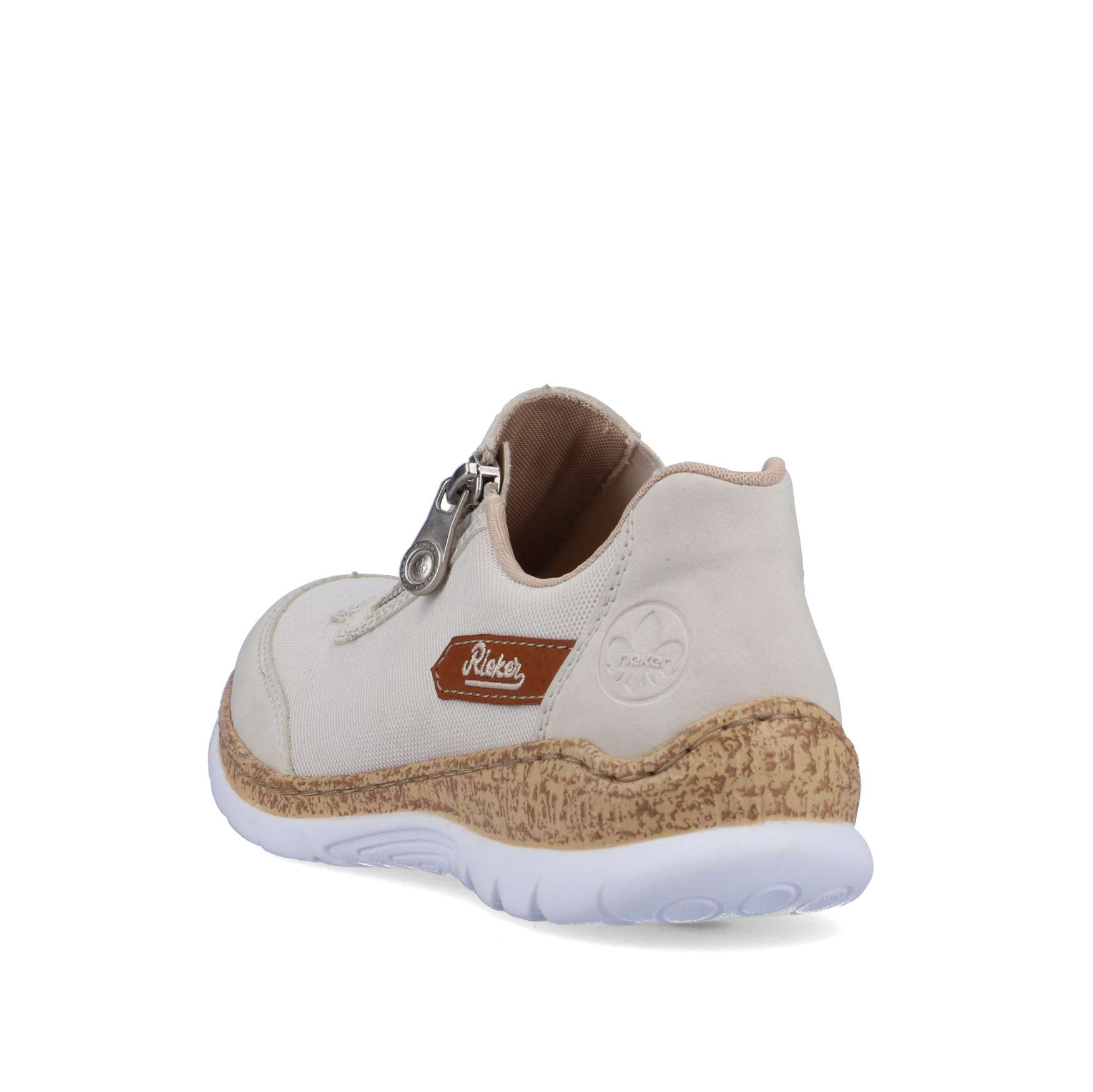Hledáte-li obuv jednoduchého vzhledu pak je tento model značky RIEKER tou správnou volbou. Béžový svršek doplněný hnědou nášivkou s názvem značky je decentně ozdoben prošíváním. Snadné nazouvání zajistí funkční zip na vnější straně a všitá pružná gumička na straně vnitřní. Unikátní textilní stélka z paměťové pěny změkčí došlap a přizpůsobí se tvaru Vašeho chodidla. Podešev vyrobená s technologií Antistress je díky ní lehká a flexibilní. Obuv bude tím pravým ať už se vydáte do práce nebo jen tak na procházku.