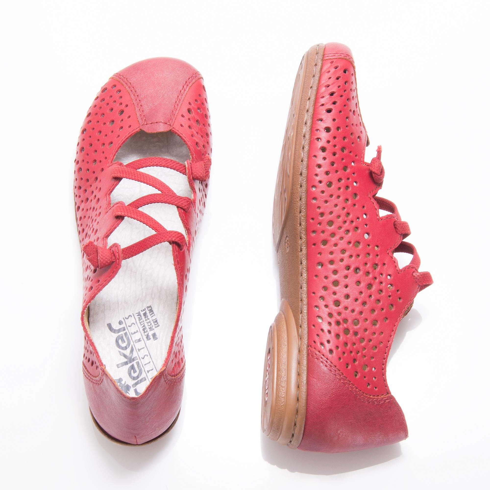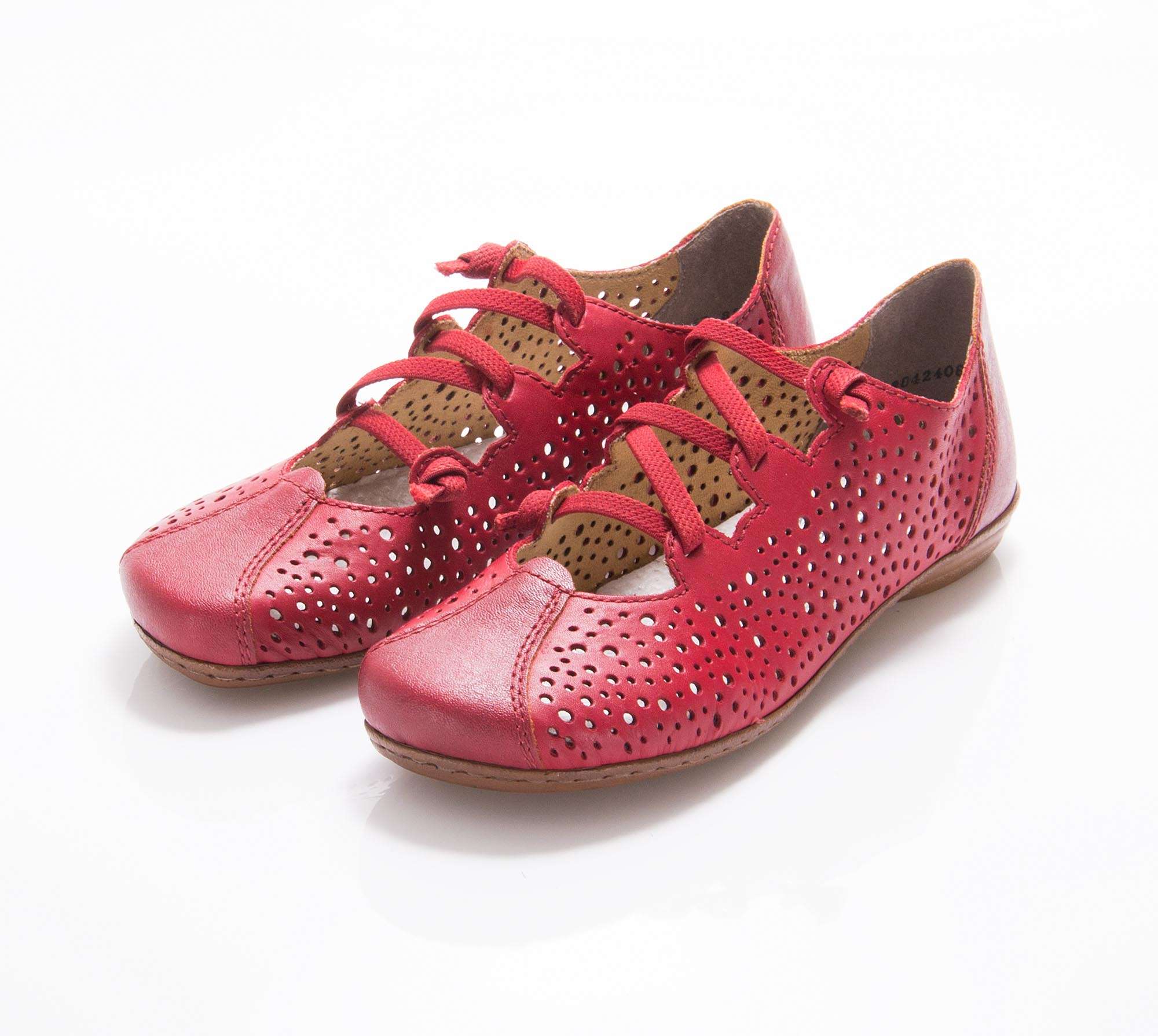 Dámská kožená polobotka červené barvy, značky RIEKER.