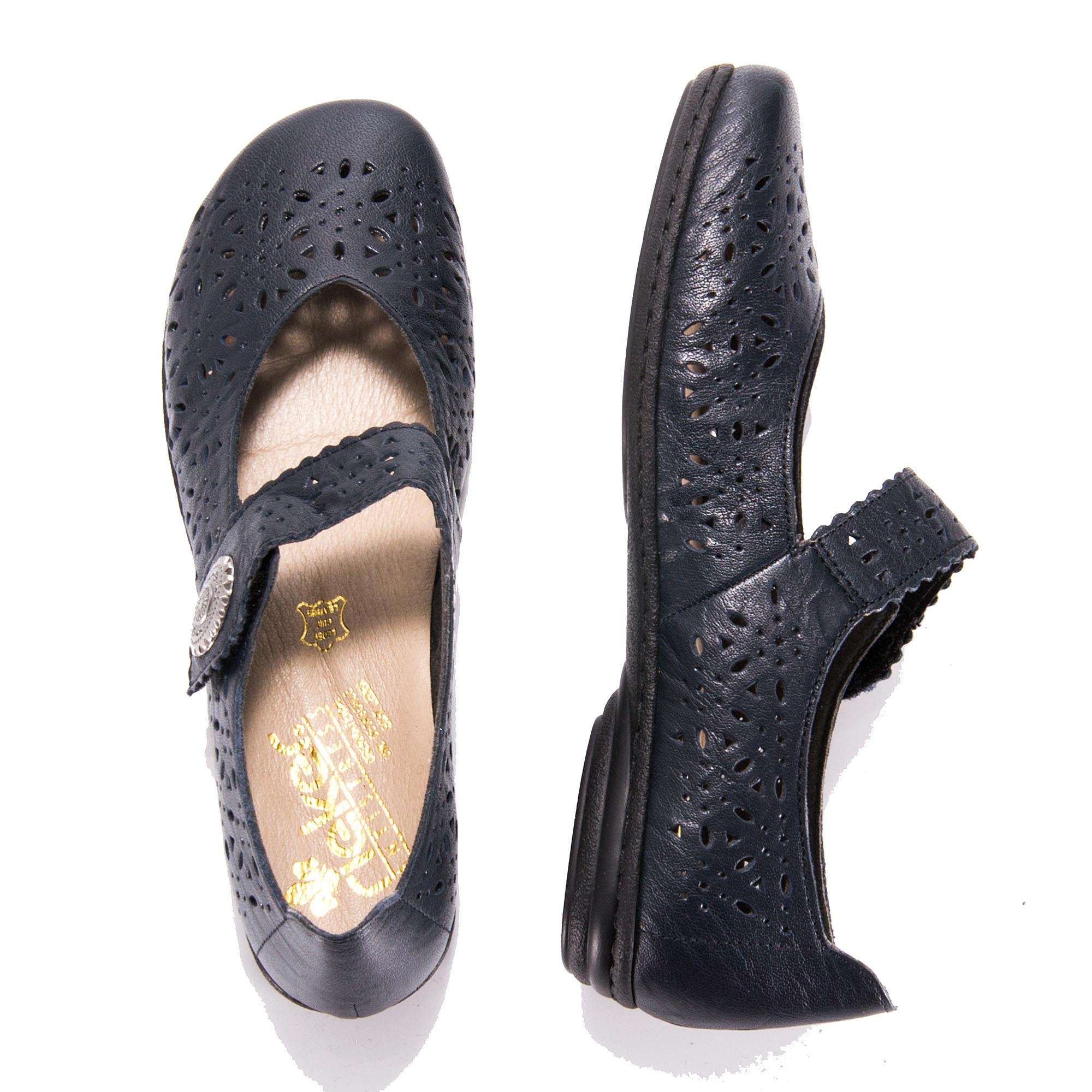 Dámská kožená polobotka tmavě modré barvy, značky RIEKER.