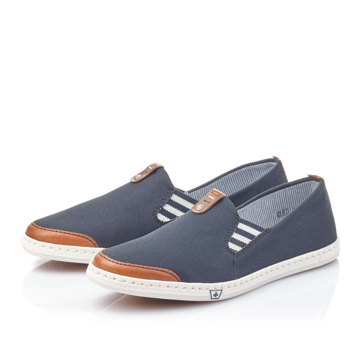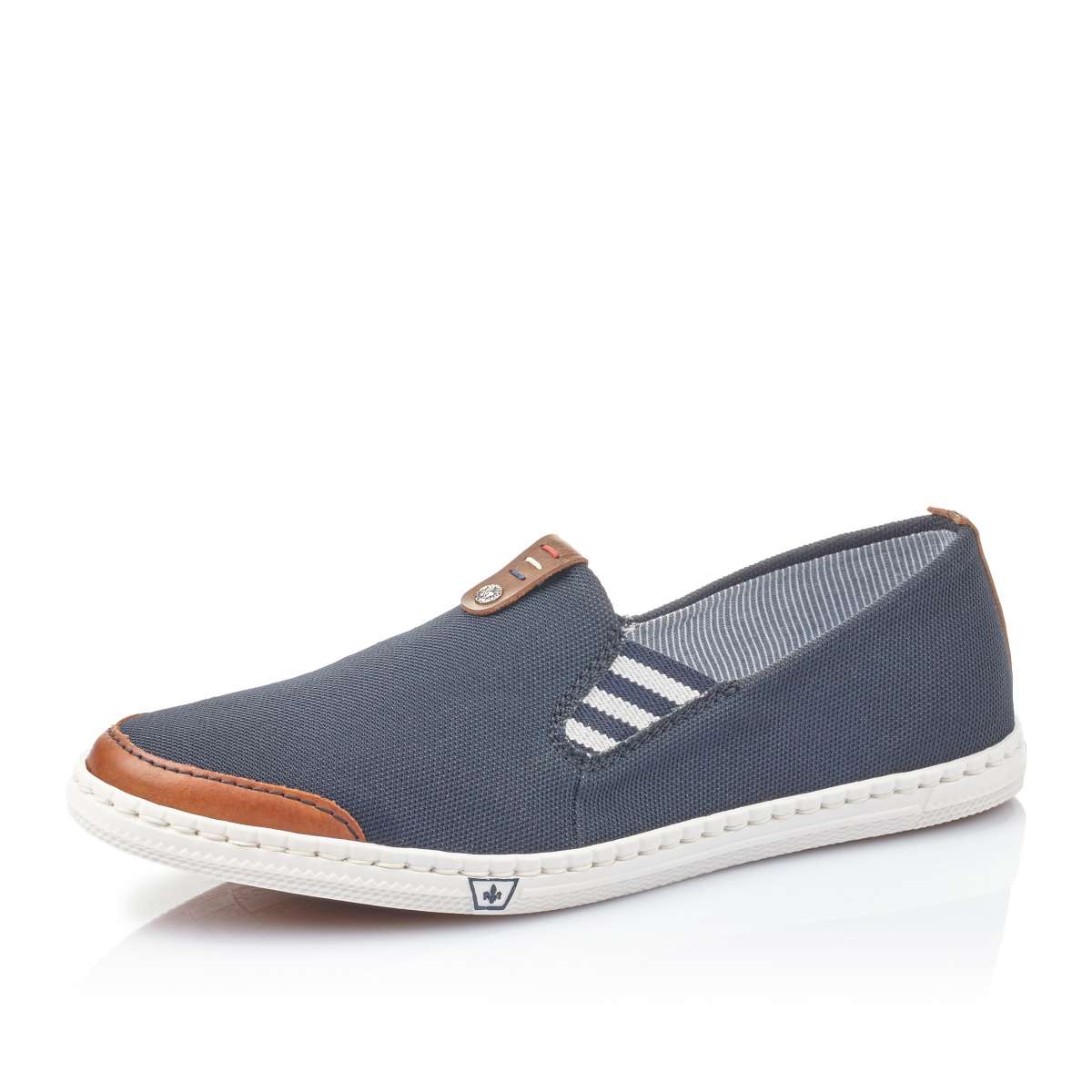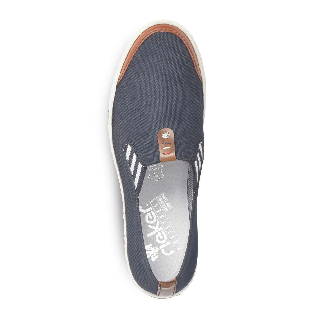 Obuv značky RIEKER je vhodná pro ženy, které mají rády pohodlí, a přitom chtějí být stylové Svršek Svršek je tmavě modré barvy s hnědými prvky v oblasti špičky, nártu a v patní části. Vsazené gumičky v nártové části usnadní nazouvání. Stélka Stélka je vyrobena z unikátní paměťové pěny, která se maximálně přizpůsobí tvaru Vašeho chodidla. Podešev Podešev je vyrobena z velmi kvalitního syntetického materiálu a v nejvyšším místě pod patou je vysoká cca 1,5 cm. Podešev je díky technologii Antistress lehká, flexibilní, absorbuje nárazy při došlapu a snadno se přizpůsobí každé noze. Mokasíny si můžete obout k džínům nebo sportovní sukni a svou lehkostí a jednoduchým svrškem je využijete při mnoha příležitostech. Technologie: Antistress Paměťová stélka: ANO