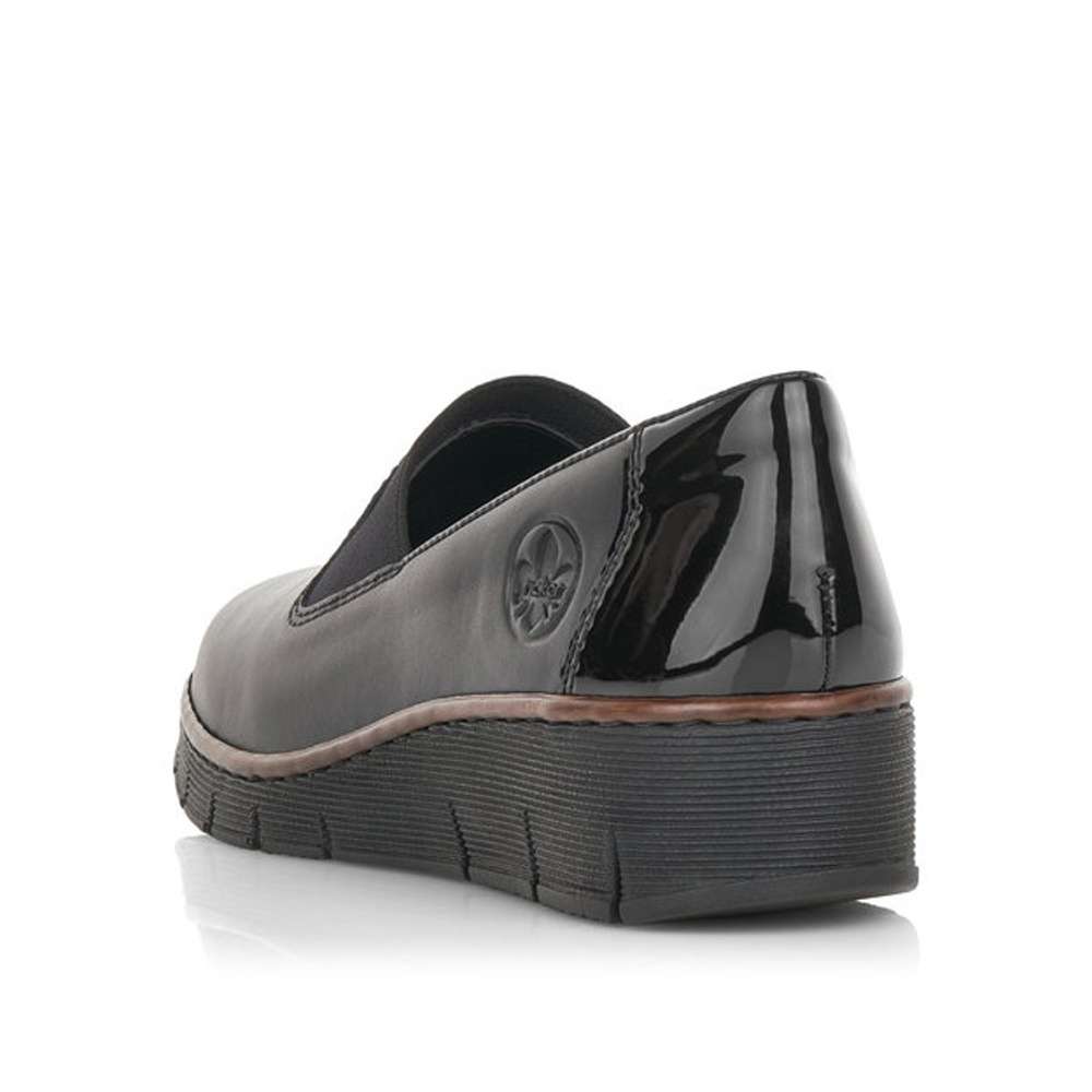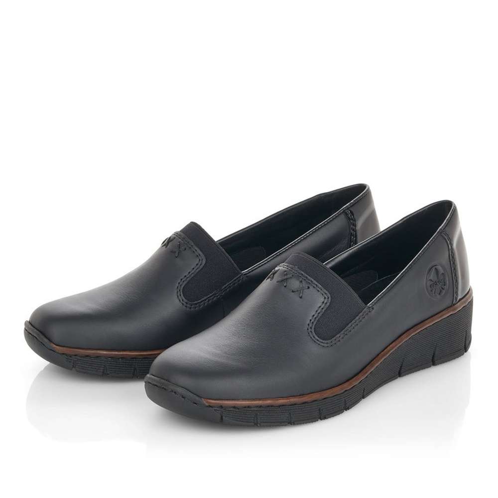 Kožené polobotky značky RIEKER budou Vašim společníkem pro každý den. Díky vsazené gumičce na nártu se lehce nazouvají a přizpůsobí se Vaší noze. Černá barva, této obuvi dodává elegantnost proto si je můžete obout jak do práce tak na procházku s rodinou.