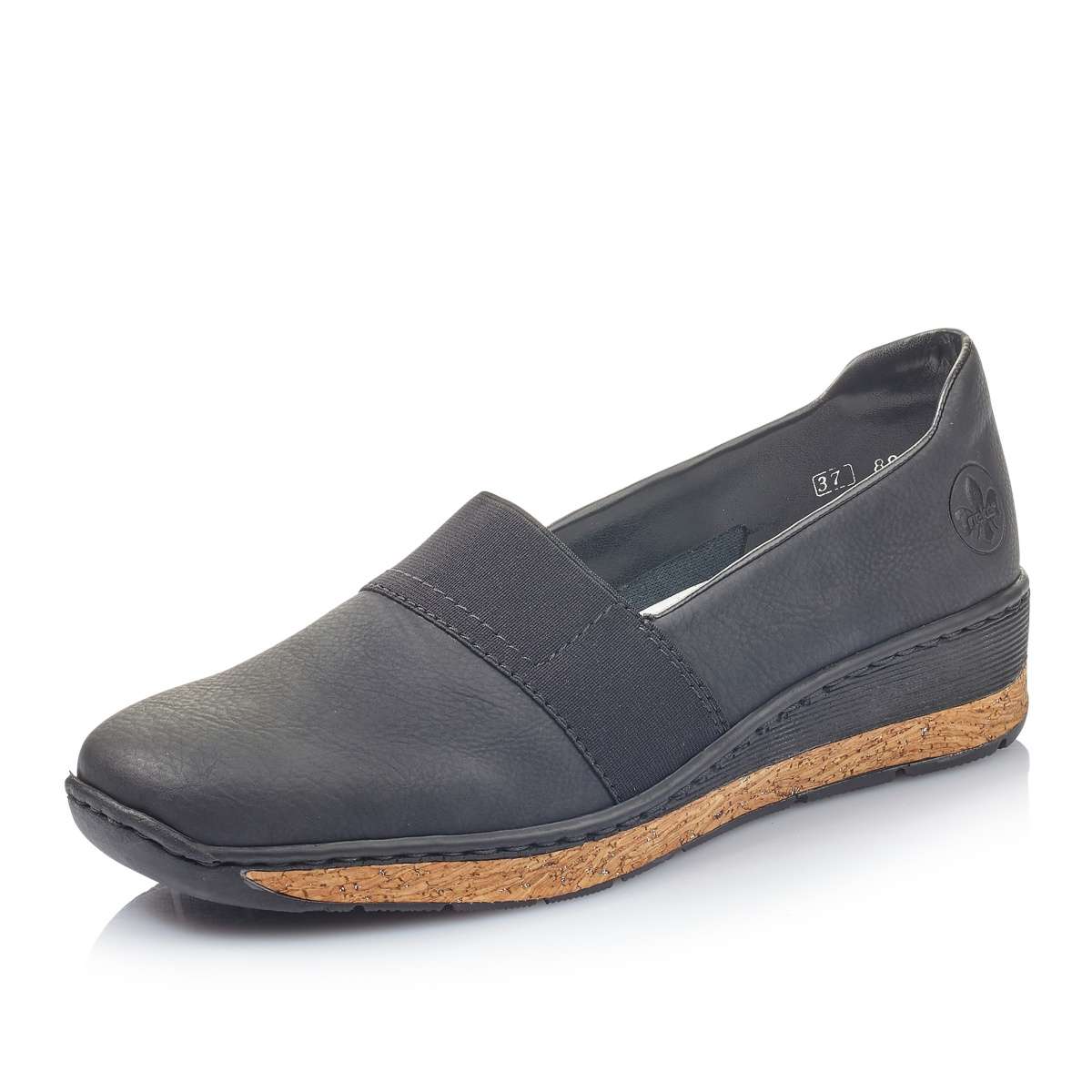 Hladký černý svršek je zdoben korkovým vzorem s jemnými stříbrnými třpytkami podél podešve. Pro snadnější nazutí je přes nárt všitá pružná gumička. V těchto polobotkách můžete vyrazit do práce nebo třeba na procházku do města.