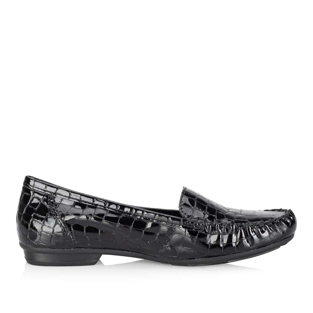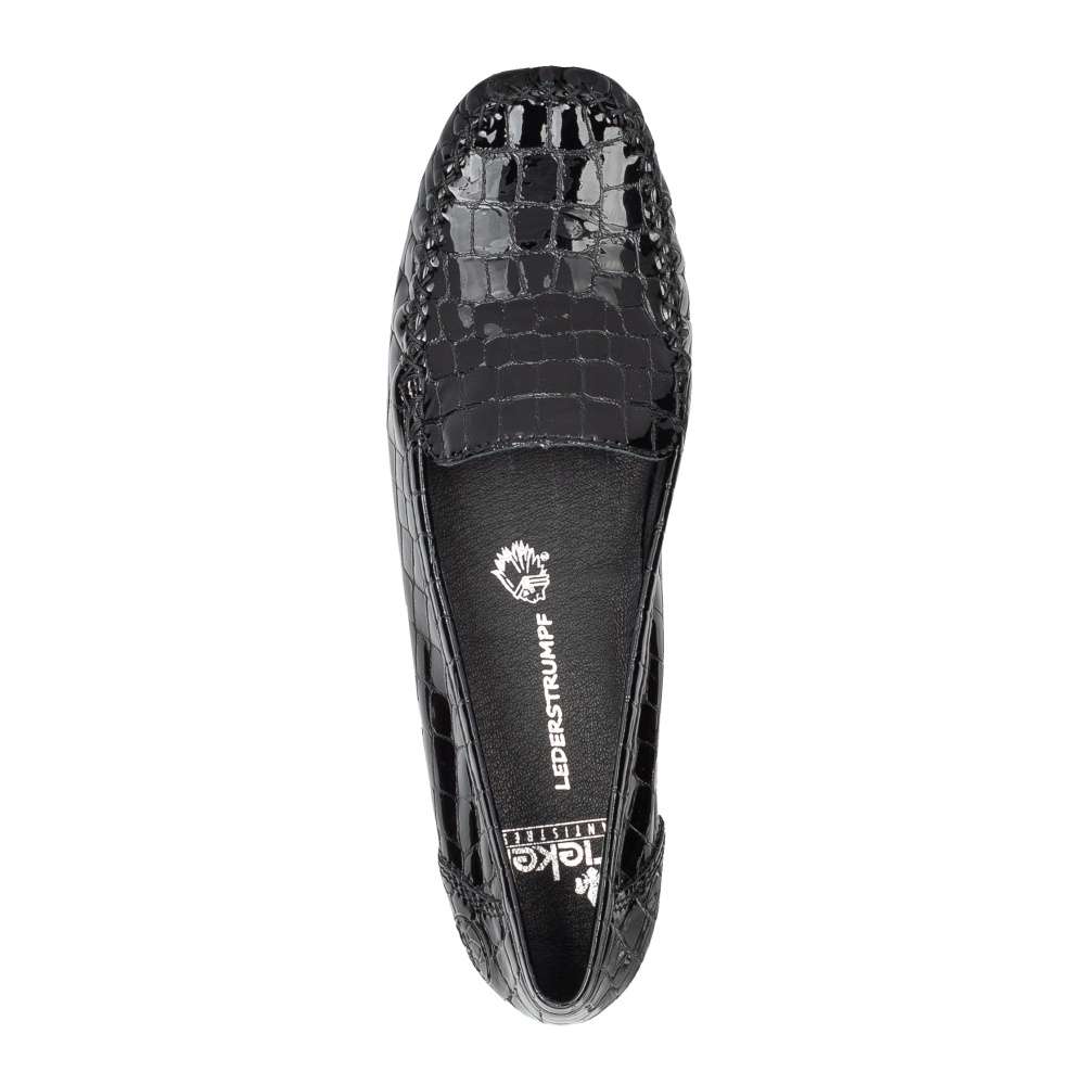 Detailní informace Tato dámská mokasína značky RIEKER zaručeně podtrhne Vaše outfity. Unikátní svršek Vás zaujme nejen svým lesklým strukturovaným provedením ale také vystouplým prošitím v oblasti špice. Pro dokonalý každý došlap je kožená stélka příjemně měkká a nízká podešev je flexibilní a přizpůsobí se každému Vašemu kroku. Tyto šik mokasíny unosíte snad na všechny příležitosti.