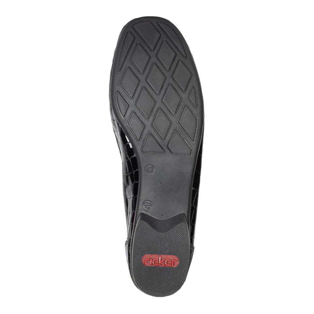 Tato dámská mokasína značky RIEKER zaručeně podtrhne Vaše outfity. Unikátní svršek Vás zaujme nejen svým lesklým strukturovaným provedením ale také vystouplým prošitím v oblasti špice. Pro dokonalý každý došlap je kožená stélka příjemně měkká a nízká podešev je flexibilní a přizpůsobí se každému Vašemu kroku. Tyto šik mokasíny unosíte snad na všechny příležitosti. Technologie: Antistress – podešev je díky této technologii lehká, flexibilní, absorbuje nárazy při došlapu