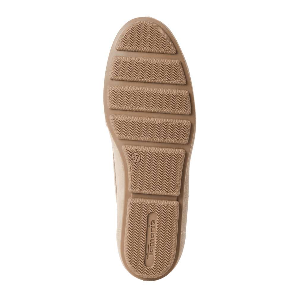 Baleríny značky Tamaris v sobě spojují křehkou ženskost a nenucenou eleganci. Kožený svršek v neutrálním odstínu působí nadčasově, zatímco pásek přes nárt jemně podtrhuje půvab těchto balerín. Kožená stélka rozmazluje chodidla příjemným pohodlím a flexibilní podešev se ladně přizpůsobí vašemu tempu. Jsou to boty, ve kterých se budete cítit lehce, svobodně a přirozeně krásně po celý den.