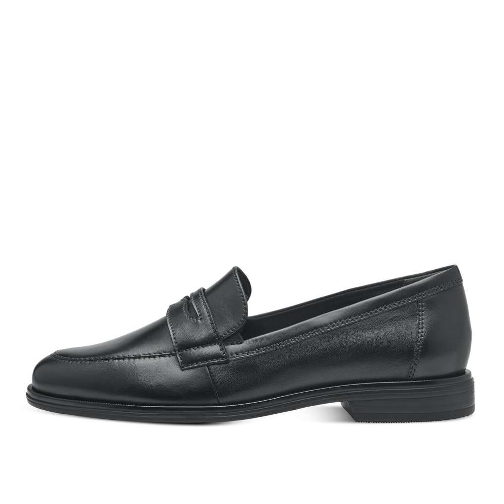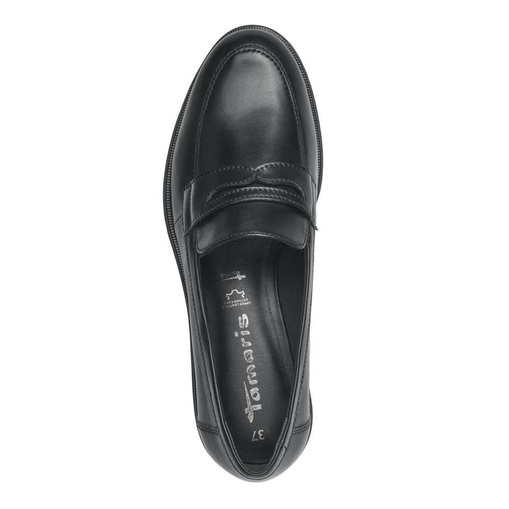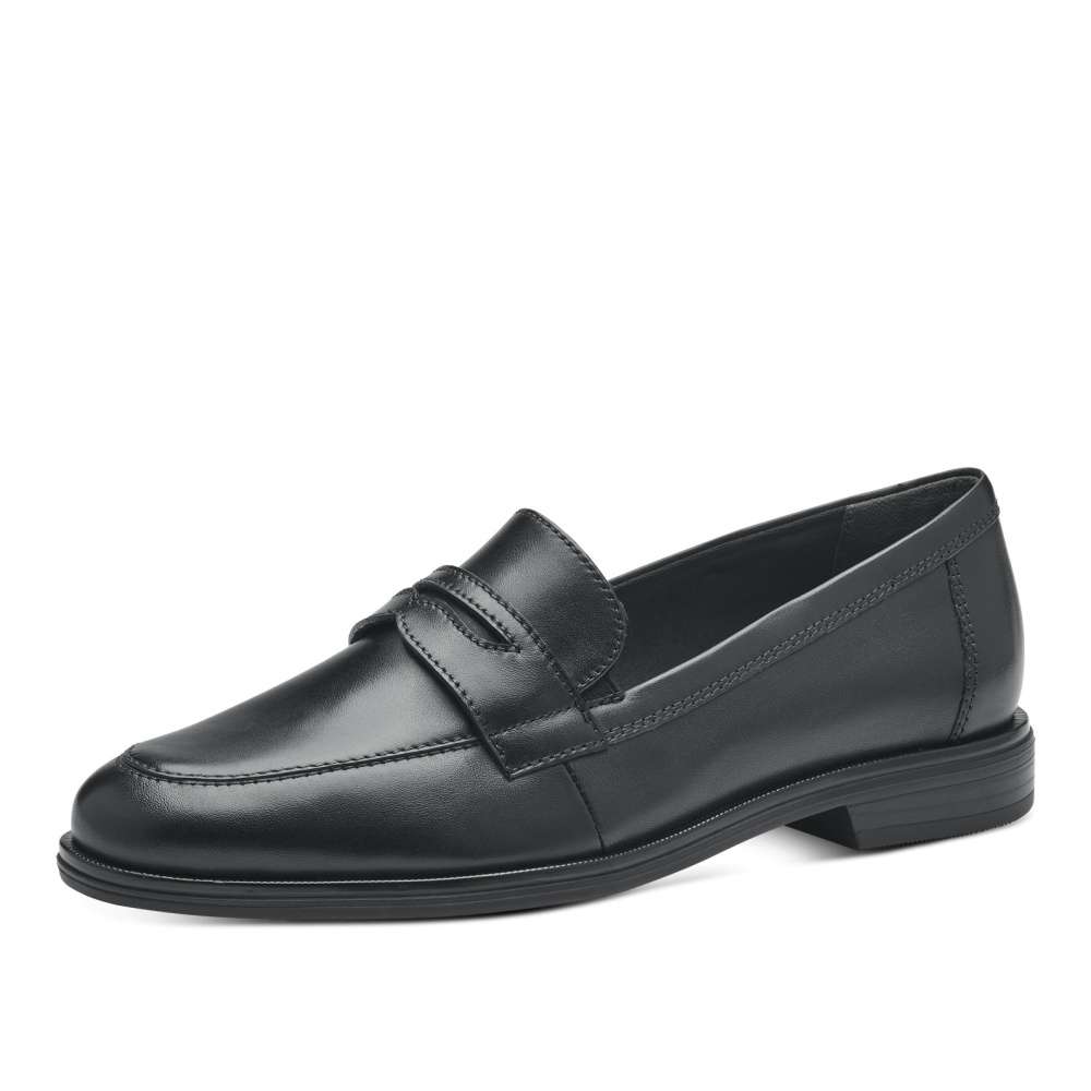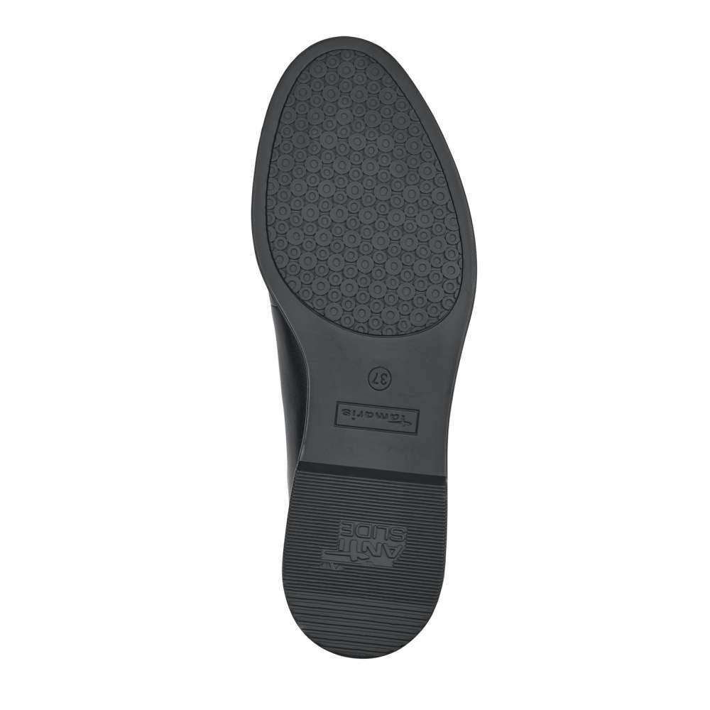 Jednoduchá elegance je to, co Vás osloví na první pohled u tohoto modelu značky TAMARIS. Kožený černý svršek je zdobný páskem přes nárt, elegantním švem na špici a po stranách jazyka jsou vsazeny pružné gumičky, které slouží ke snadnému obutí. Měkkou stélku Touch It oceníte při celodenním nošení. Tento model je vhodný jak do práce k sukni, tak na běžné pochůzky po městě.