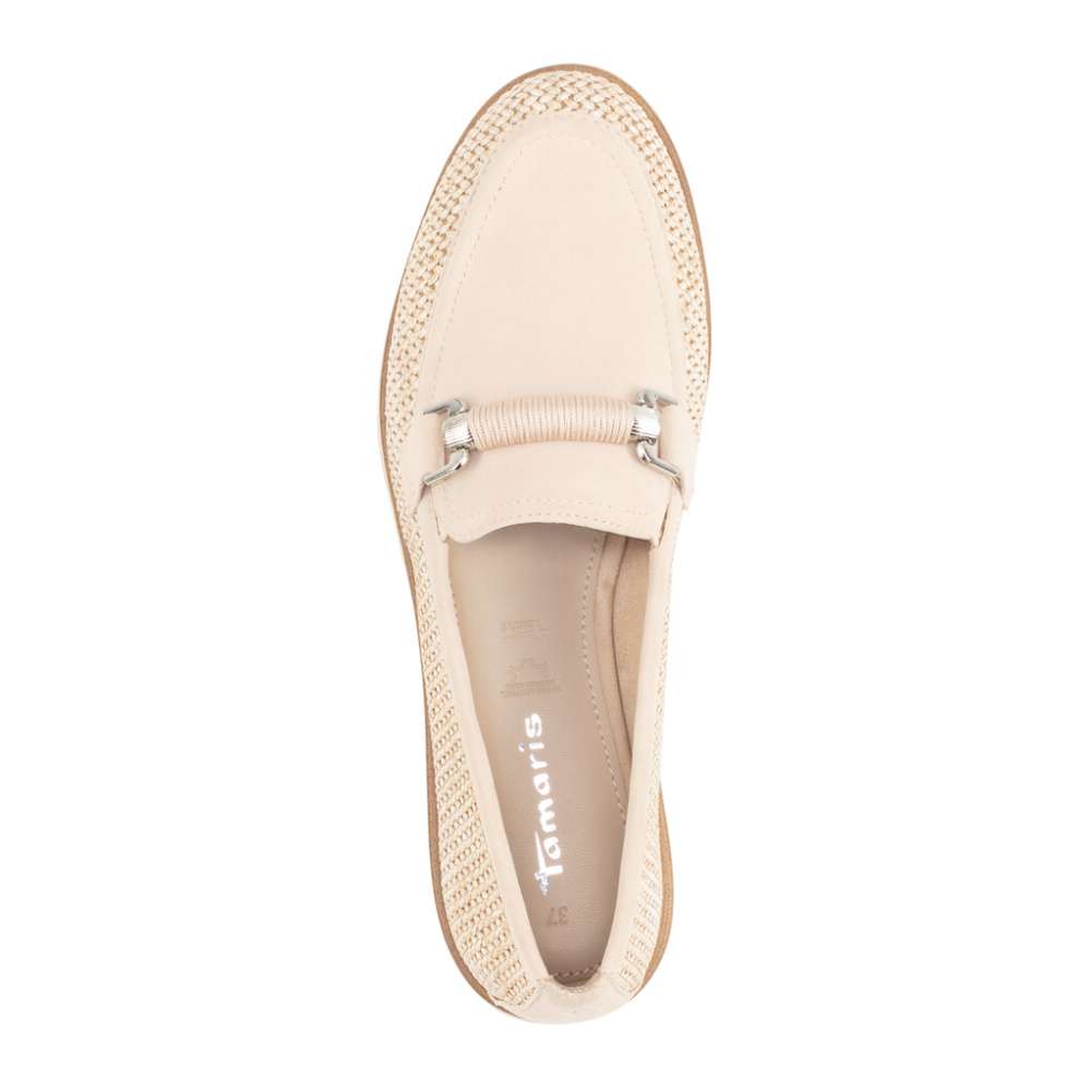 Tyto mokasíny značky TAMARIS představují skutečný módní unikát, který vynikne v každém outfitu. Svršek boty je vyhotoven z kombinace materiálu s efektní strukturou a hladkého materiálu, která dodává mokasínům jedinečný vizuální charakter a okouzlující dekorace v části nártu podtrhuje originalitu těchto bot. Měkká stélka poskytuje pohodlí a přirozenou oporu chodidlu, zatímco flexibilní podešev kopíruje pohyb nohy. Tyto mokasíny jsou ideální volbou pro ženy, které hledají originální design spojený s prémiovým komfortem.