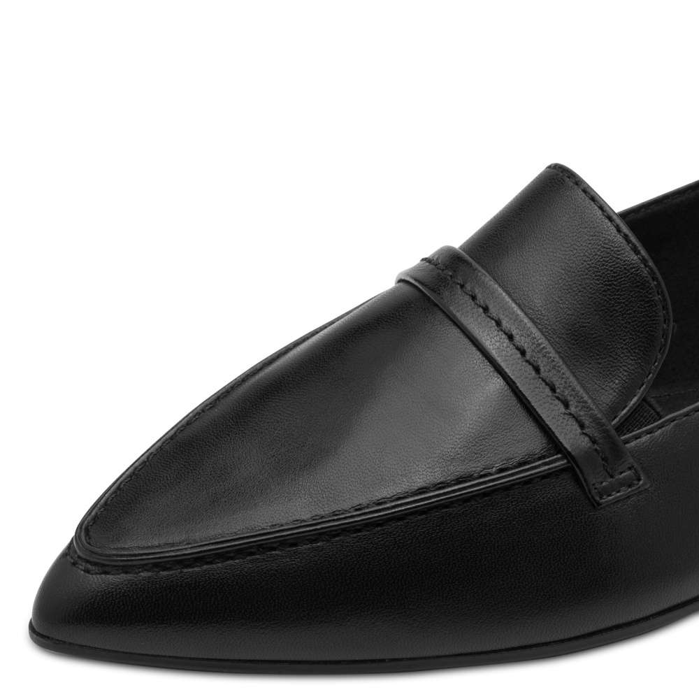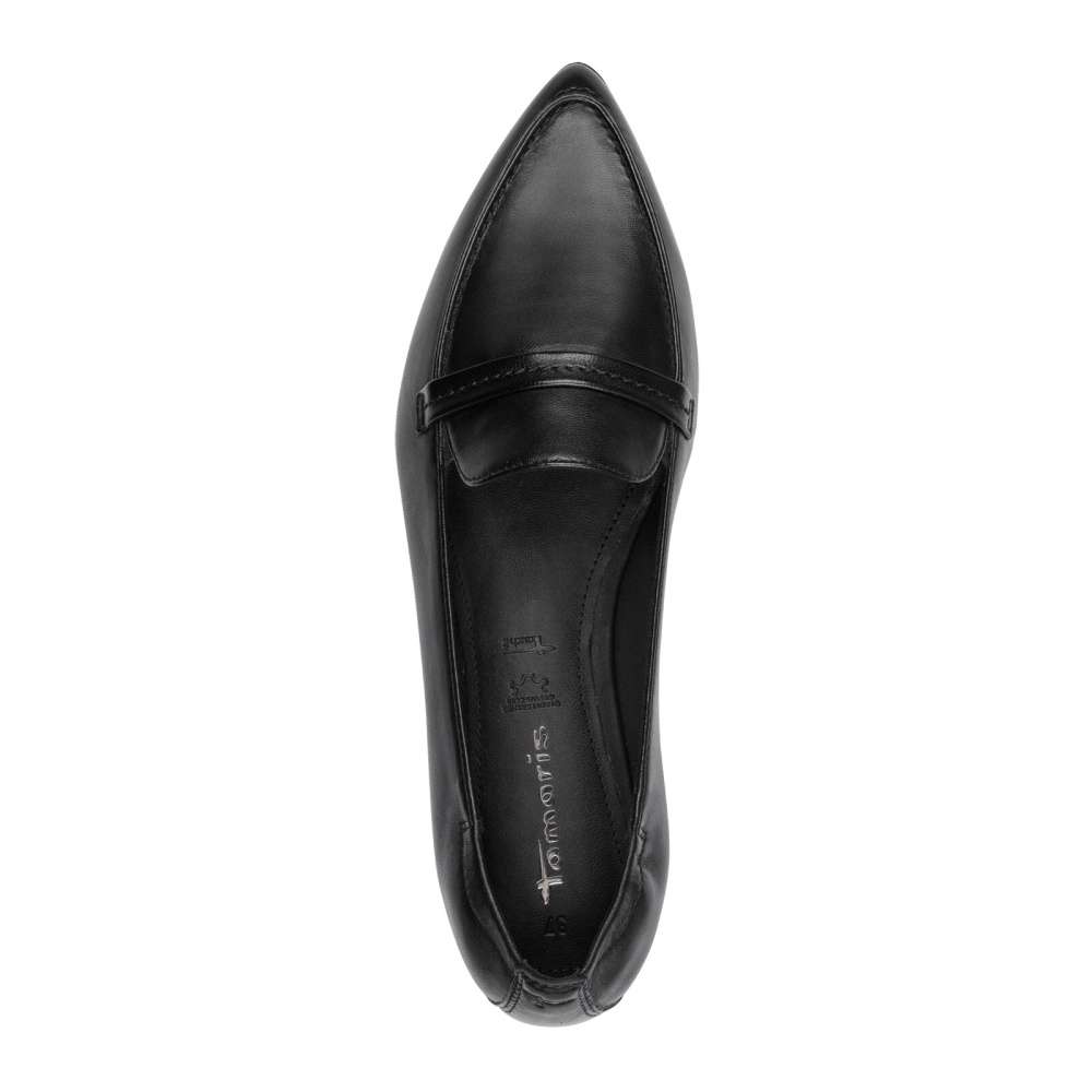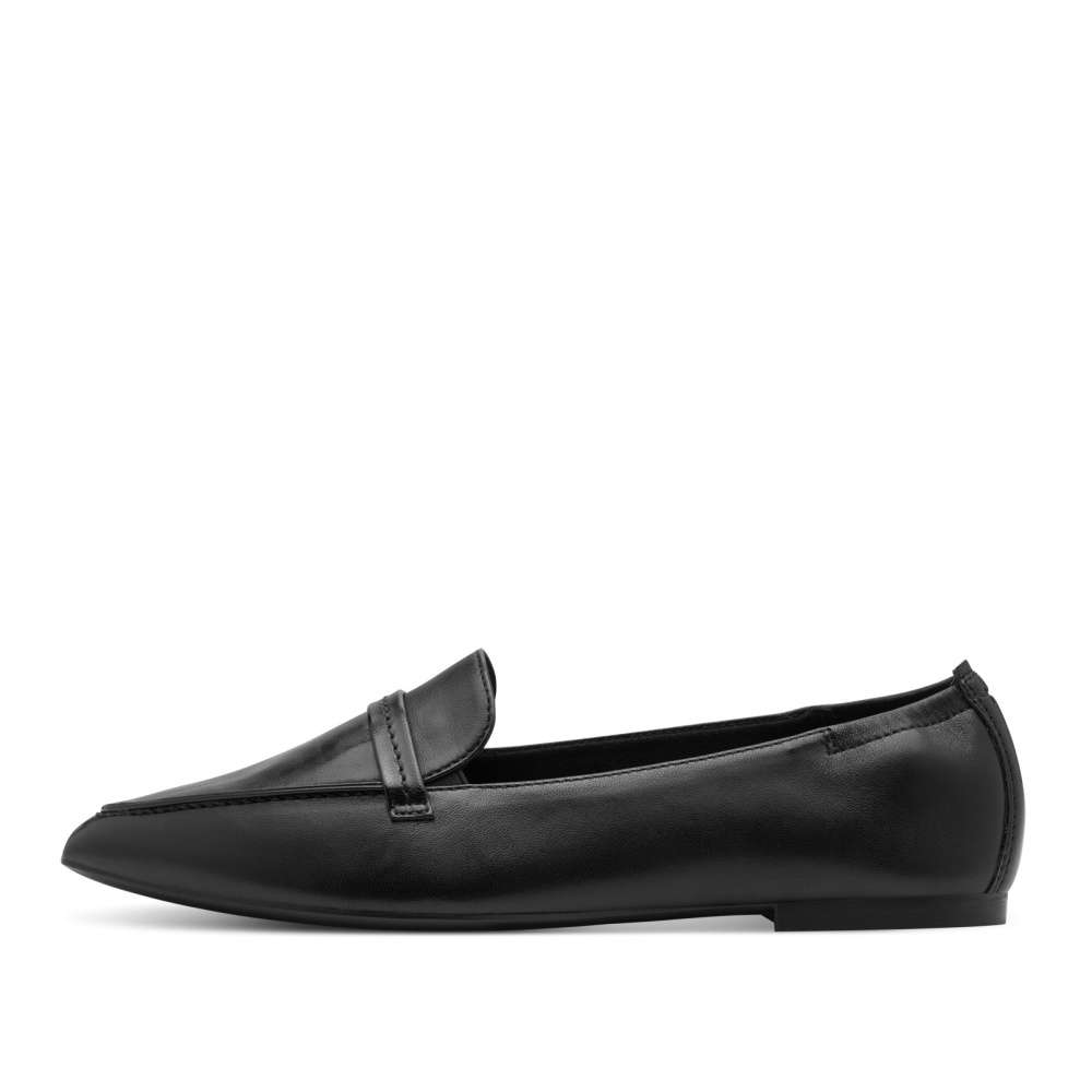 Baleríny značky Tamaris představují svůdnou kombinaci nadčasové elegance a neodolatelného pohodlí. Hladký černý kožený svršek působí nadčasově, zatímco zúžená špička dodává siluetě rafinovaně ženský vzhled a pásek přes nárt podtrhuje ženský charakter obuvi. Příjemně měkká stélka hýčká vaše nohy po celý den, takže se můžete cítit stylově a pohodlně od ranní schůzky až po večerní setkání.