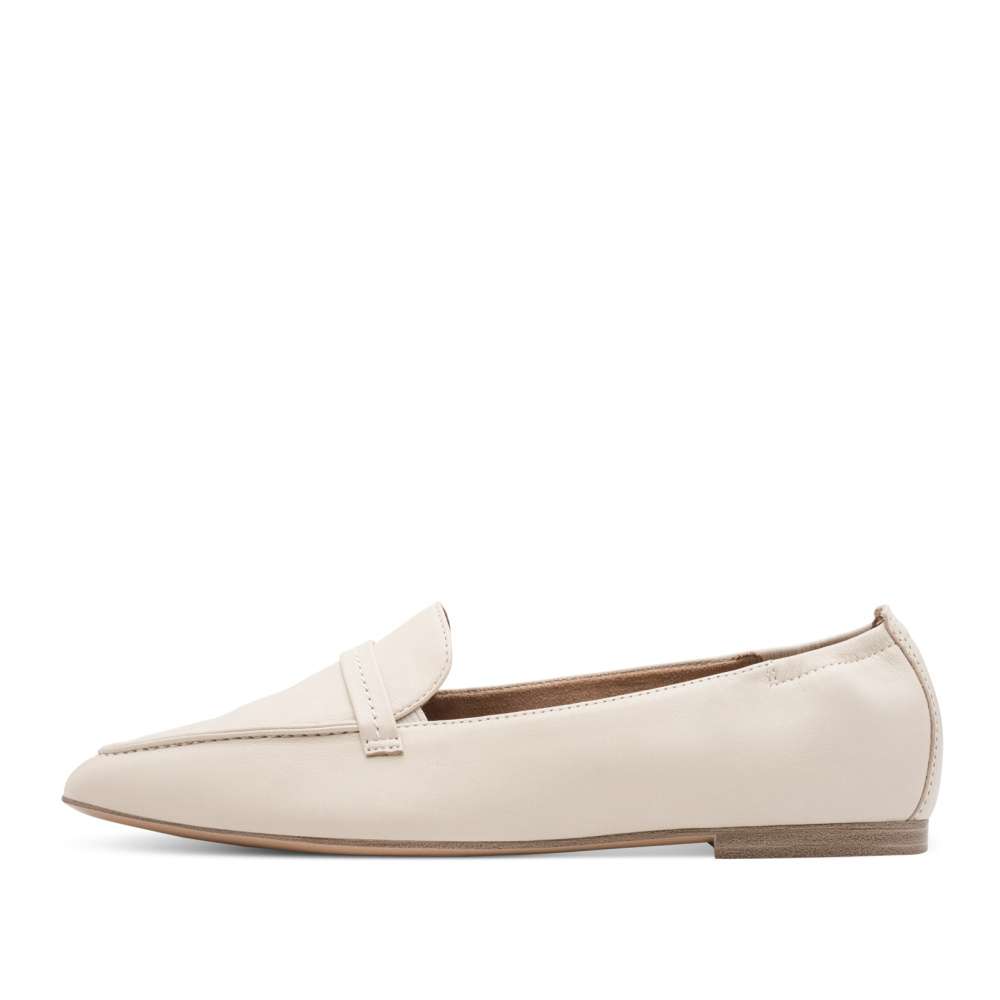 Baleríny značky Tamaris představují svůdnou kombinaci nadčasové elegance a neodolatelného pohodlí. Hladký béžový kožený svršek působí nadčasově, zatímco zúžená špička dodává siluetě rafinovaně ženský vzhled a pásek přes nárt podtrhuje ženský charakter obuvi. Příjemně měkká stélka hýčká vaše nohy po celý den, takže se můžete cítit stylově a pohodlně od ranní schůzky až po večerní setkání.