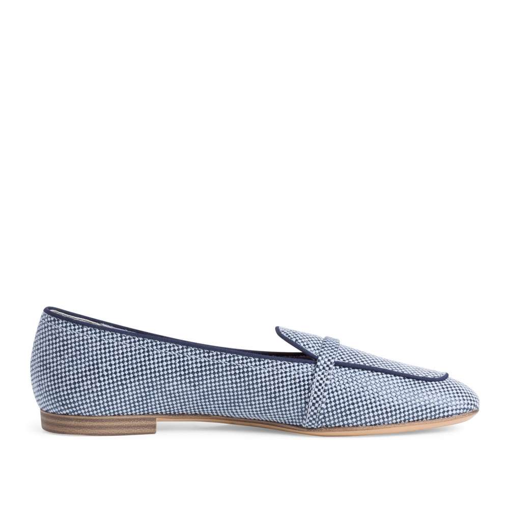 Jemně kostičkovaný svršek je doplněn lemováním a tenkým páskem v oblasti nártu.